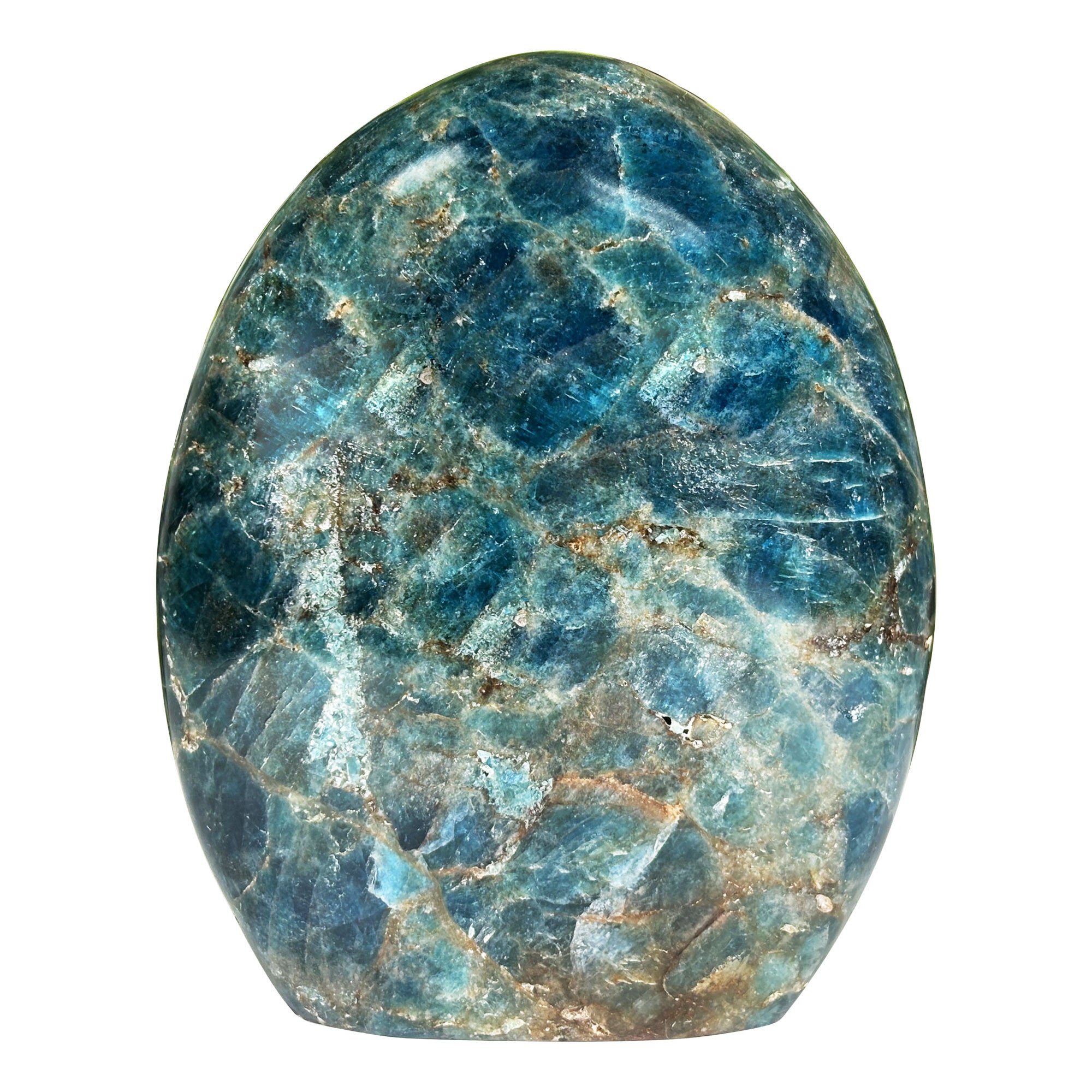 This blue apatite freeform strikes an ideal balance between size and elegance, making it a versatile display piece that works beautifully on a desk, bookshelf, meditation altar, or as part of a curated crystal collection. Blue apatite is one of the most intellectually associated crystals in the mineral world, widely linked to enhanced focus, clear thinking, and the confident expression of ideas, making it a natural companion for anyone engaged in creative or analytical work. Its solid weight and stable natural base allow it to stand independently on any flat surface without additional support, adding to its practical appeal as both a functional and decorative object. This is a carefully selected Madagascar blue apatite specimen that offers exceptional color, natural character, and lasting display value in a beautifully proportioned freeform.