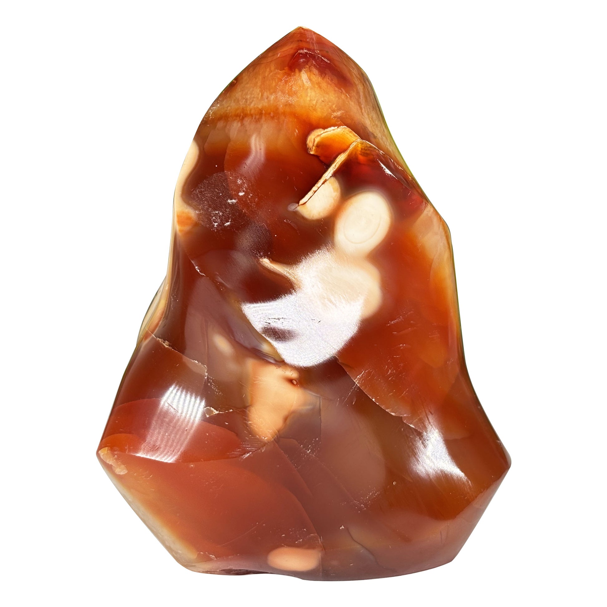 Carnelian is a stone long associated with vitality, courage, creativity, and motivation, making this flame crystal a powerful and beautiful addition to any space where energy and inspiration are welcome. The flame shape amplifies its visual impact and makes it a natural focal point on a desk, altar, bookshelf, or meditation space. It is equally appealing to crystal collectors seeking a high quality Madagascar specimen and to home decor enthusiasts looking for a warm and striking natural accent piece. Compact enough to hold in the hand yet substantial enough to command attention on display, this carnelian flame is a versatile and meaningful piece that brings both beauty and positive energy into everyday life.