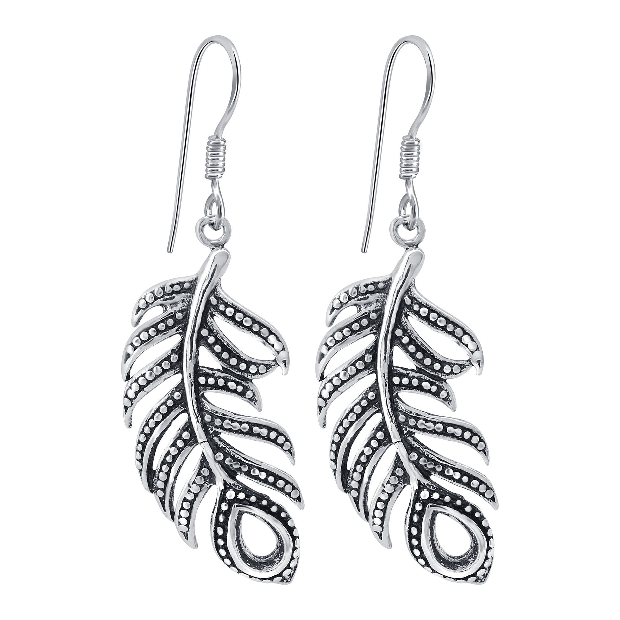 Leaf Crawler Earrings in Sterling Silver are an intricate and delicate design, perfect for nature lovers. The earrings are made of sterling silver with an oxidized finish, giving them a rustic look. The feather design is simple yet stunning, and the hooks make them easy to wear.