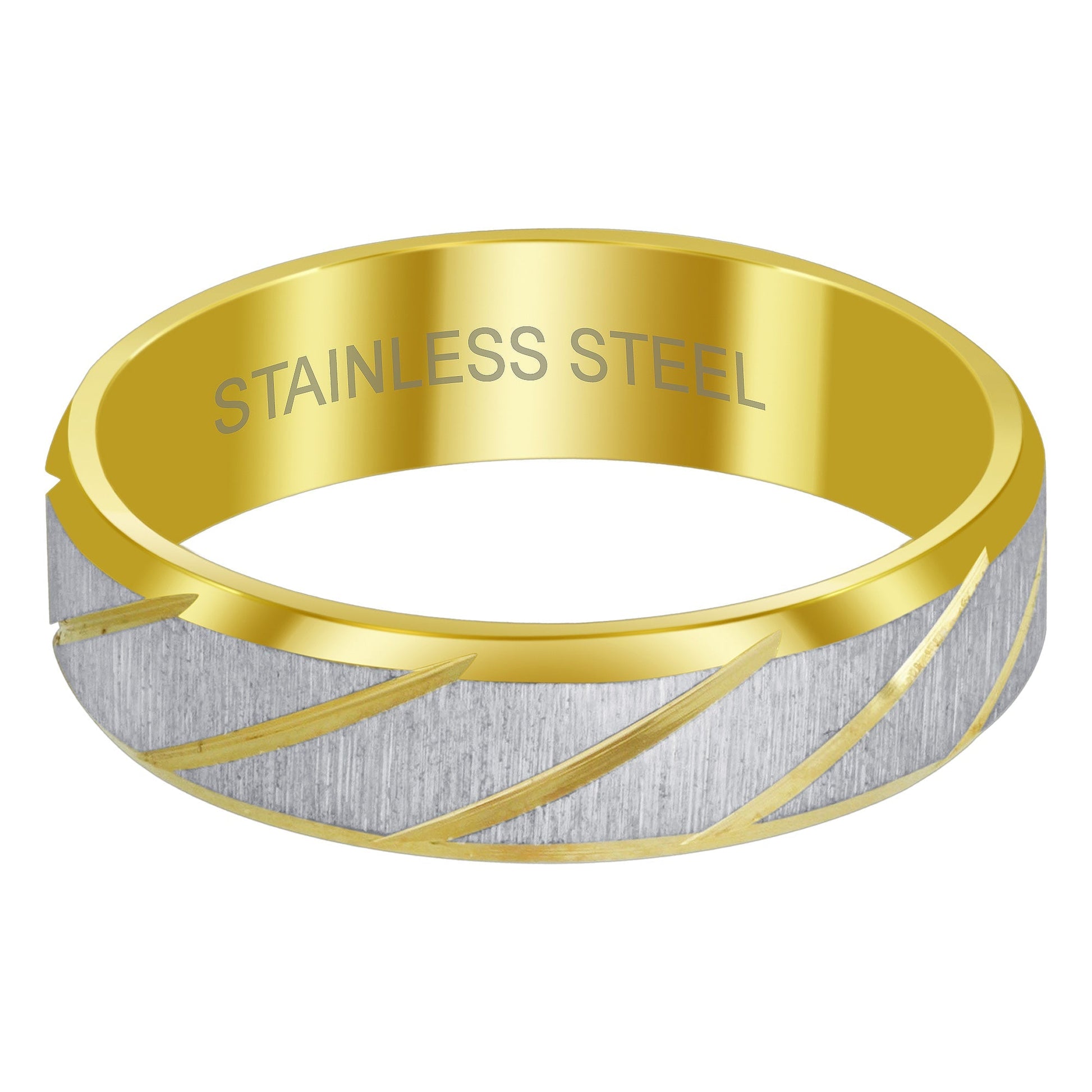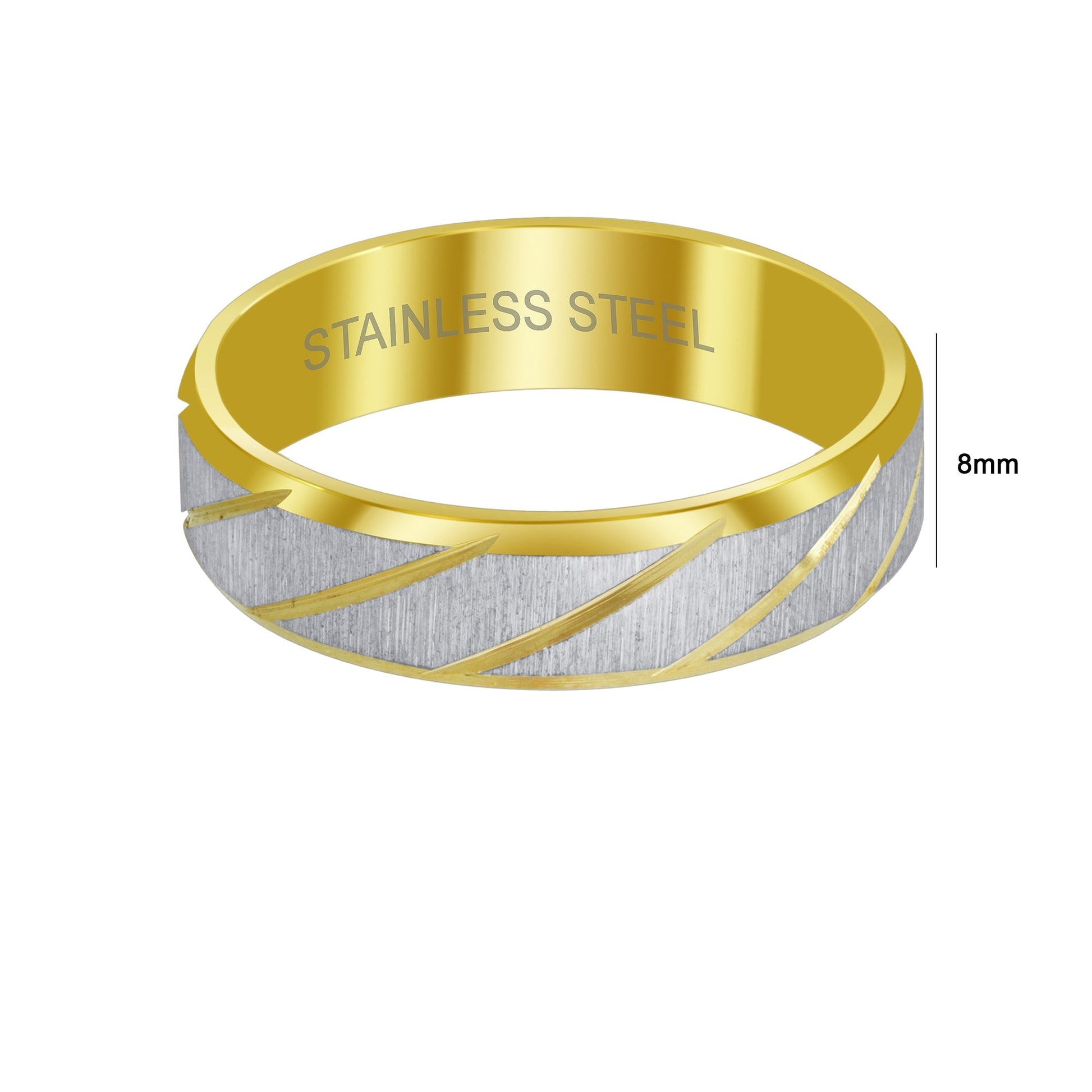 A beautifully designed stainless steel two tone with brushed design comfort fit band ring is absolutely stunning! Gift this beautiful ring to yourself or someone you love.
