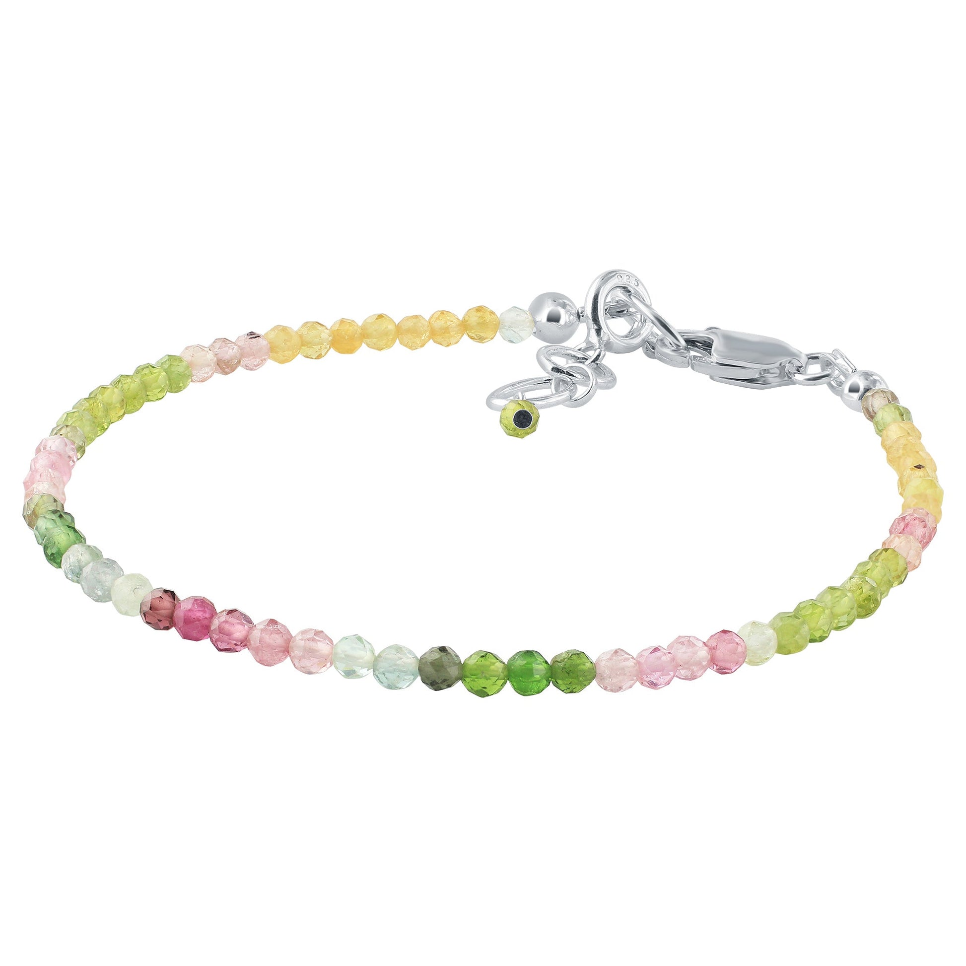 Beautifully crafted in India, add the perfect pop of color and sparkle to any outfit with this gorgeous sterling silver natural multi-color tourmaline bracelet! This stunning bracelet contains a vibrant shade of green, pink, and yellow along with a secure lobster clasp. The perfect accessory to any outfit, this sterling silver natural Multi-Color Tourmaline bracelet is a must-have! It measures approximately 7.5 inches in length by 1.5 mm in Bead Size and weighs 3 grammes.