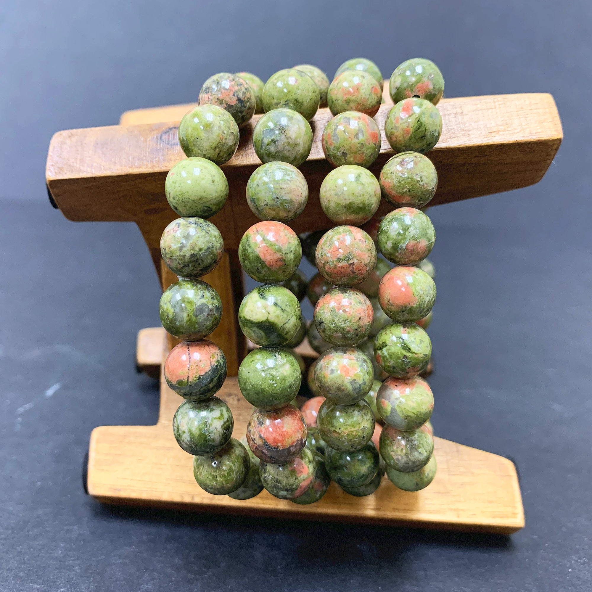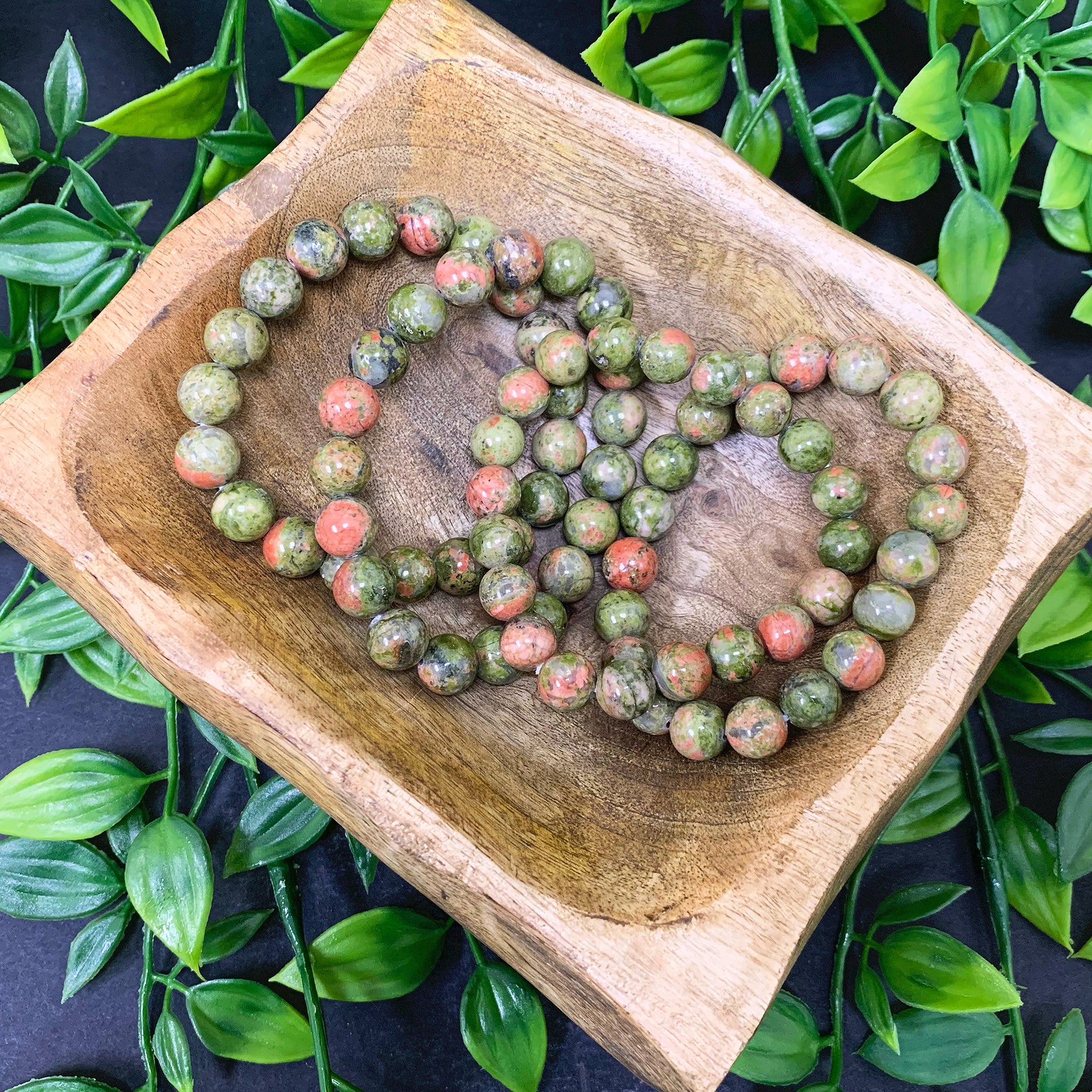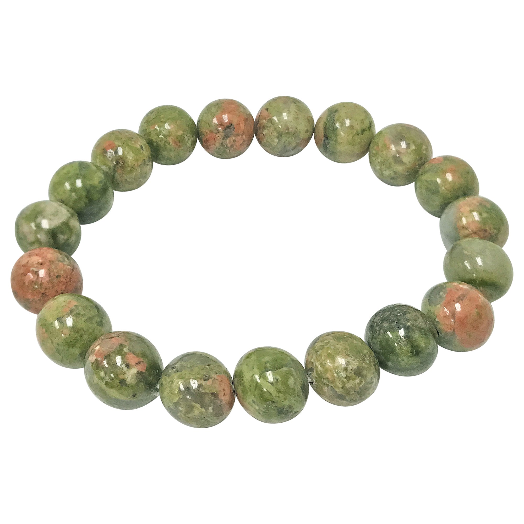 Each bracelet is composed of 10mm Unakite beads with various shades of green and pink. simple yet stunning this bracelet is a sure must have with any outfit!