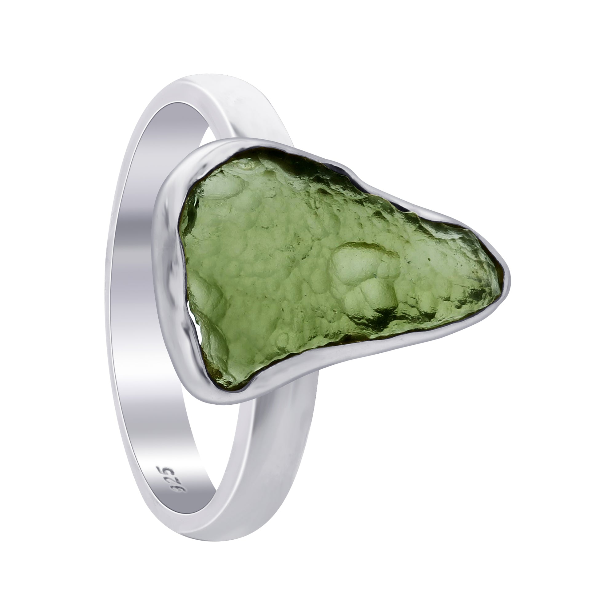 Purchase this stunning 925 Sterling Silver Moldavite Ring with a size of 8. perfect for women who love unique and mesmerizing stones. Moldavite is often believed to have healing properties, making this ring not just a beautiful adornment, but also a source of potential wellness benefits.