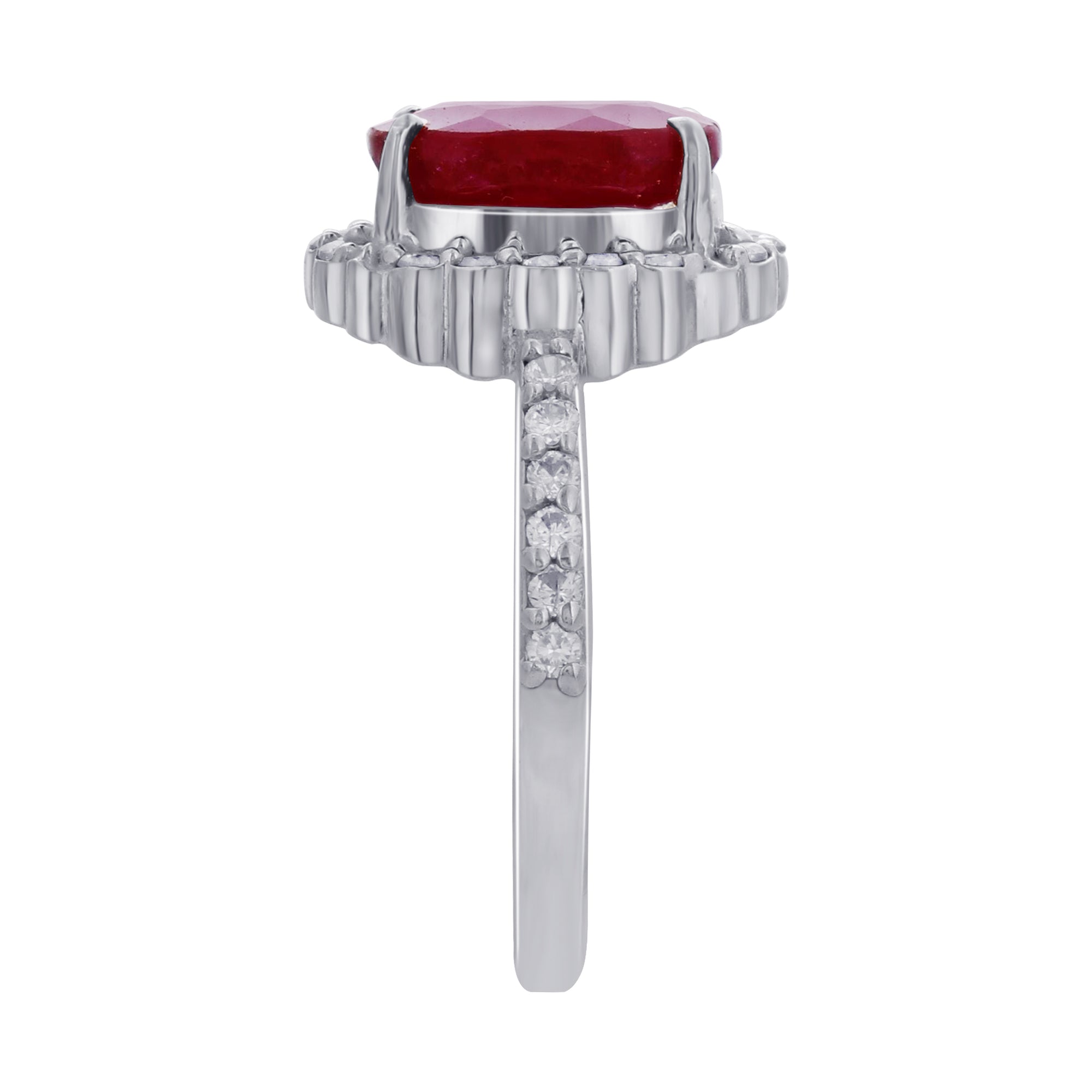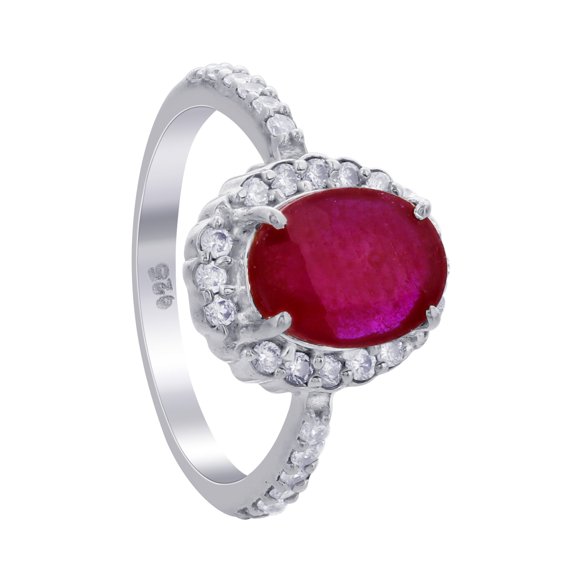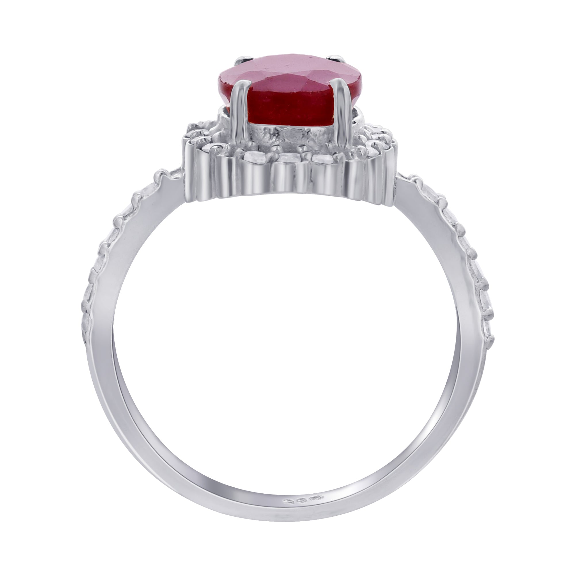 Celebrate elegance and romance with this 925 Sterling Silver Ruby Ring, beautifully designed with a radiant oval-cut ruby gemstone 12mm x 10mm set in a sparkling halo design. Known as the July birthstone, ruby has long been cherished as a symbol of passion, devotion, and strength.