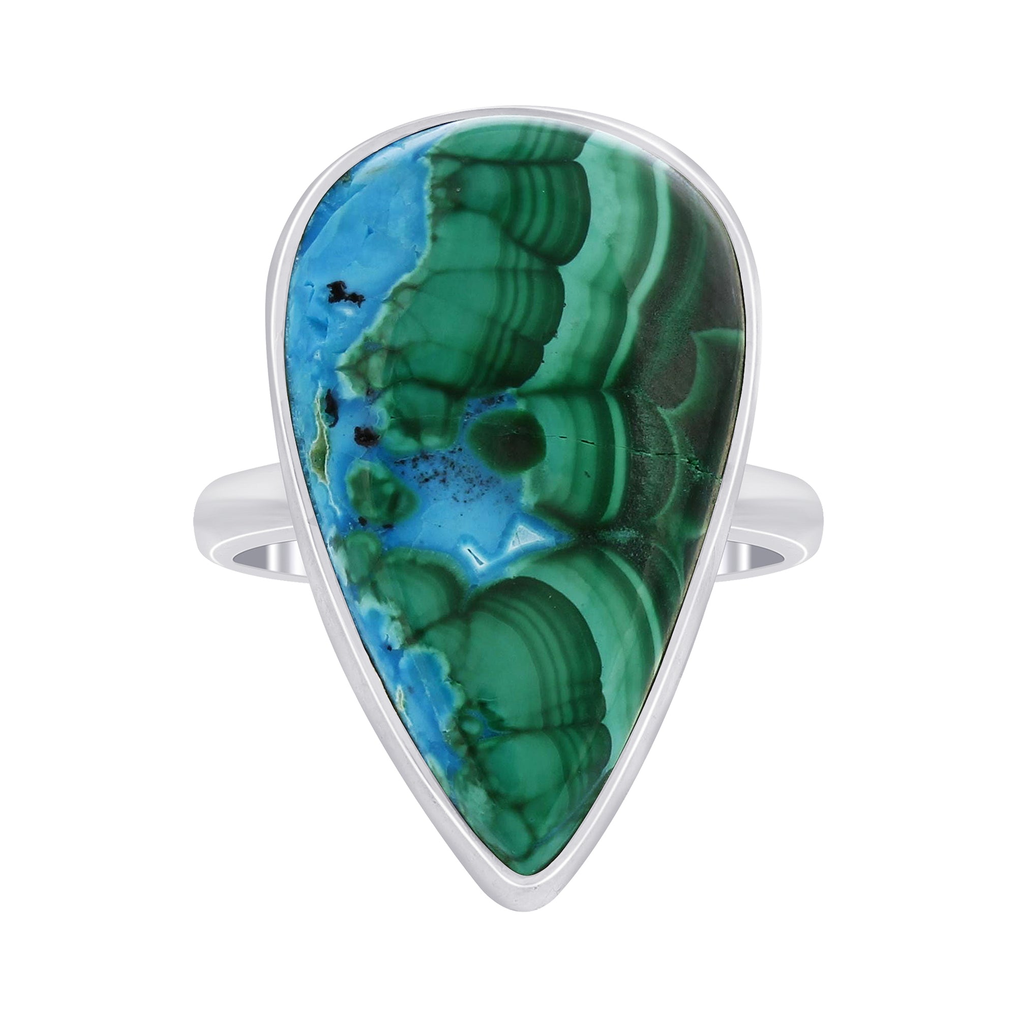 This statement piece features a captivating Azurite Malachite gemstone, known for its unique, mesmerizing patterns. It's not just a ring; it's a conversation starter, a piece of art for your hand. Whether you're looking to add a touch of boho chic to your ensemble or want a gift that stands out, this ring is a perfect choice.