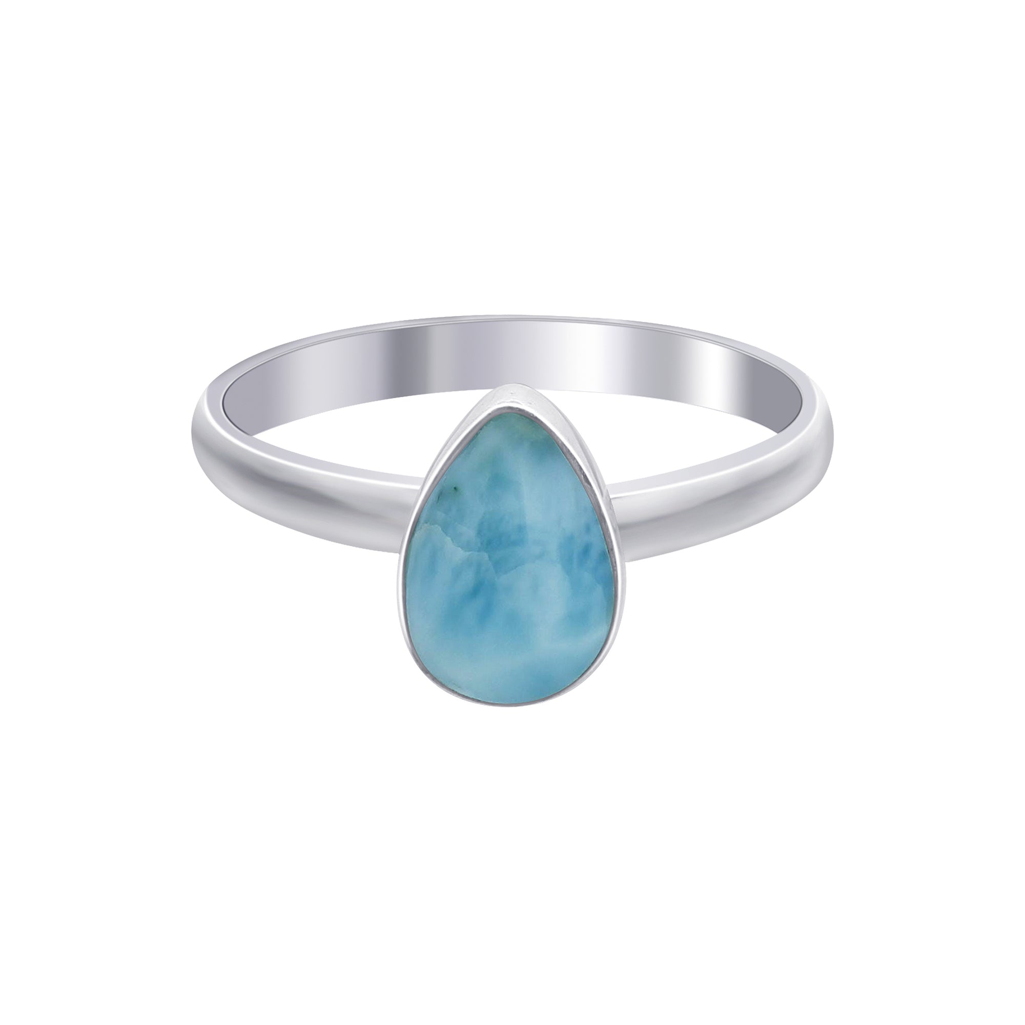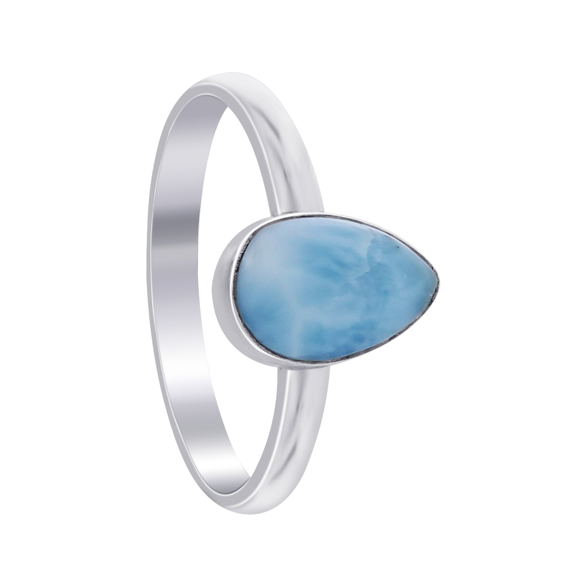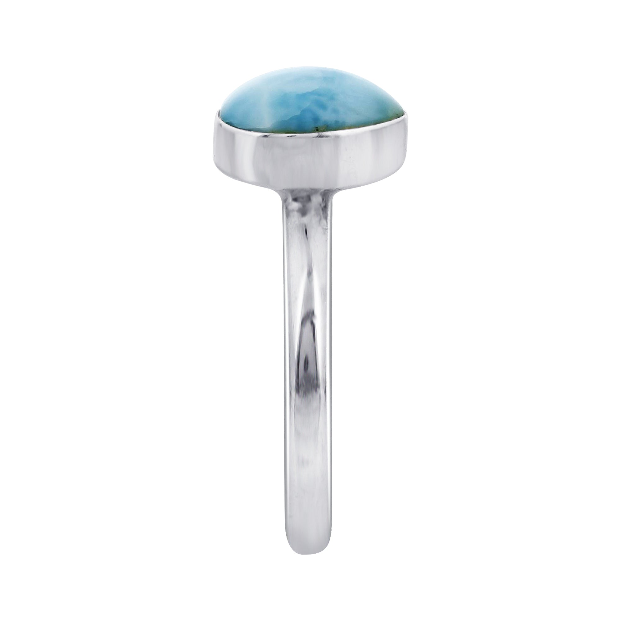 925 Sterling Silver, ensuring durability and a polished finish. It features a genuine Larimar gemstone, known for its striking blue color with white swirls.