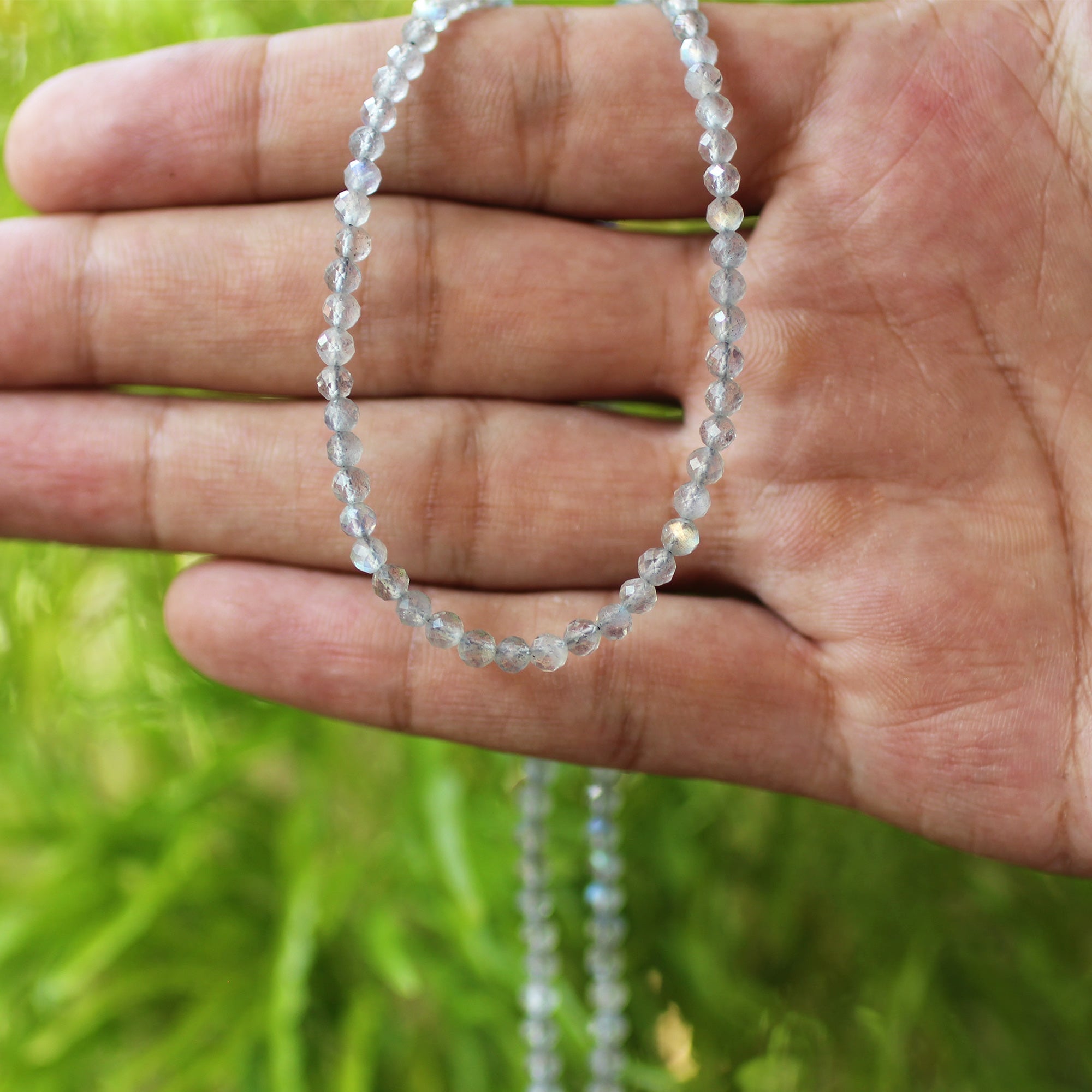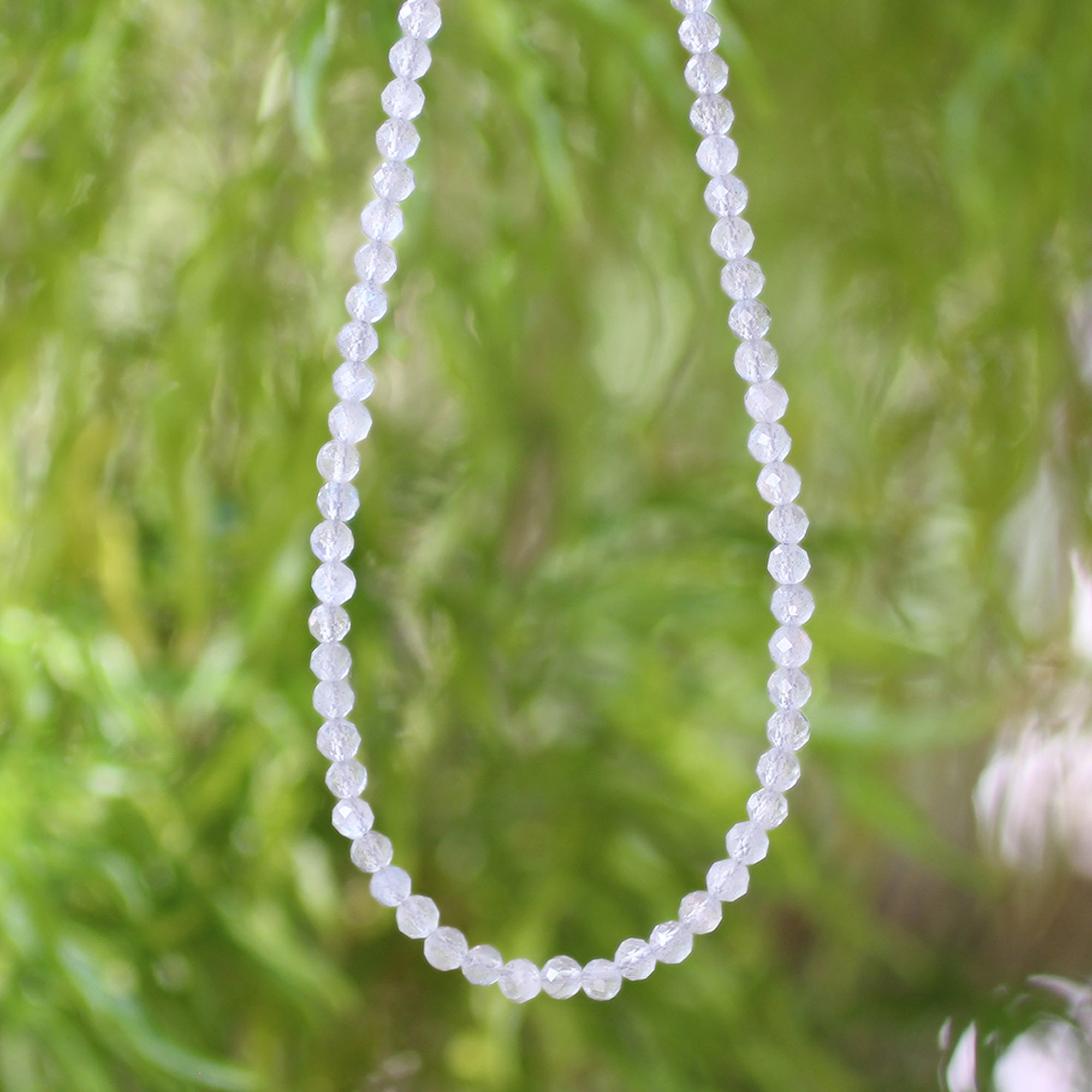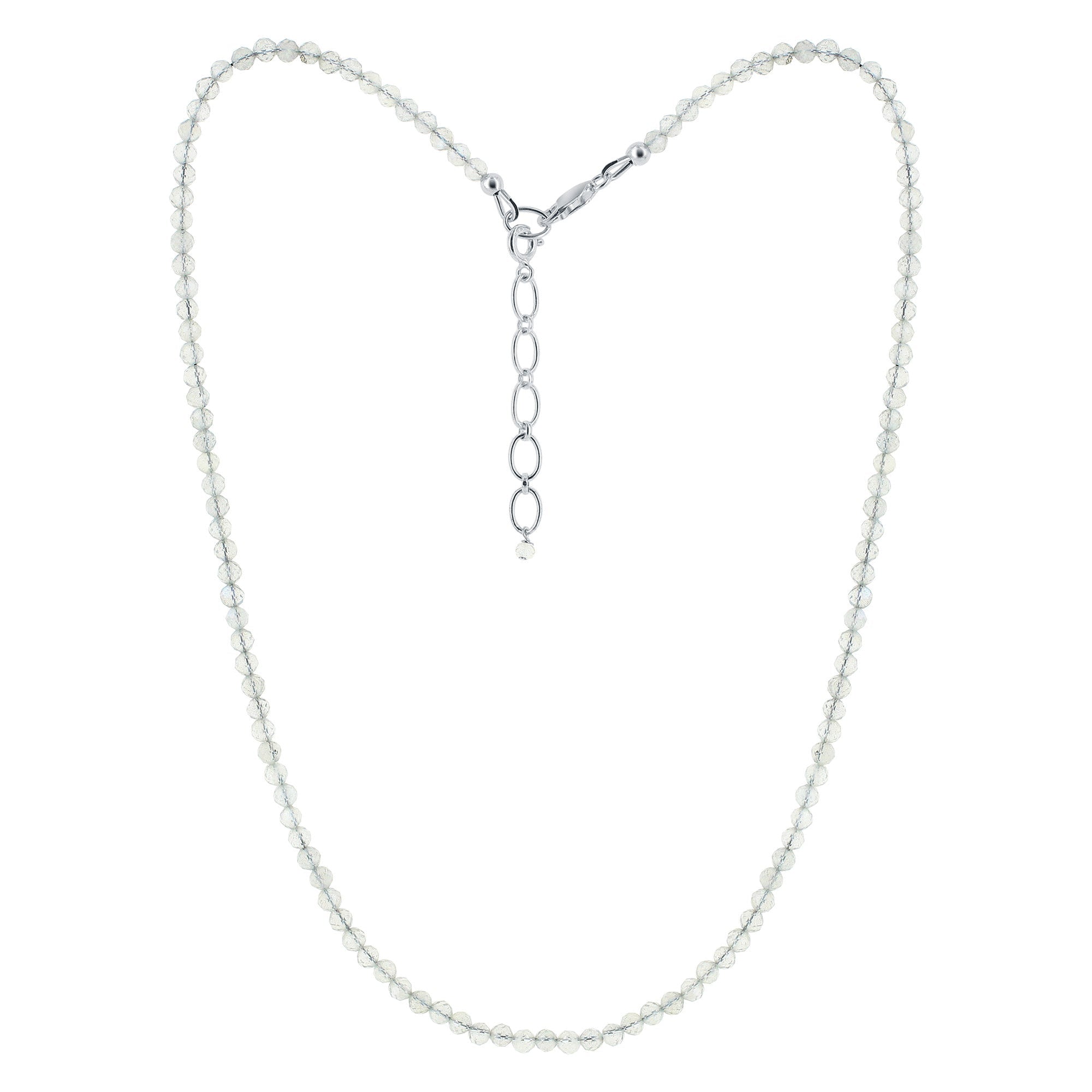 2mm Natural Labradorite Gemstone Necklace with 925 Sterling Silver Clasp Healing Crystal Jewelry for Women