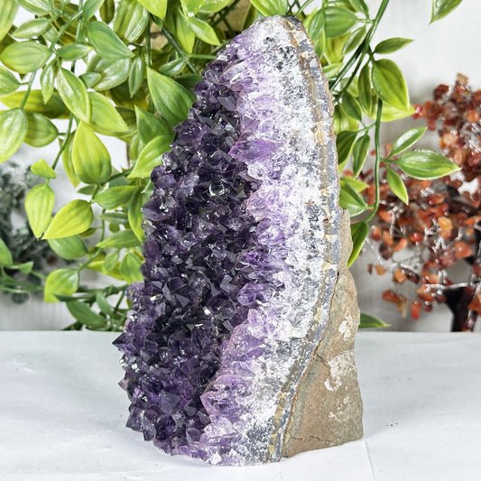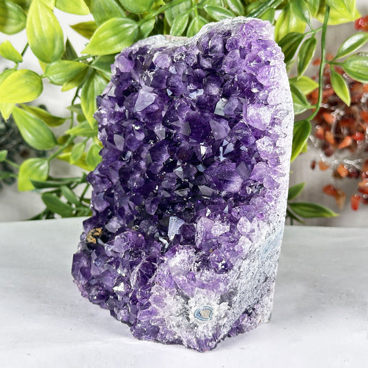 Amethyst geodes, in particular, are highly sought after for their beauty and unique shapes. Often referred to as "church crystals" due to their resemblance to cathedral windows, these geodes come in a variety of sizes. From small amethyst geode stones perfect for a desk display to large amethyst geodes that make striking decor pieces, these crystals are known for their calming energy and aesthetic appeal. Some believe that amethyst geodes can improve sleep, relieve stress, and enhance mental clarity, making them a favorite among crystal enthusiasts.