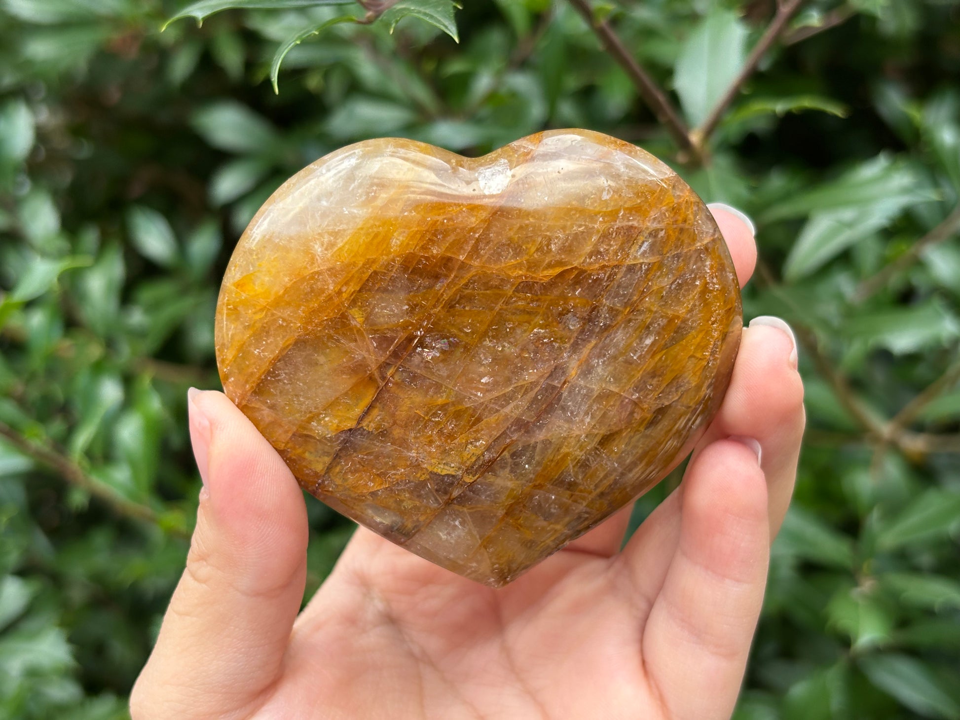 Natural polished heart-shaped Golden Healer Quartz crystal gemstone, perfect for meditation, energy healing and elegant decor - RSH318