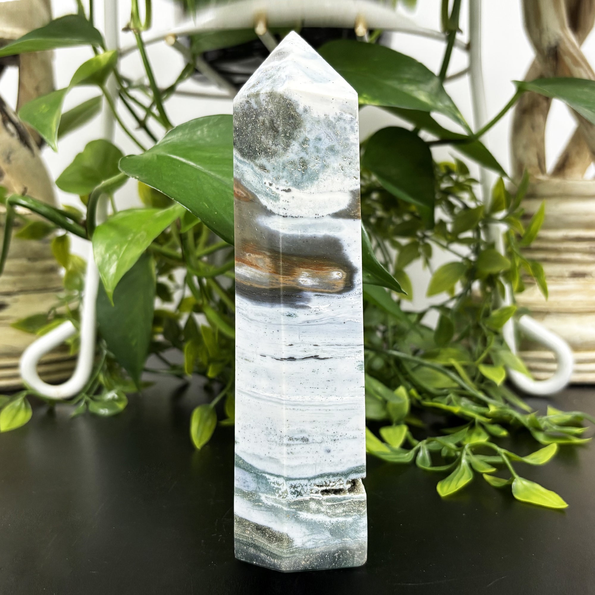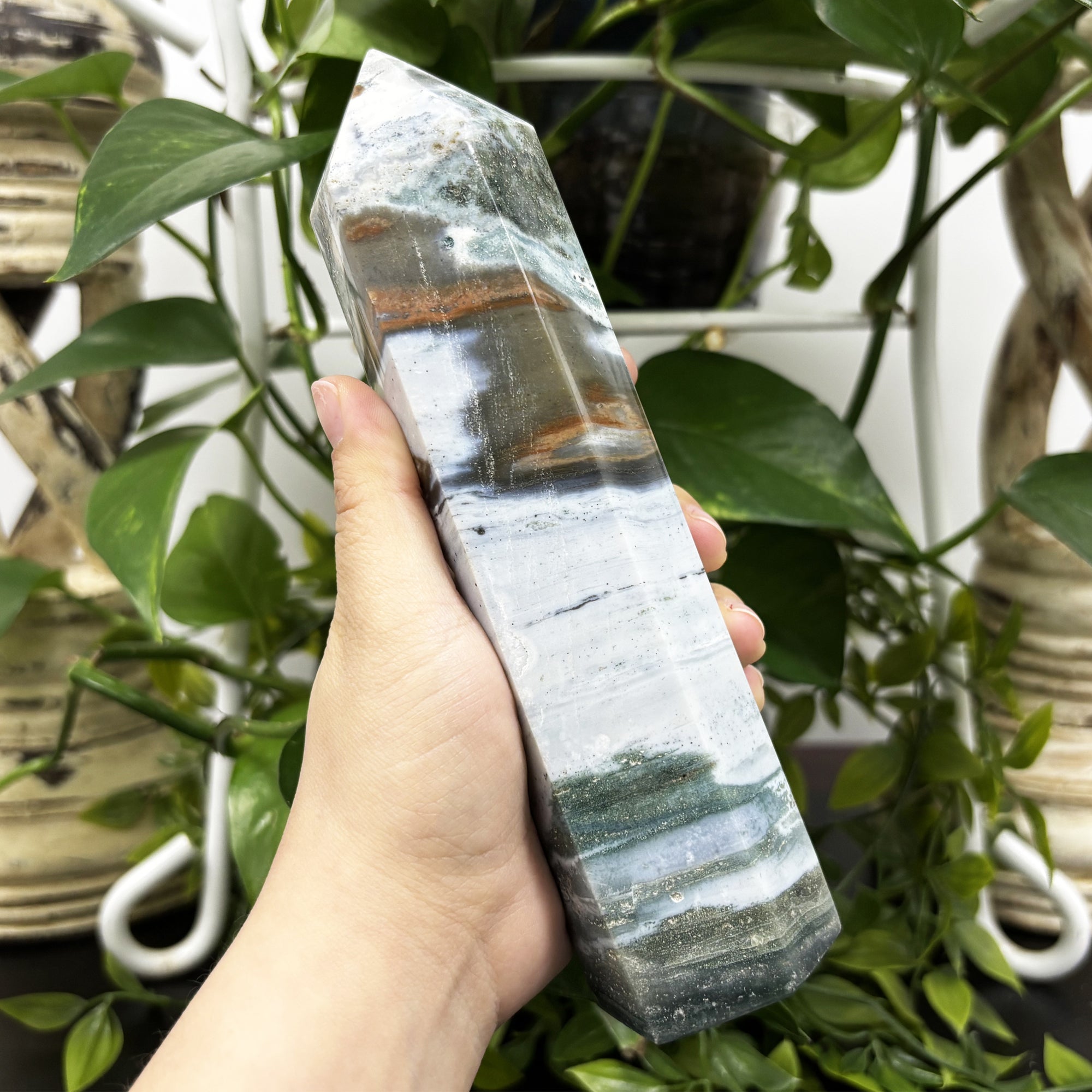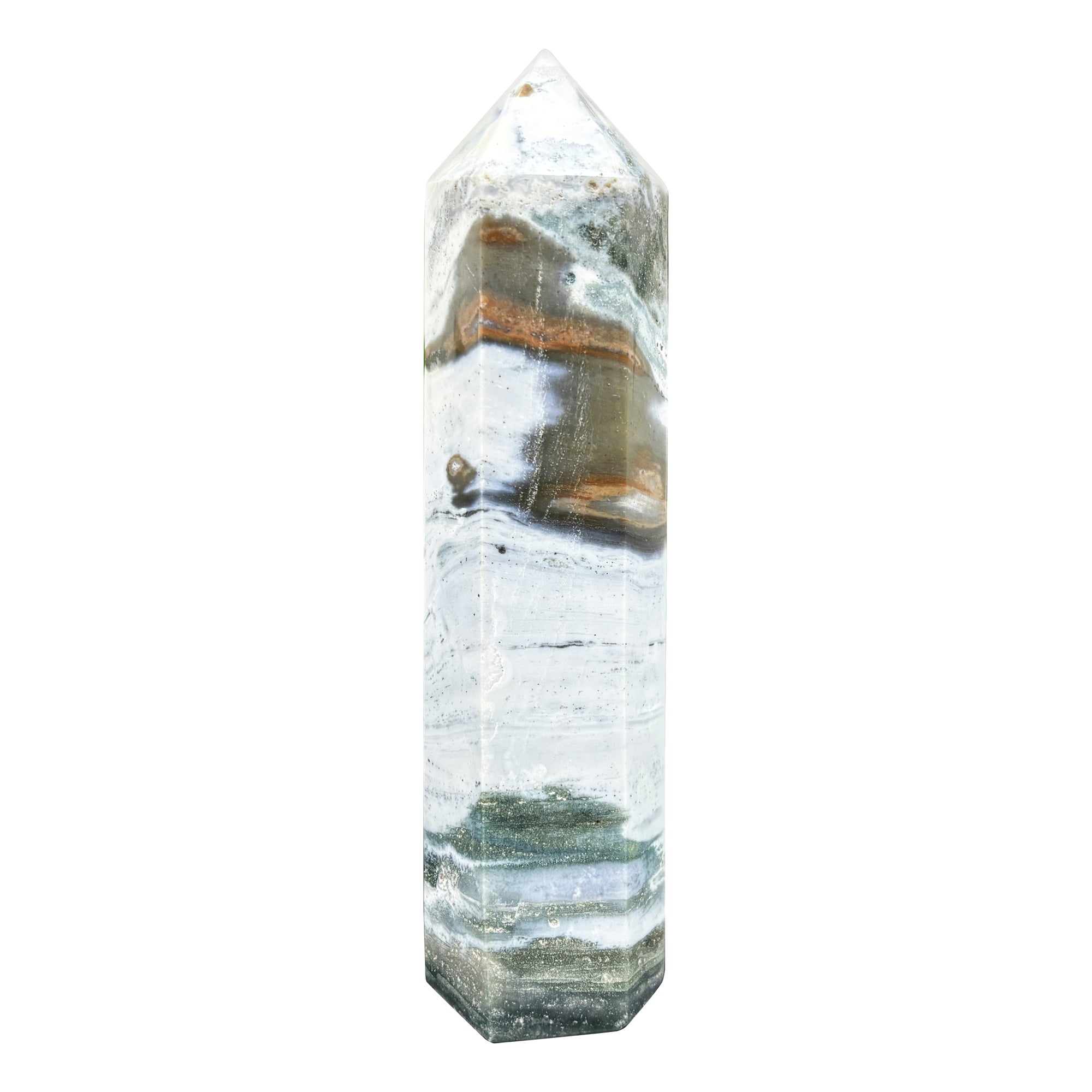 Experience the calming energy of our Natural Sea Jasper Crystal Obelisk Tower. This polished healing stone promotes balance and spiritual growth, making it an excellent addition to your collection. Its natural form provides a unique and powerful source of energy, helping you to find inner peace and harmony.