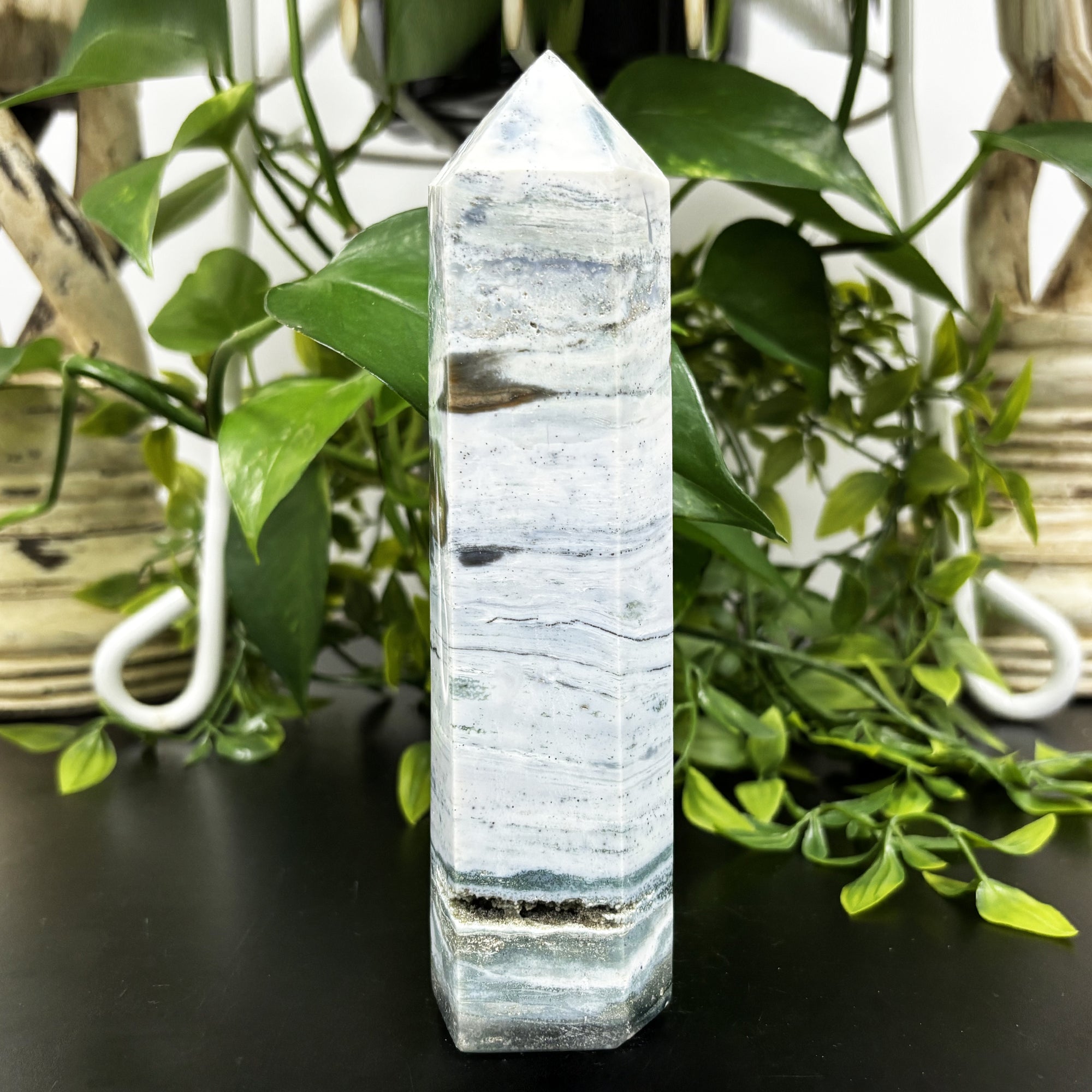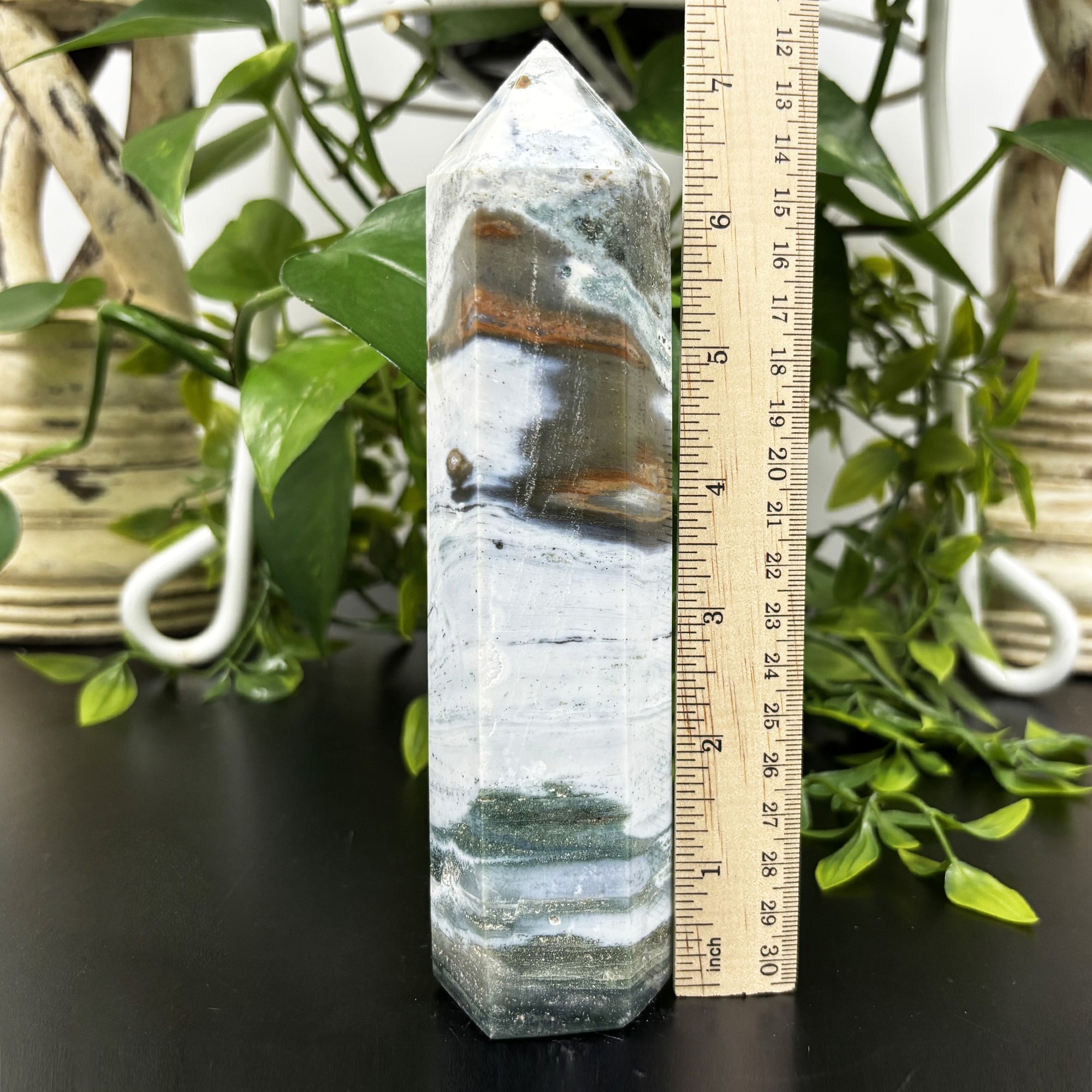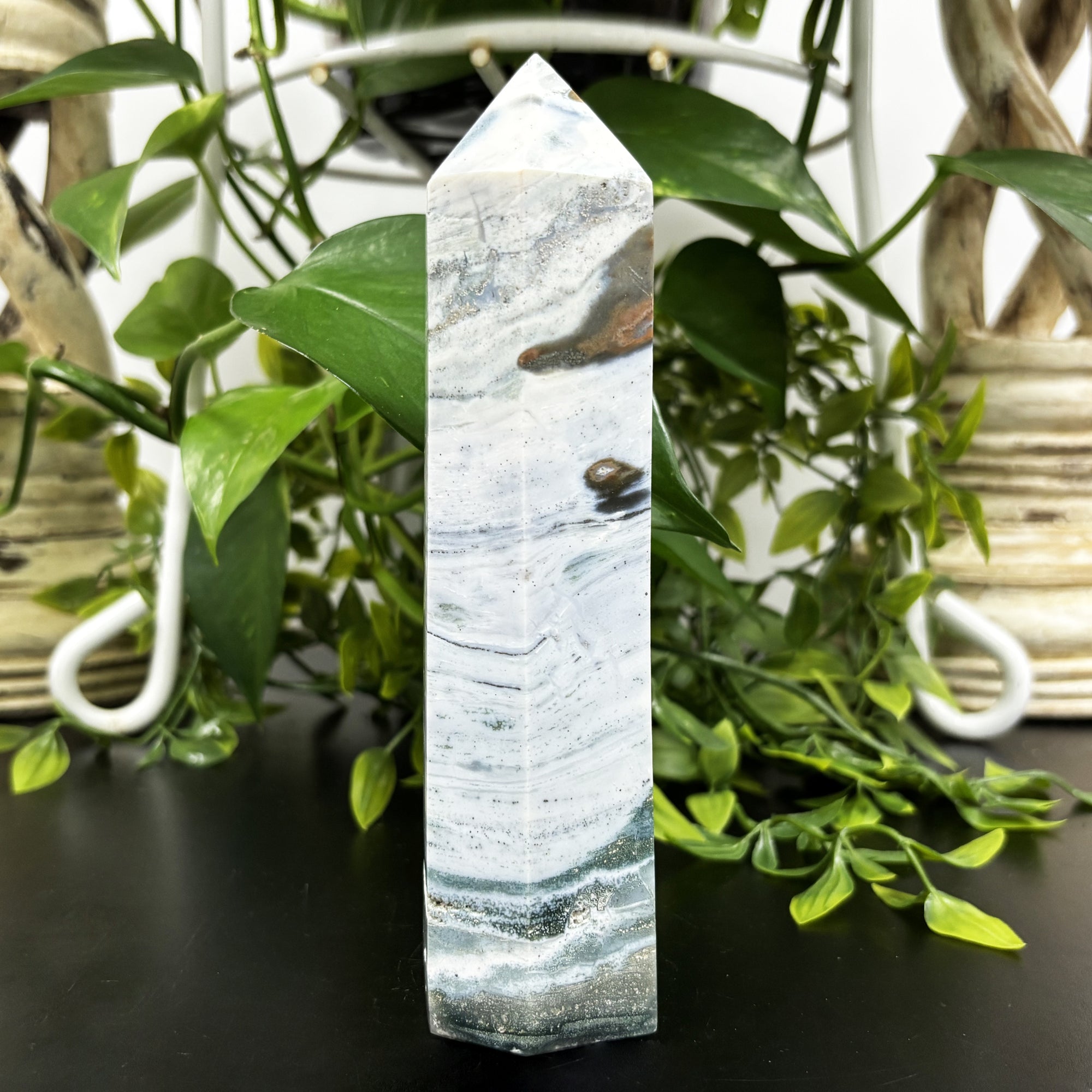 Experience the calming energy of our Natural Sea Jasper Crystal Obelisk Tower. This polished healing stone promotes balance and spiritual growth, making it an excellent addition to your collection. Its natural form provides a unique and powerful source of energy, helping you to find inner peace and harmony.