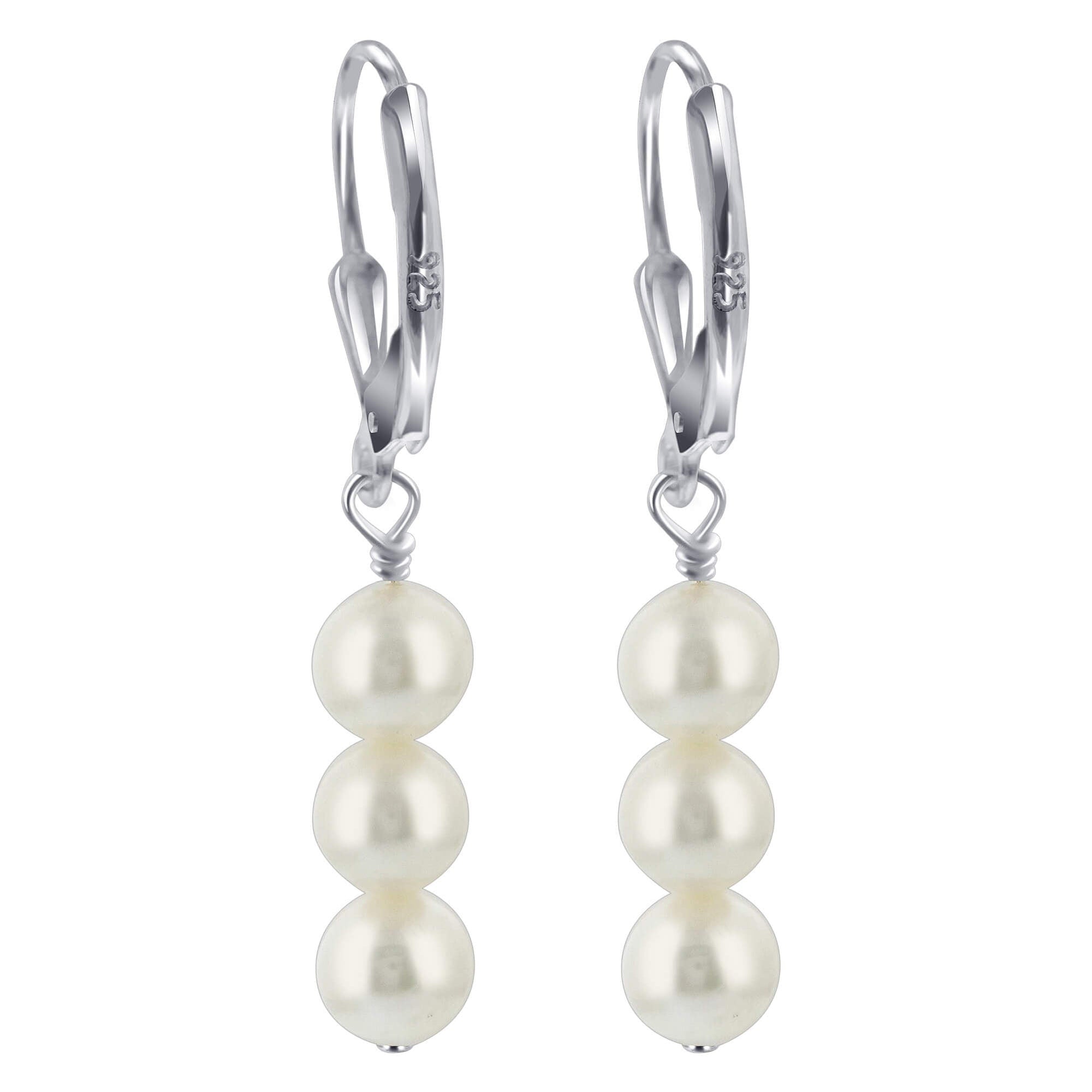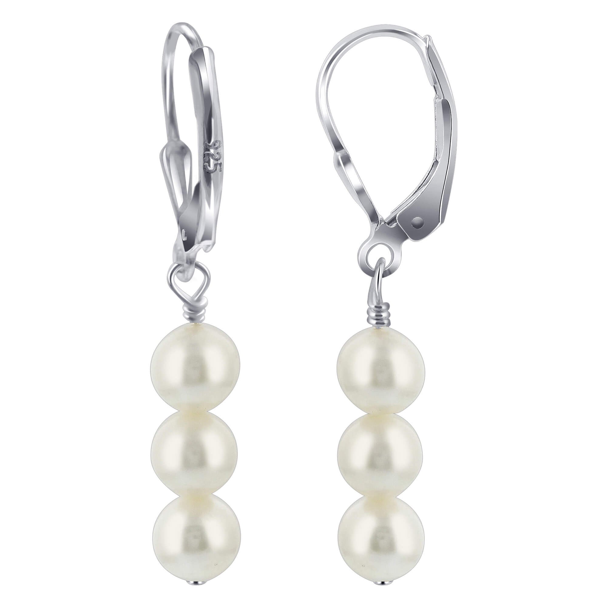 These earrings are 925 sterling silver and made with Austrian freshwater pearls. Comes with a secure leverback in sterling silver. Cultured freshwater pearls have a potato shape and are approximately 8 mm in size. These pearls are renowned for their lustre and lasting beauty; the sterling silver leverback design ensures a secure fit and modern style.