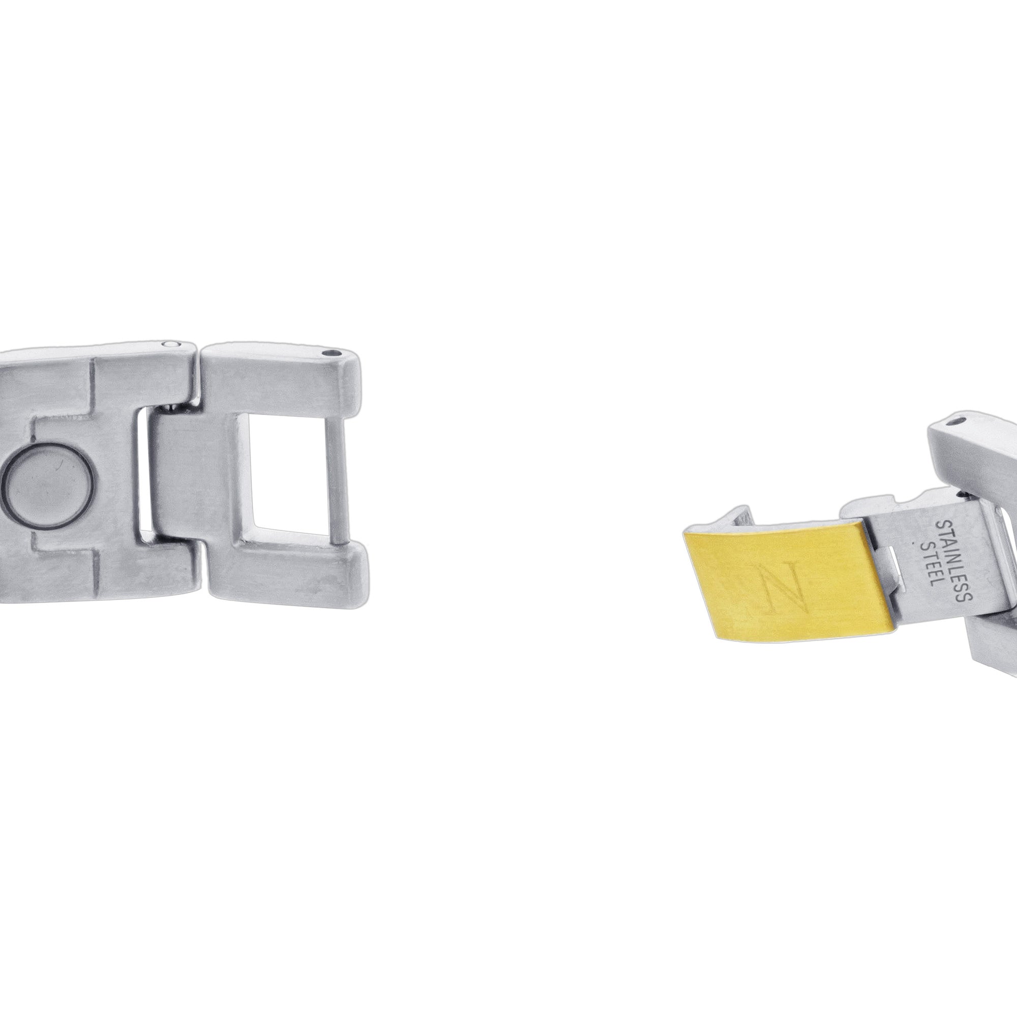 Stainless steel bracelet with a Cool design. Looks great and you will love it. Perfect for a Man. Durable Stainless Steel with 24K Gold overlay.