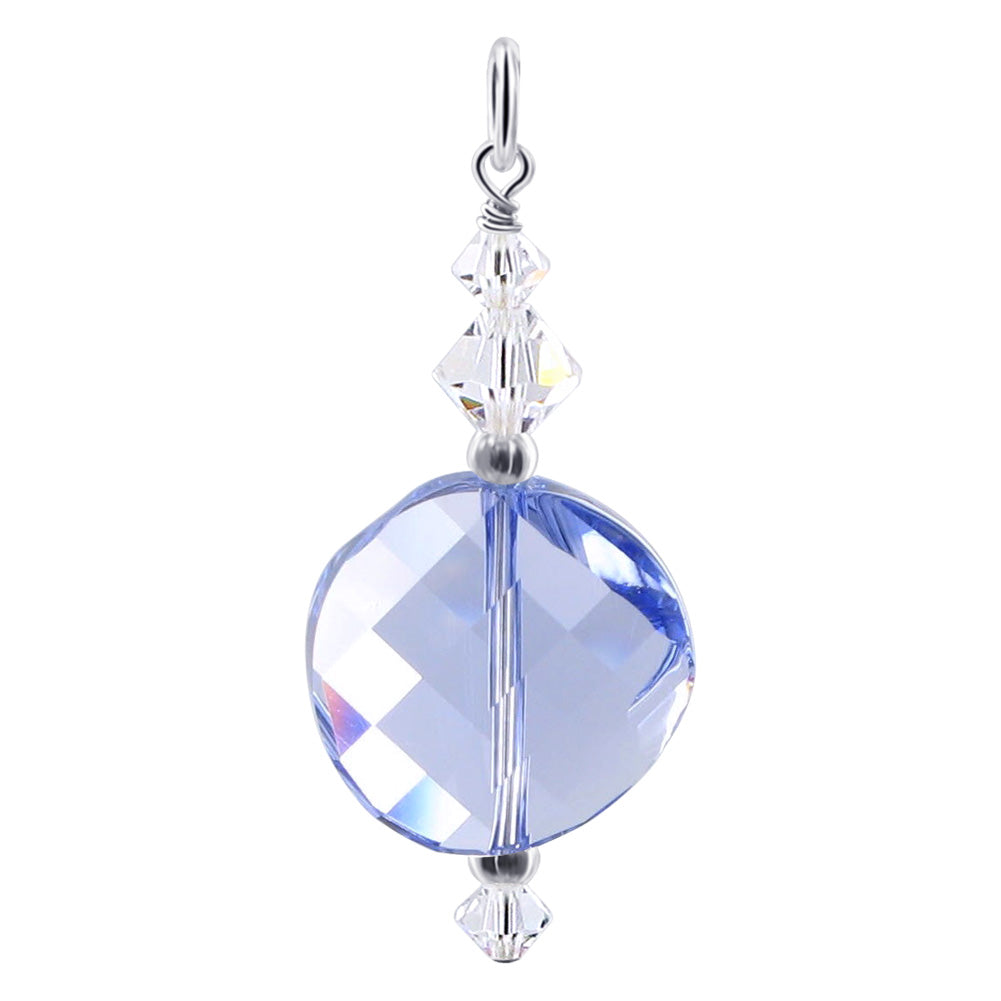 .925 Sterling Silver Dangle Pendant made with Bicone Shaped and 17 x 17mm Multifacted Austrian Crystals.