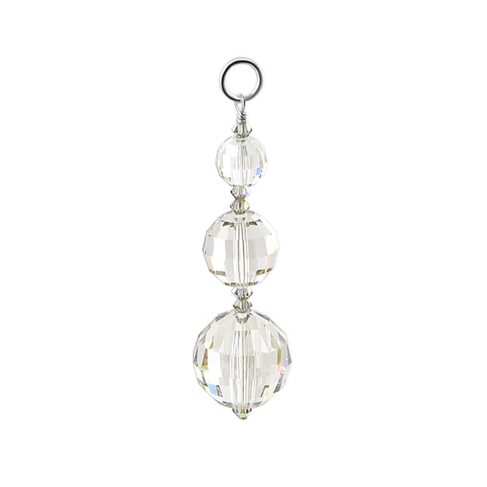 .925 Sterling Silver Dangle Pendant made with Round & Bicone Shaped Multifaceted Austrian Crystals. Dimensions of these multifaceted Crystal are 7mm at Top, 11mm at Middle and 15mm at Bottom. Sterling Silver Bail of this Pendant will go with all Standard Chains.