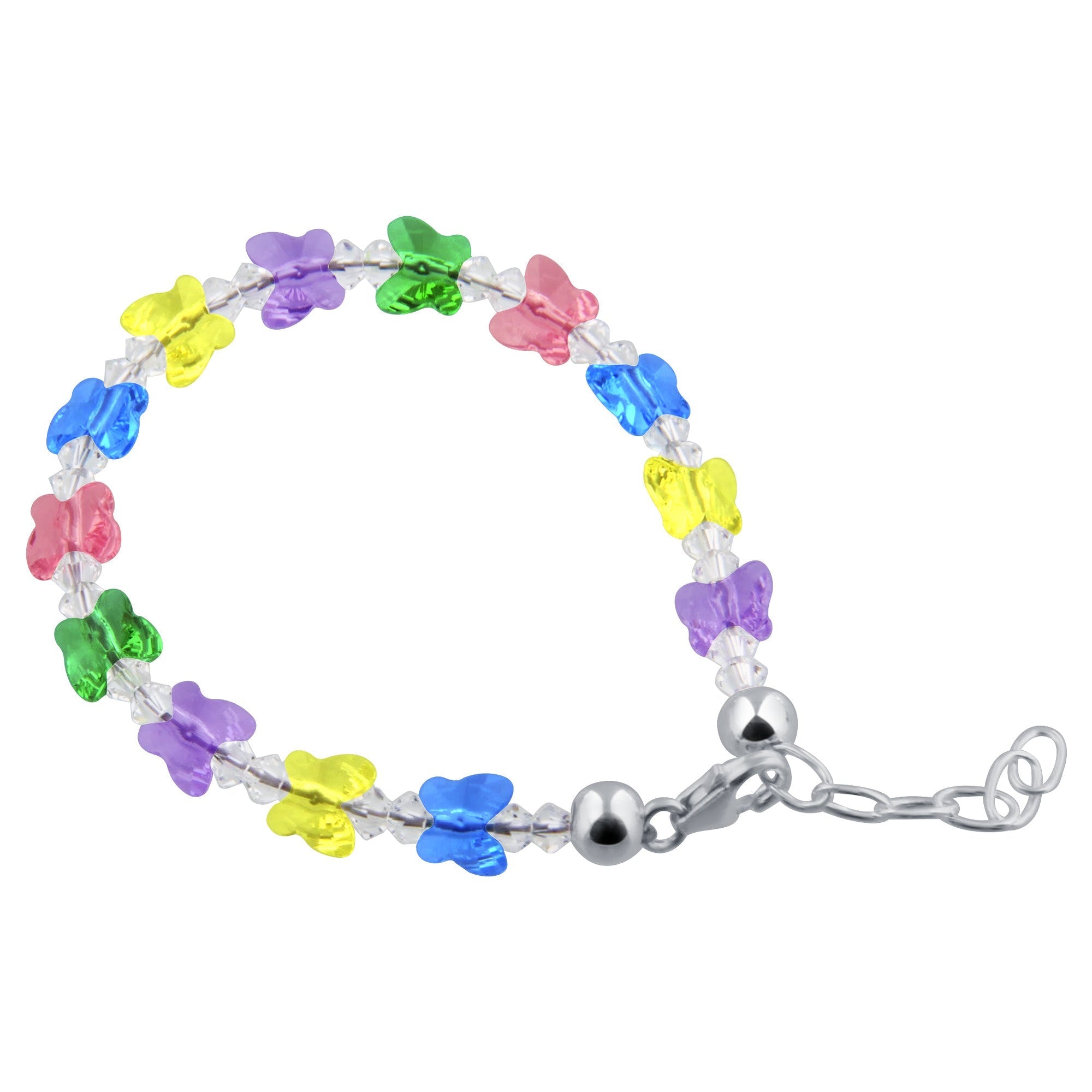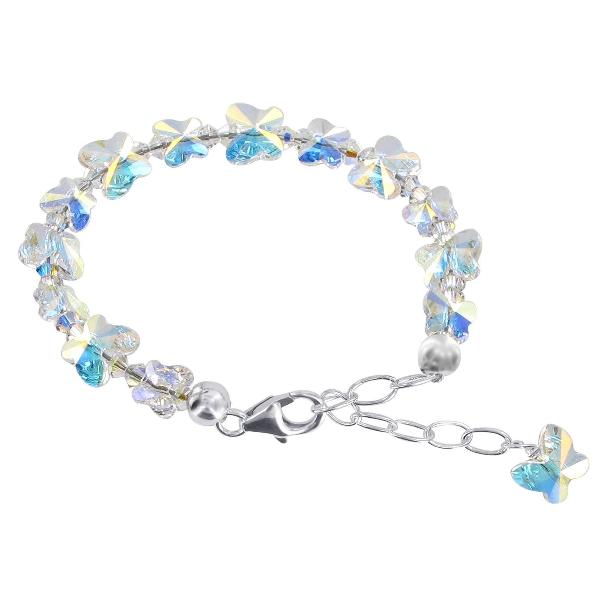 .925 Sterling Silver Adjustable Bracelet Austrian Crystals. Delightfully delicate, shimmering and sparkling butterflies in alternating sizes flutter across this easily-adjustable bracelet; perfect for the young lady in your life.