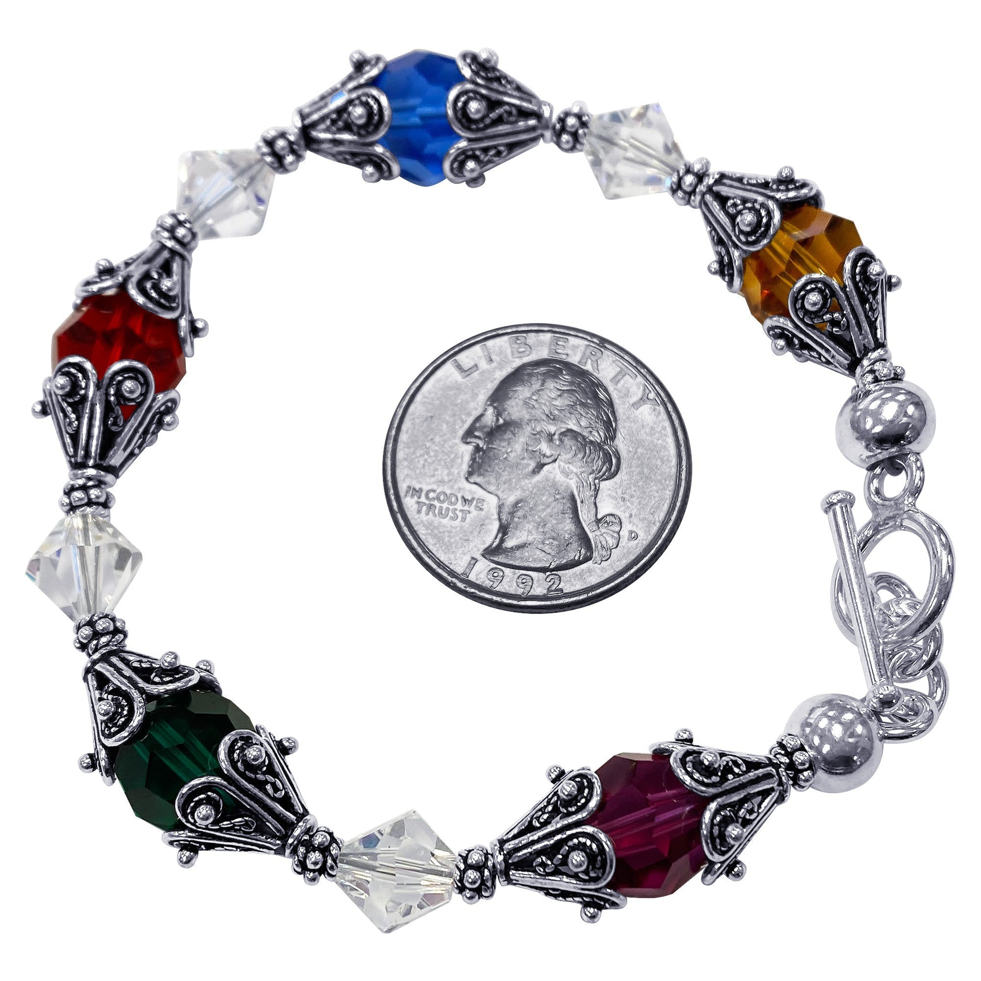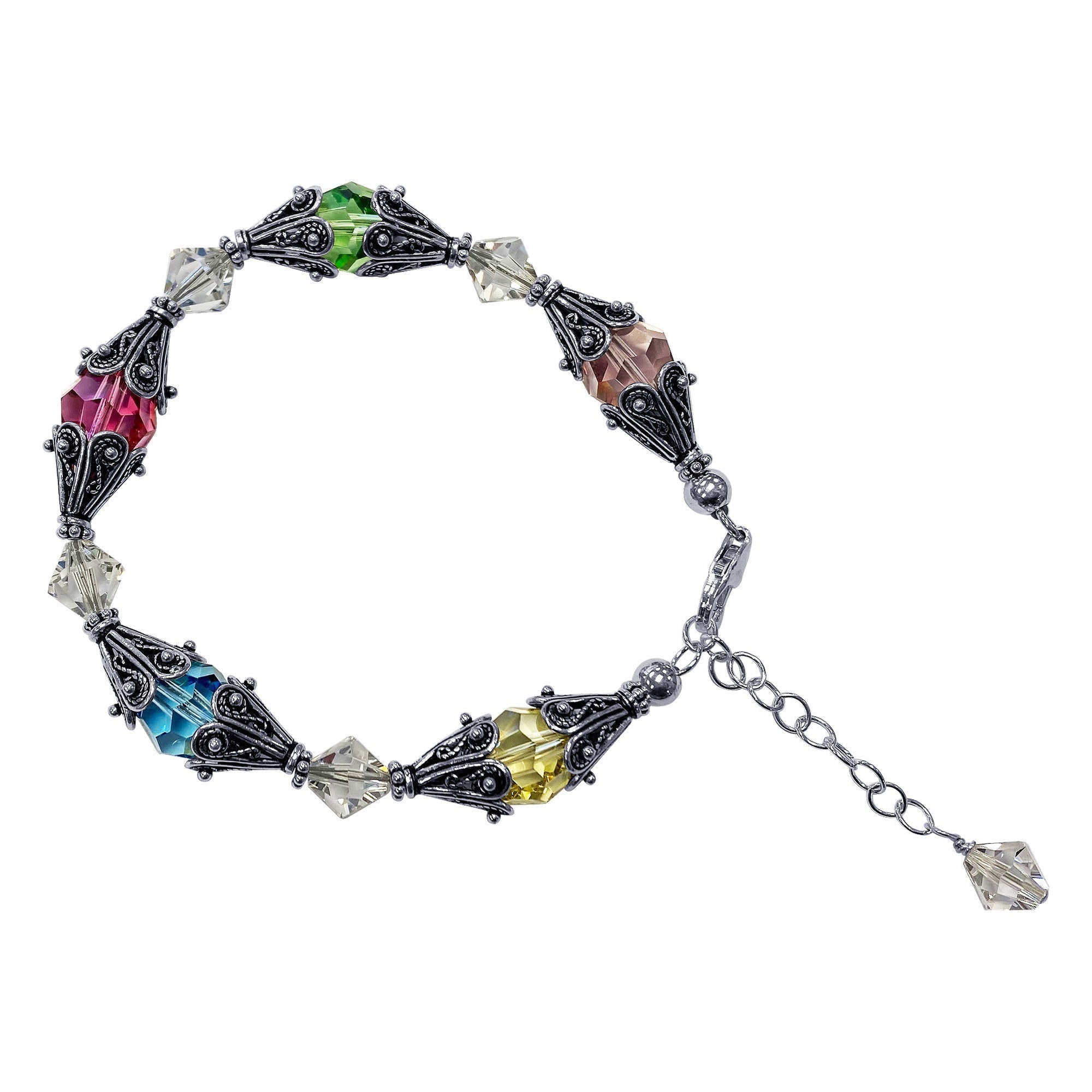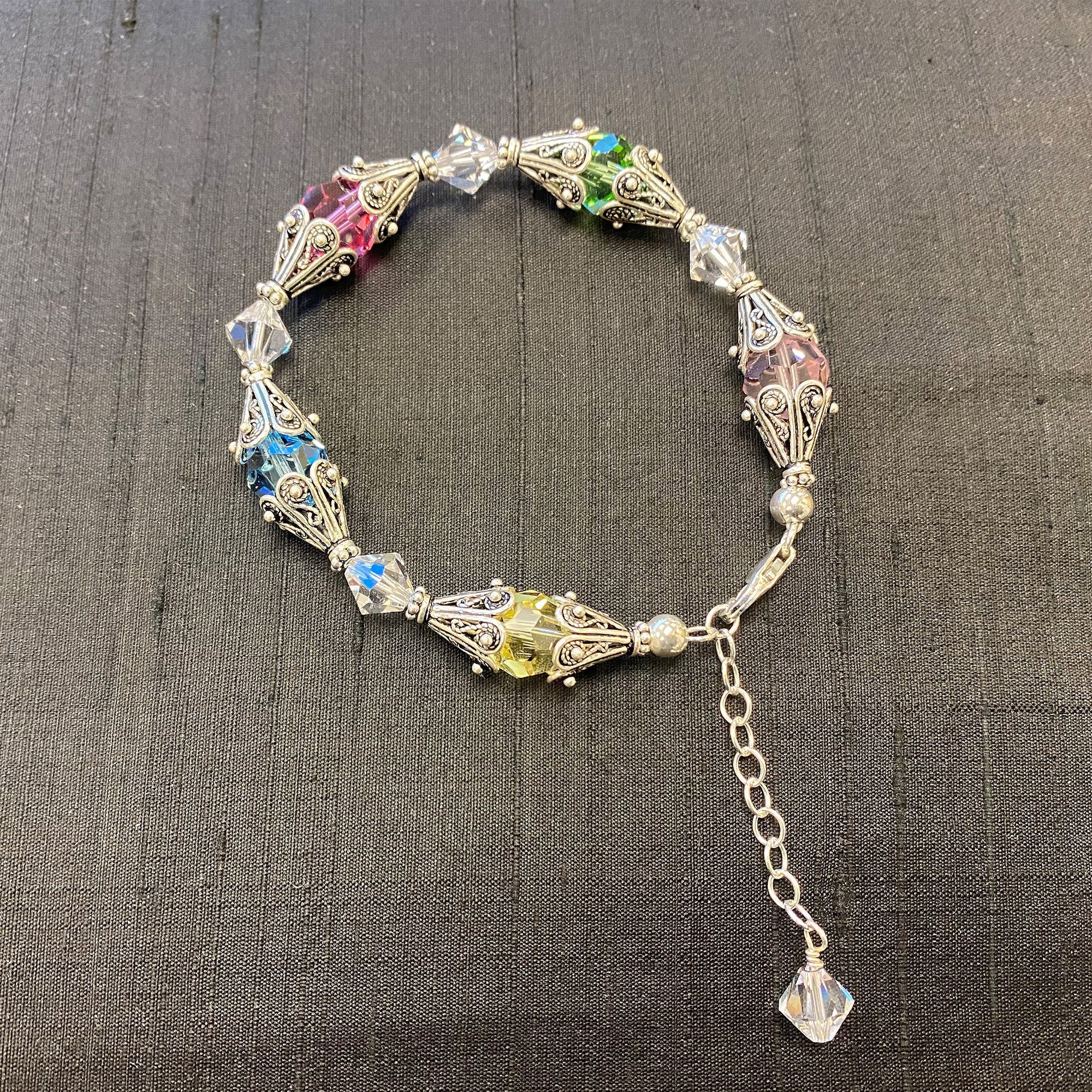Crafted from high-quality sterling silver, this bracelet is the epitome of elegance. Adorned with intricate Bali bead caps and sparkling Austrian crystals, it is the perfect addition to any outfit. Add a touch of sophistication and shine with this stunning piece.