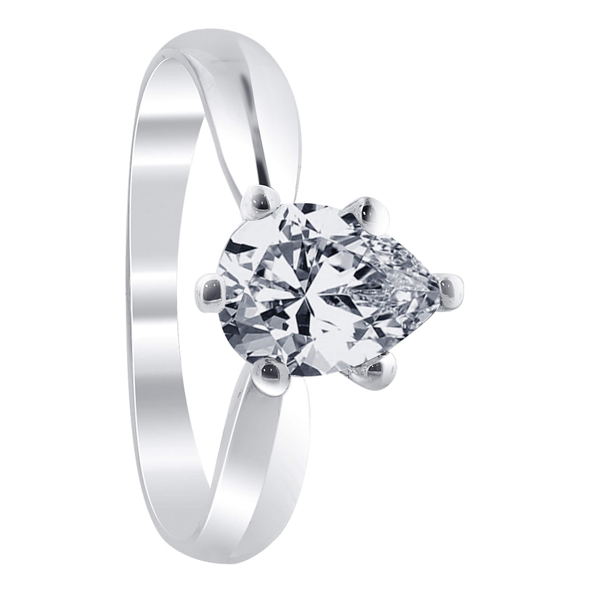925 Sterling Silver Solitaire Ring. The ring features 1 CTW pear-cut cubic zirconia with great lustre. Its timeless design and sophisticated craftsmanship make this ring an exquisite addition to any jewellery collection. The stunning lustre of the CZ stones will add a sparkle to any outfit.