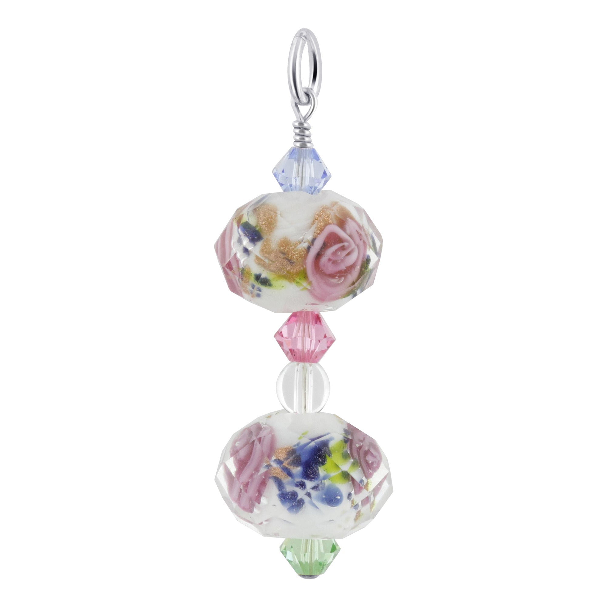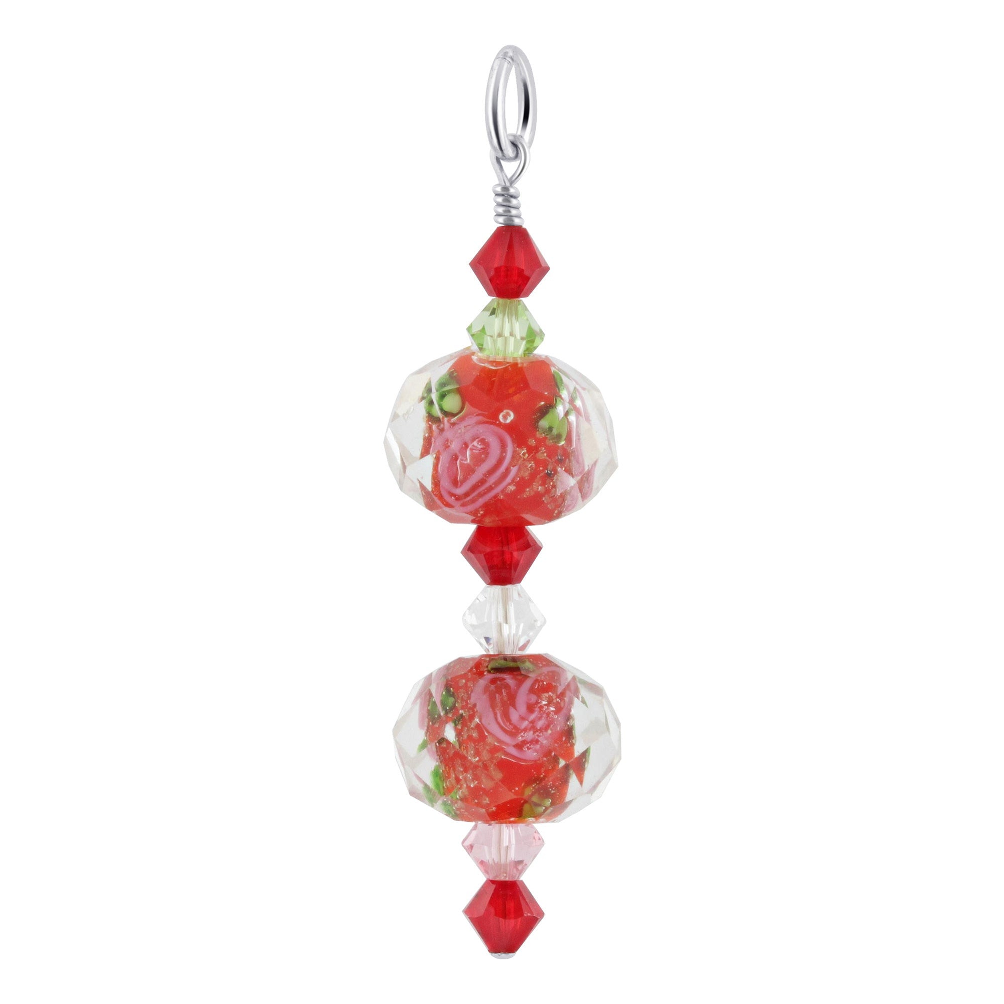 Simple sophistication can easily be yours with this beaded glass pendant. Crafted from .925 sterling silver, the pendant features multifaceted blown glass beads and bicone austrian crystal. The pendant measures approximately 12mm wide and 35mm long, and comes with a silver jump ring that will fit most standard chains.
