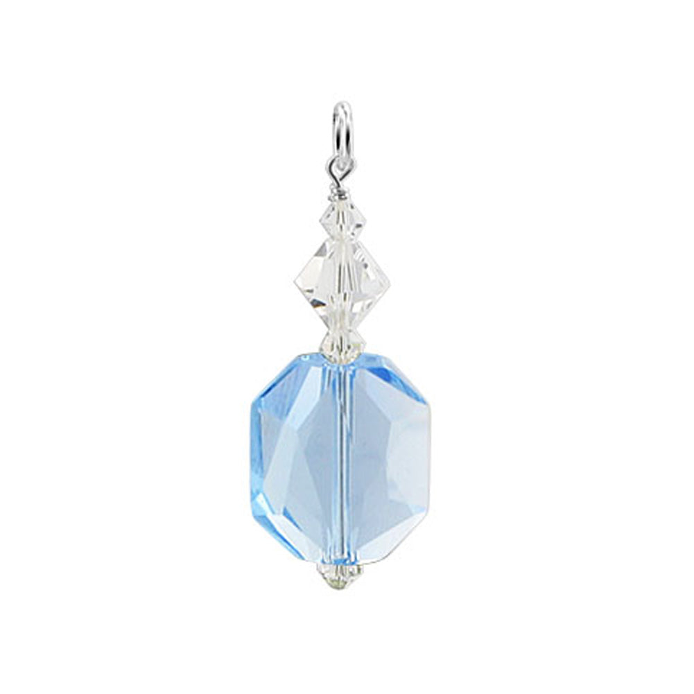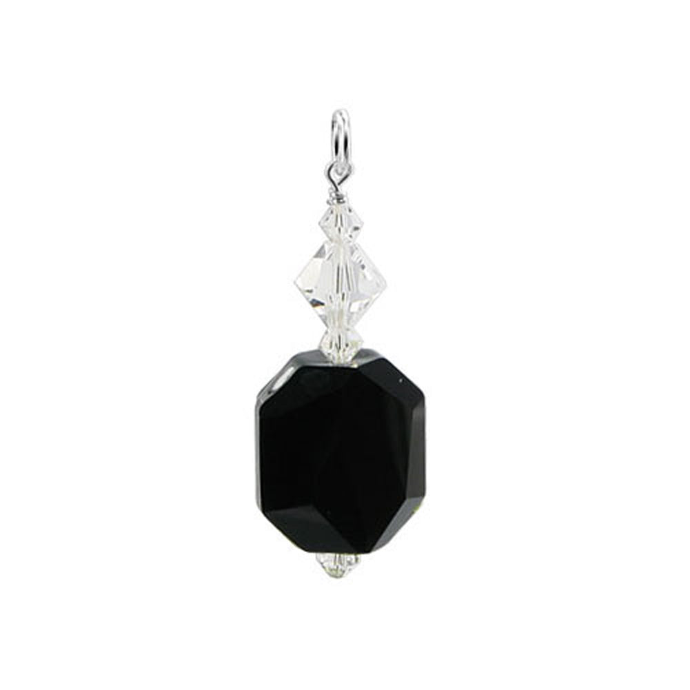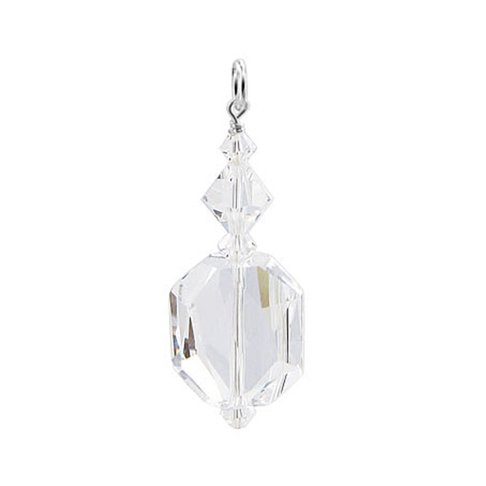 .925 Sterling Silver Dangle Pendant made with Bicone Shaped Austrian Crystal 1.5 inch Long. Dimensions are 15 x 17mm Flat Crystal Followed by two 4 x 4mm Bicone with 8 x 9mm Bicone in between them. Sterling Silver Bail of this Pendant will go with all Standard Chains.