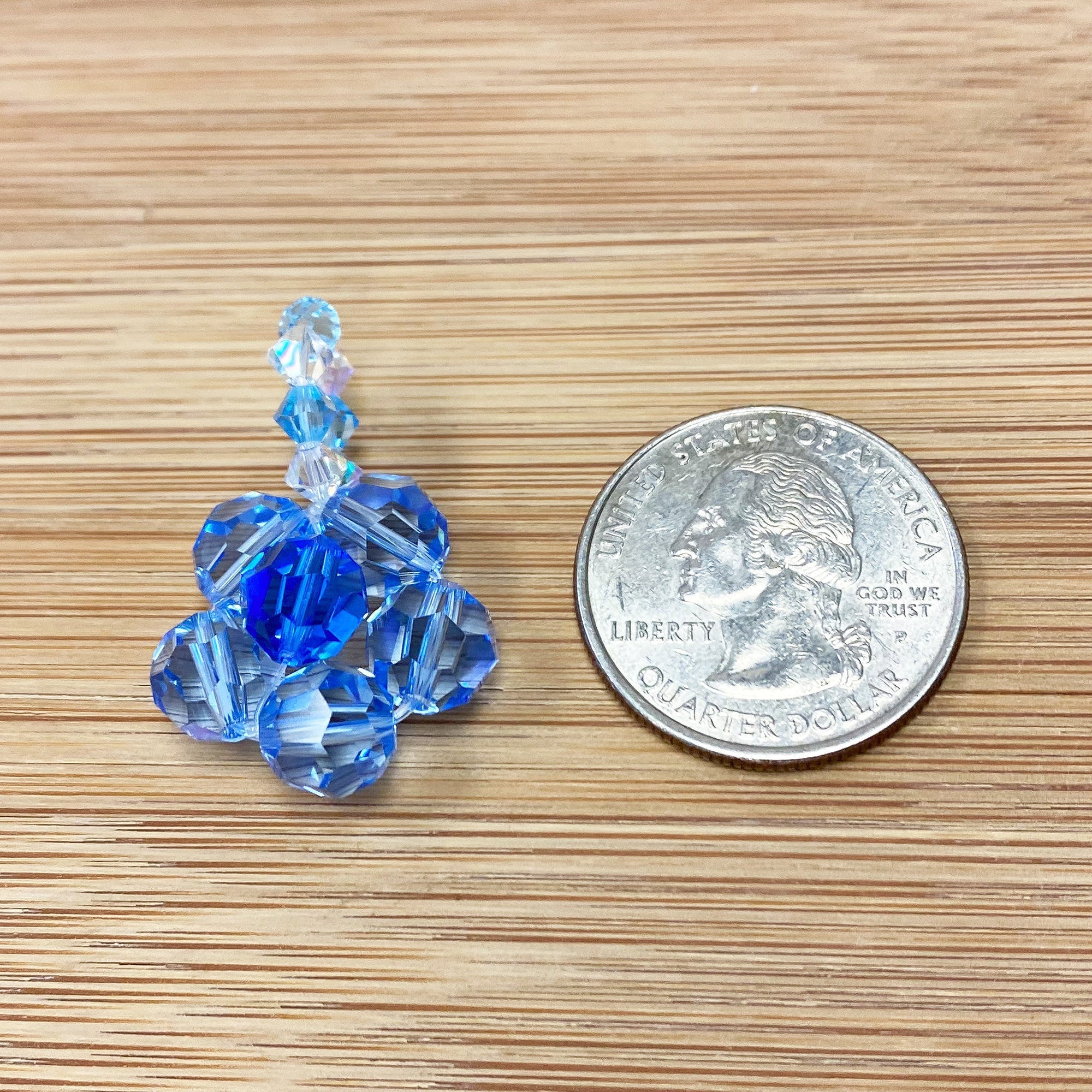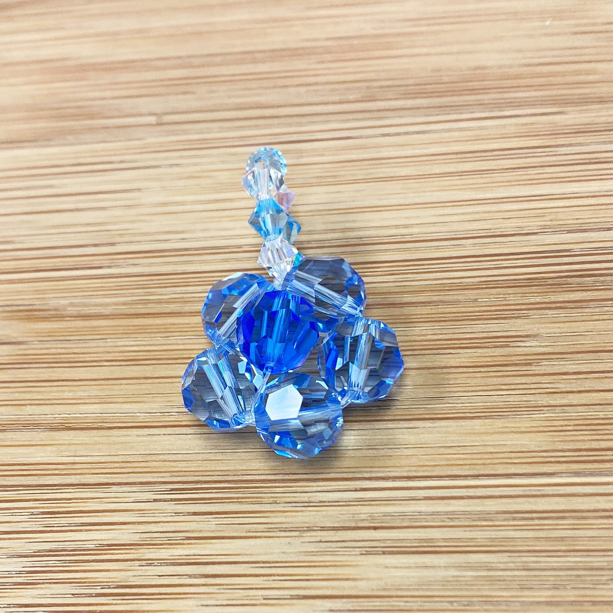 Pendant made with Floral Shaped Multi-Faceted Blue Austrian Crystals. Fabulous Creation. Floral Pendant made in USA. Each glittering multi-faceted blue Crystal in the Pendant has a lot of shine to it.