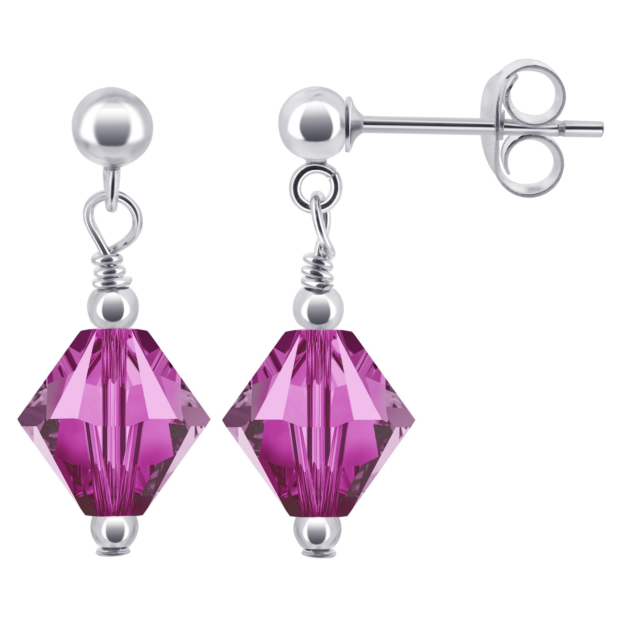 Expertly crafted in shimmering 925 sterling silver, these drop earrings feature stunning 8mm Bicone Austrian Crystals with silver accents. With a secure post-friction back, they are 1 inch long for comfortable wear. Elevate any outfit with these sparkling earrings.