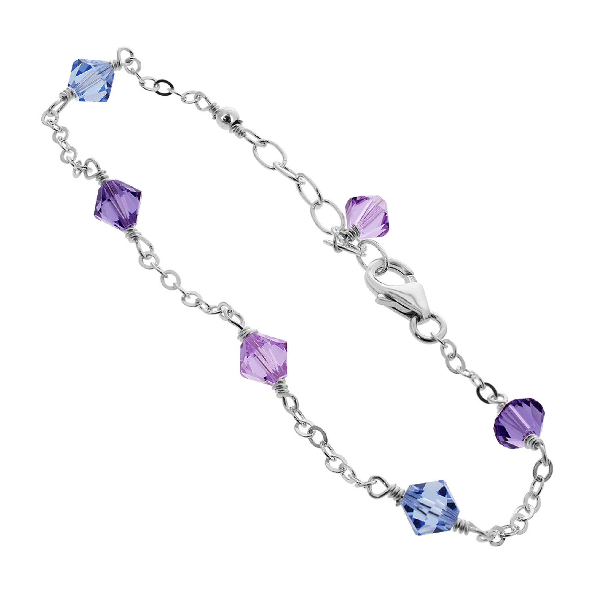 Stunning 925 Italy sterling silver chain ankle bracelet. These lovely bracelets contain beautiful blue and purple Austrian Crystals. Along with the crystals, this anklet comes with an adjustable clasp for that perfect and secure fit! This stunning piece of jewelry adds a subtle twinkle to any outfit, and the adjustable clasp helps ensure a comfortable fit all day long.