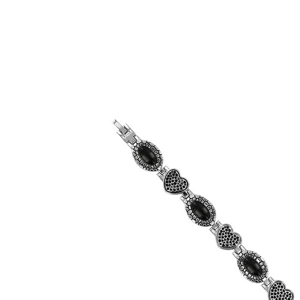 Charming and delightful, this magnetic link bracelet will look great no matter what you wear. Crafted from a metal the bracelet features oval and heart links that come with black oval cabochon stones.