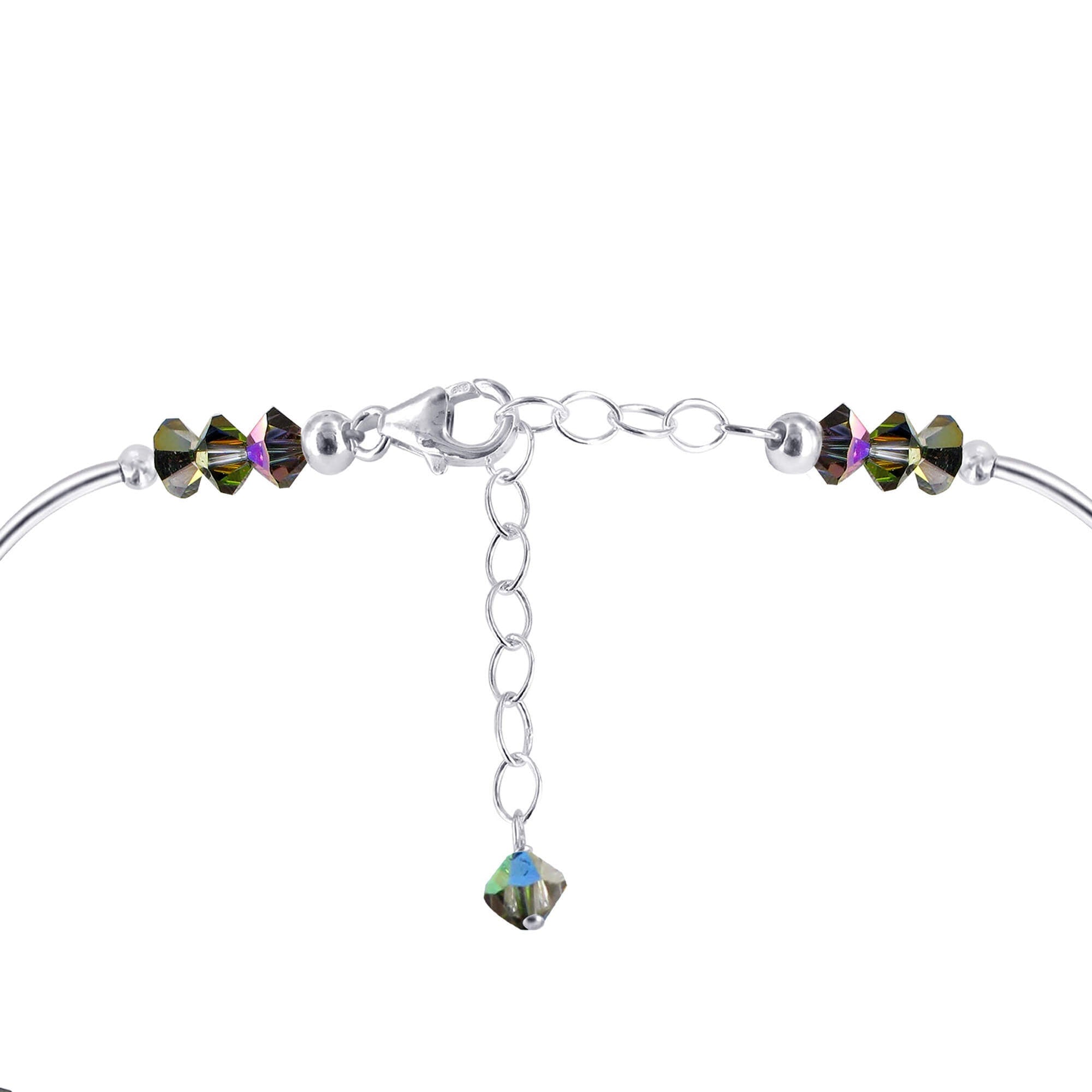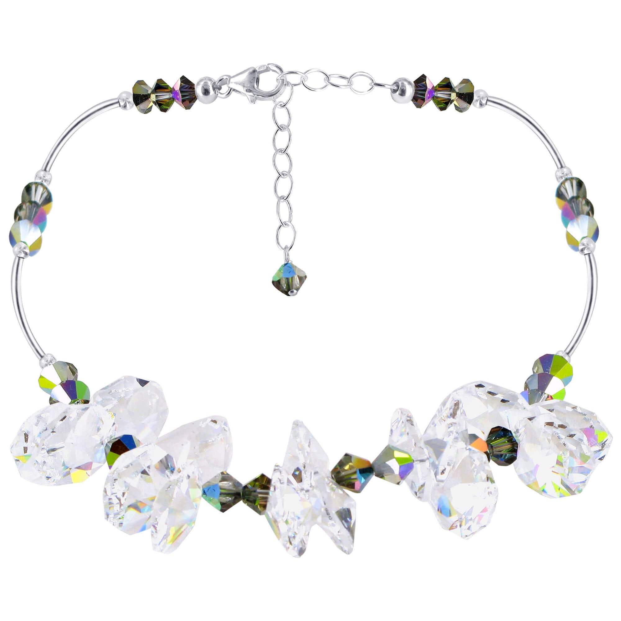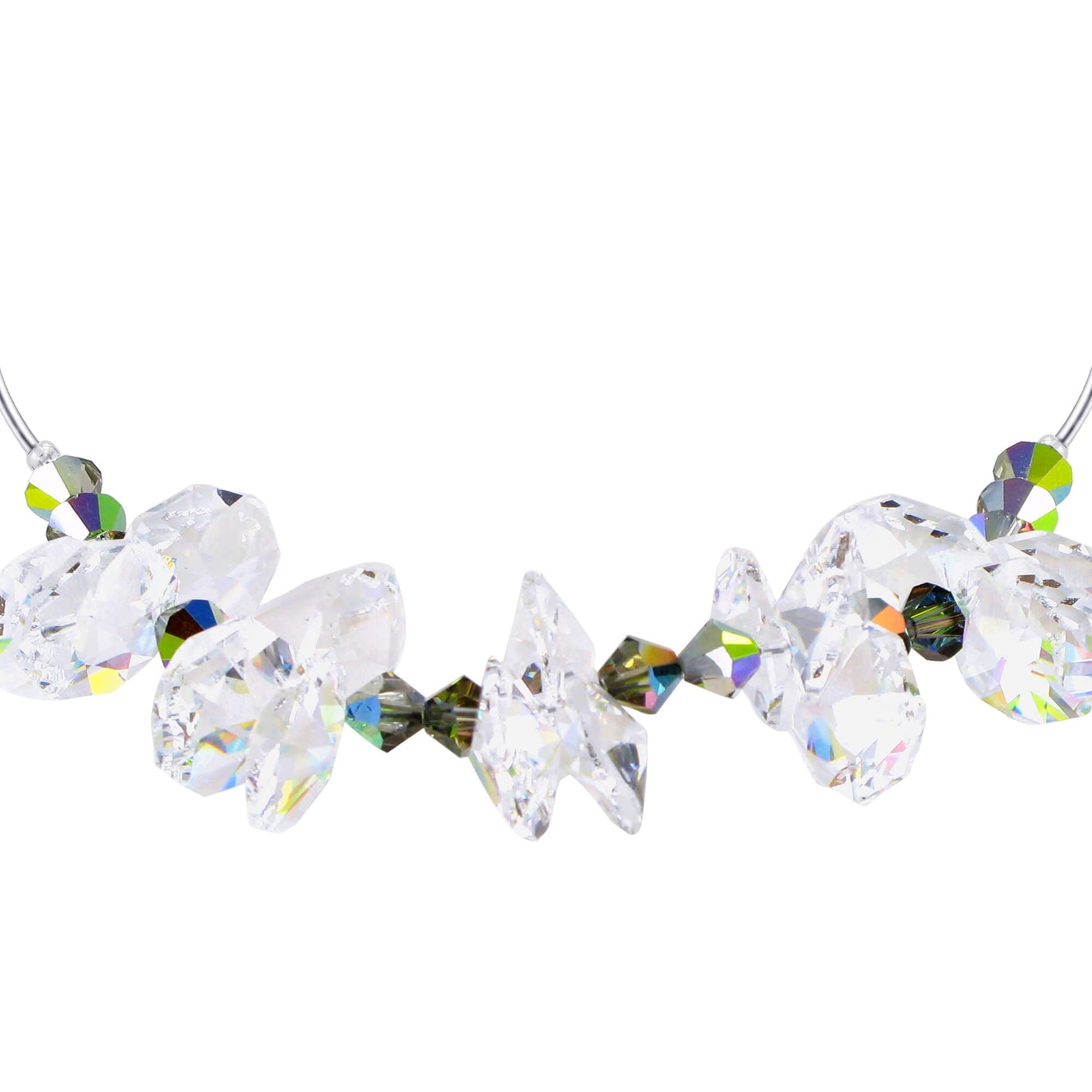 This elegant necklace features clear and colorful Vitrail AB Austrian crystals set in high-quality 925 sterling silver. The 18 inch length is perfect for layering or wearing alone, adding a touch of sparkle to any outfit. Expertly crafted and versatile, this necklace is a must-have for any jewelry collection.
