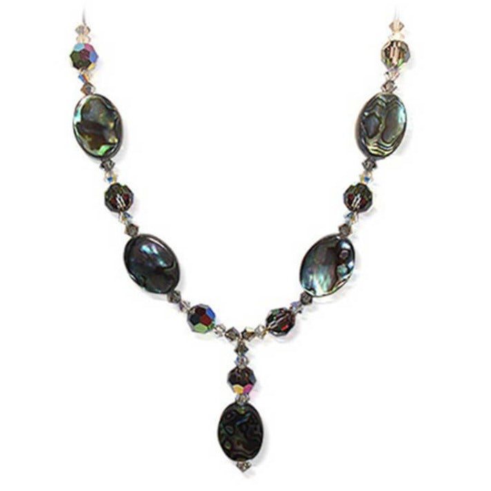 This stunning necklace highlights the captivating appeal of dyed abalone, complemented by means of shimmering Austrian crystals, all elegantly crafted in 925 sterling silver. The vibrant, iridescent colours of the abalone provide a special aptitude, while the crystals beautify the layout with their outstanding brilliance. Meticulously crafted, this necklace harmonises the splendour of nature with subtle artistry, making it a first-rate addition to any earring collection. Ideal for infusing a touch of colour and beauty into any ensemble, this necklace is adaptable and enduring.