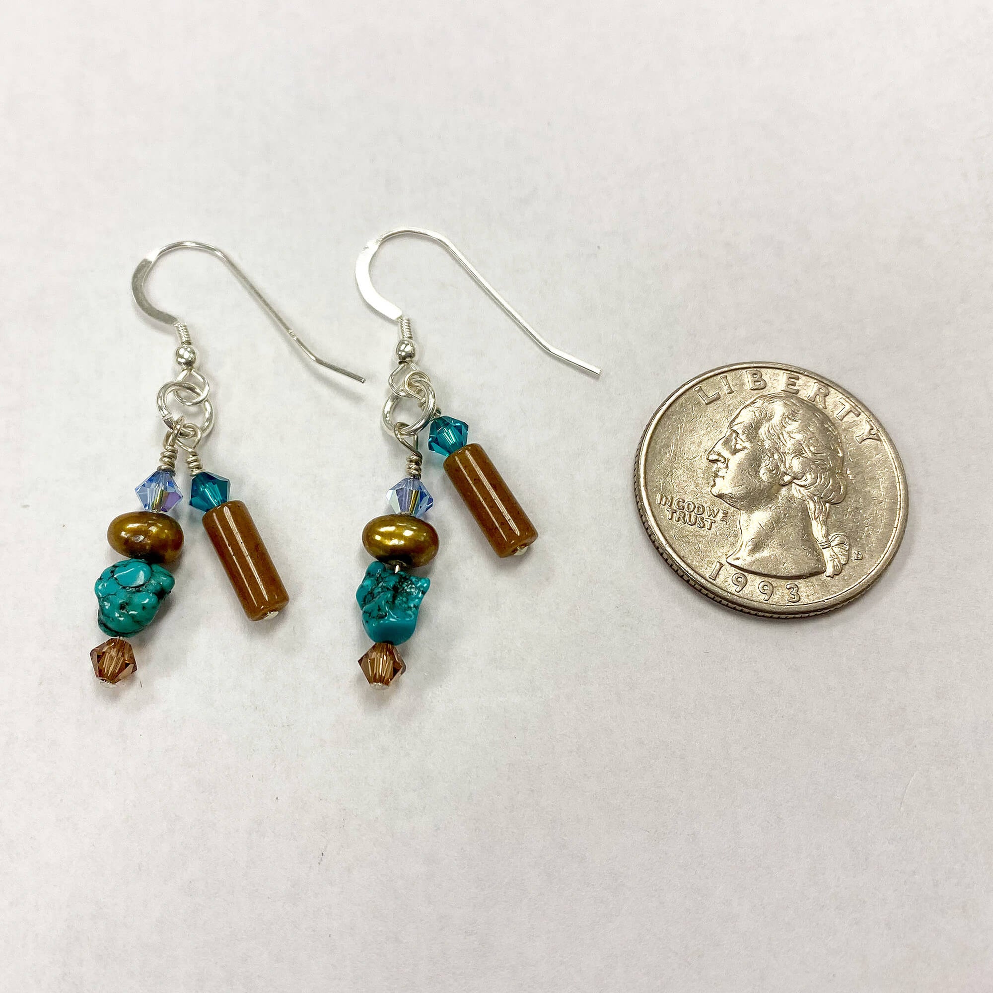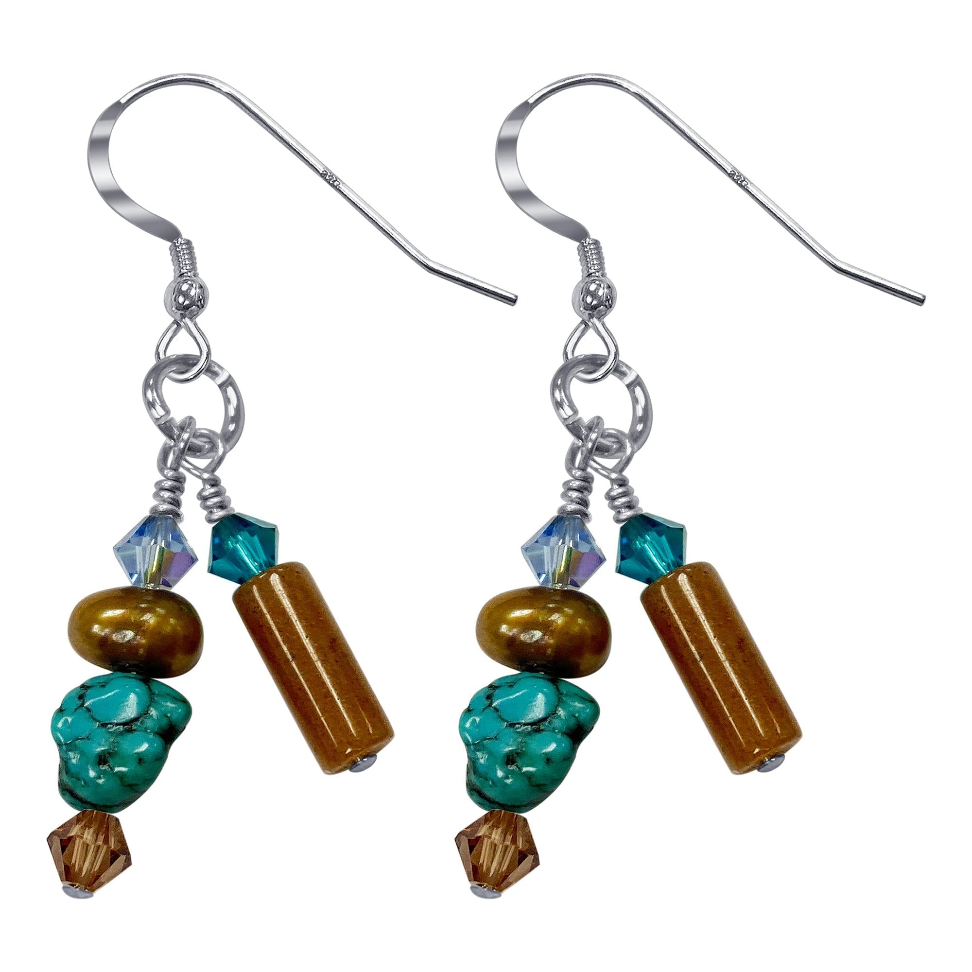 Crafted from 925 sterling silver, these dangle earrings feature 100% Austrian crystal elements, cultured freshwater pearls, and natural gemstones. Each pair measures approximately 1.2 inches in length and includes fishhook back findings for a secure and comfortable fit.
