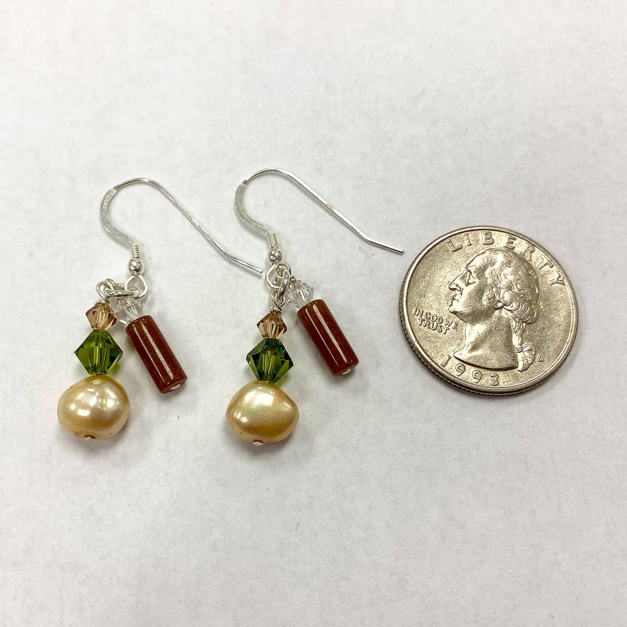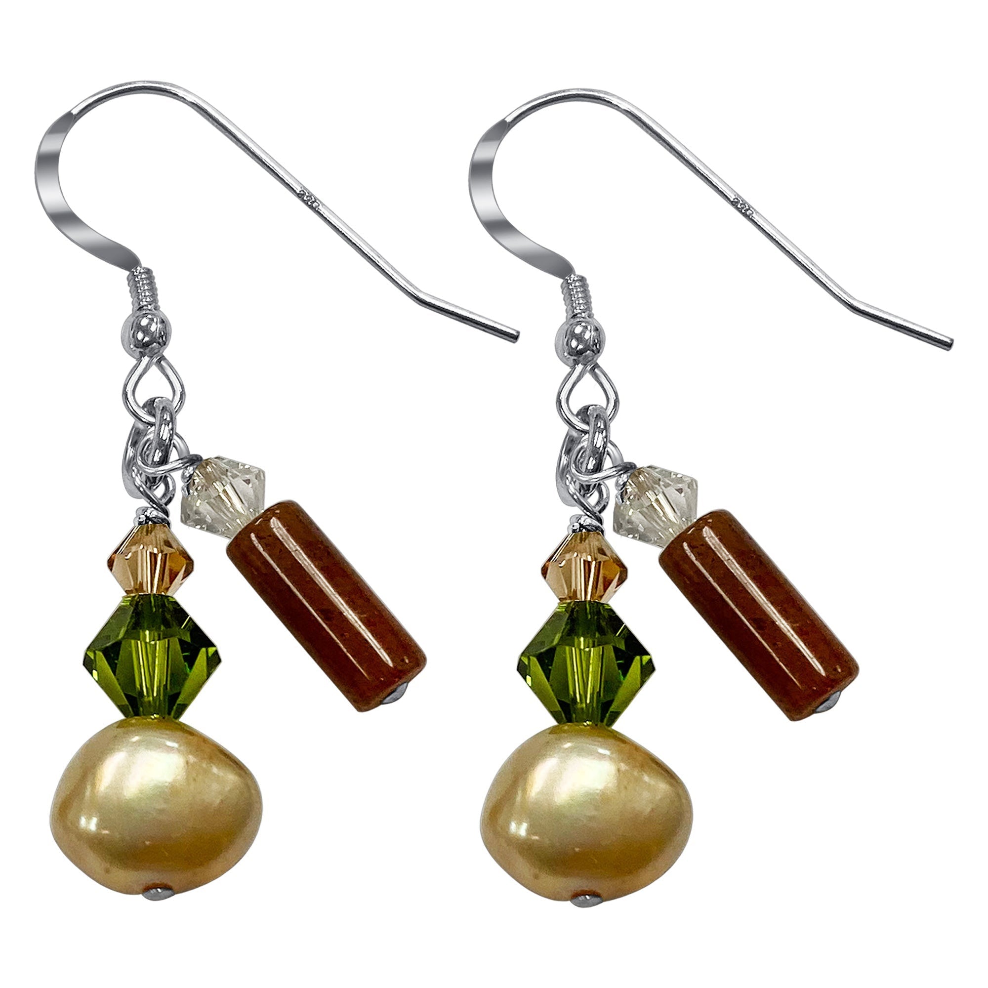 Made from 925 sterling silver, each earring showcases 100% Austrian crystals, cultured freshwater pearls, and herbal gemstone accents. With a length of approximately 1.2 inches, they're equipped with fishhook lower back findings for a secure and snug shape.
