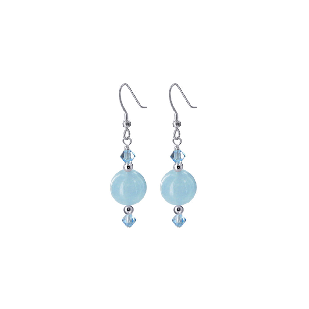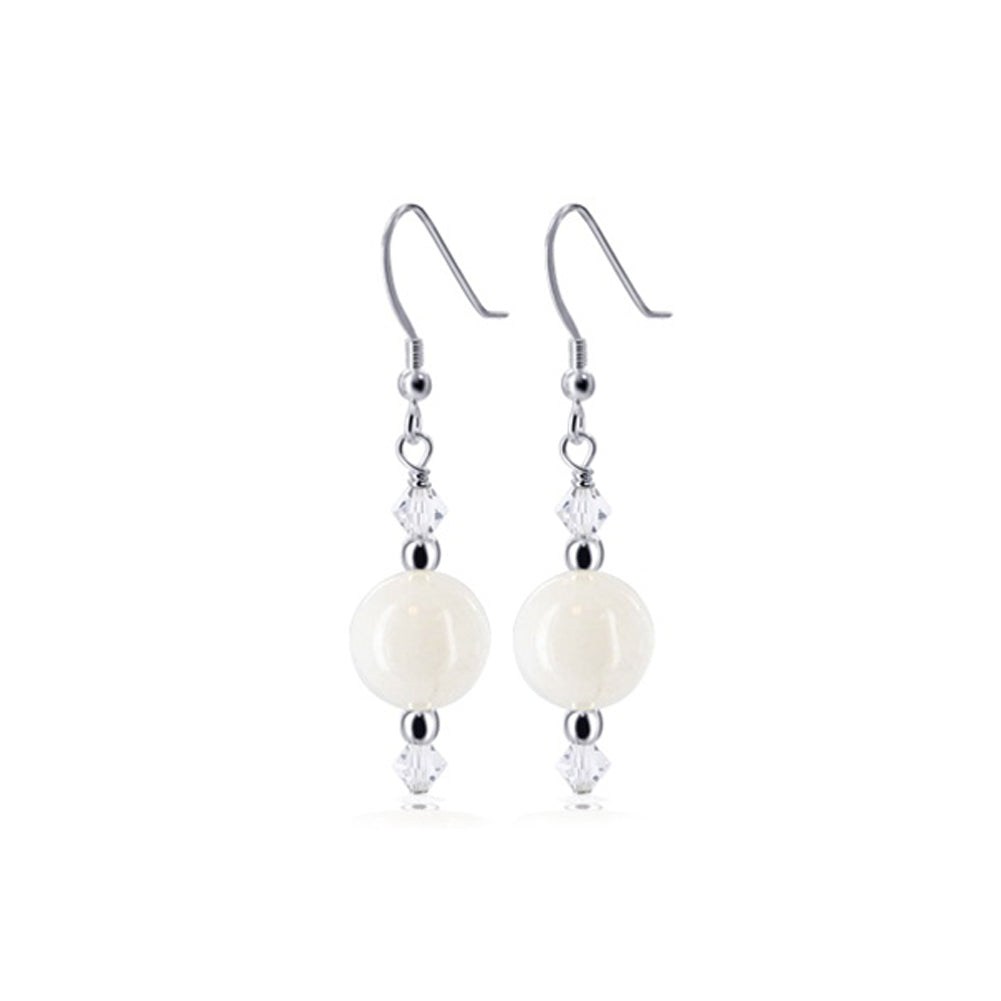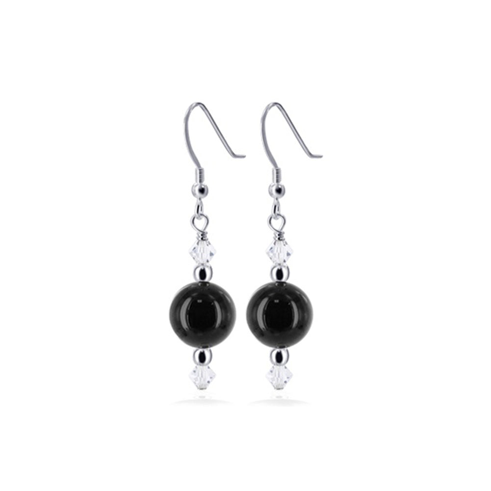 Lovely pair of 925 Sterling Silver Earrings Made with Agate Beads and Bicone Shaped Austrian Crystal. Earrings come with a secure French Ear Wire Hook in .925 Sterling Silver. The length of these earrings is 1.5 inches.