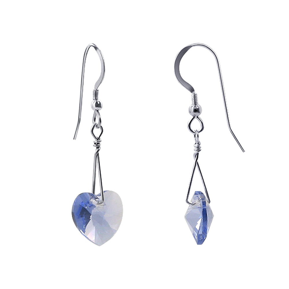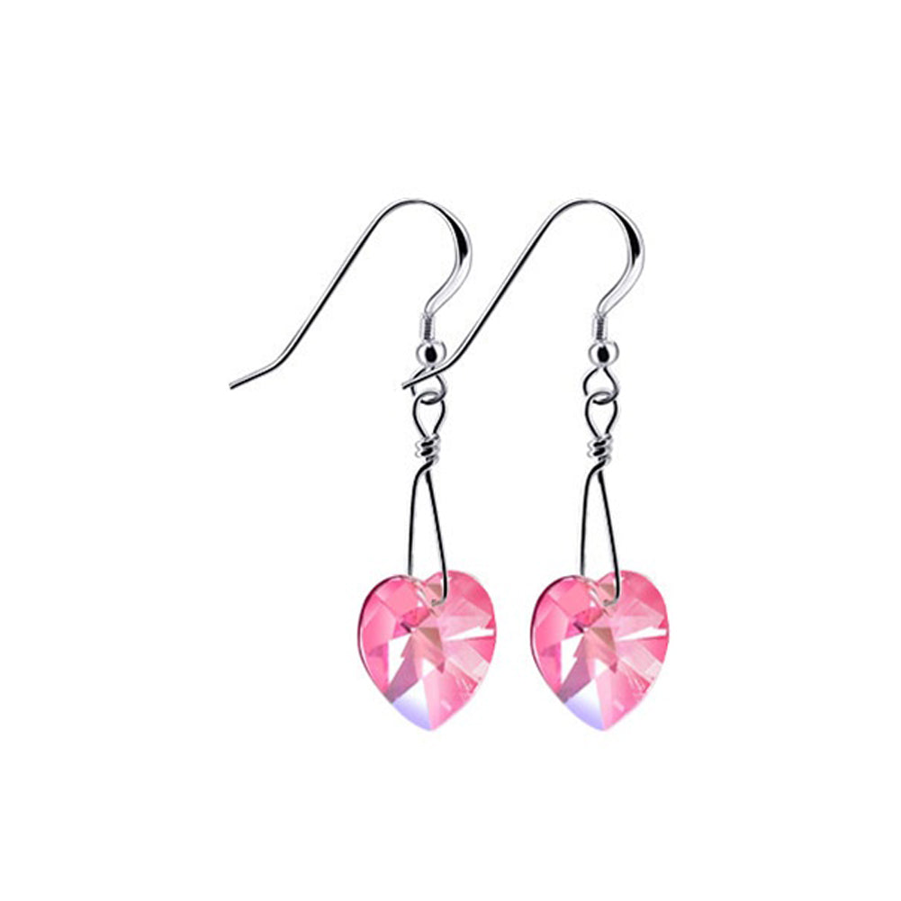 925 Sterling Silver Cute Heart Dangle Earrings Made with Austrian Crystals. These crystals are multifaceted, making them glitter like diamonds. The length of these earrings is 1 inch. Comes with a secure French Ear Wire Hook in. 925 Sterling Silver.