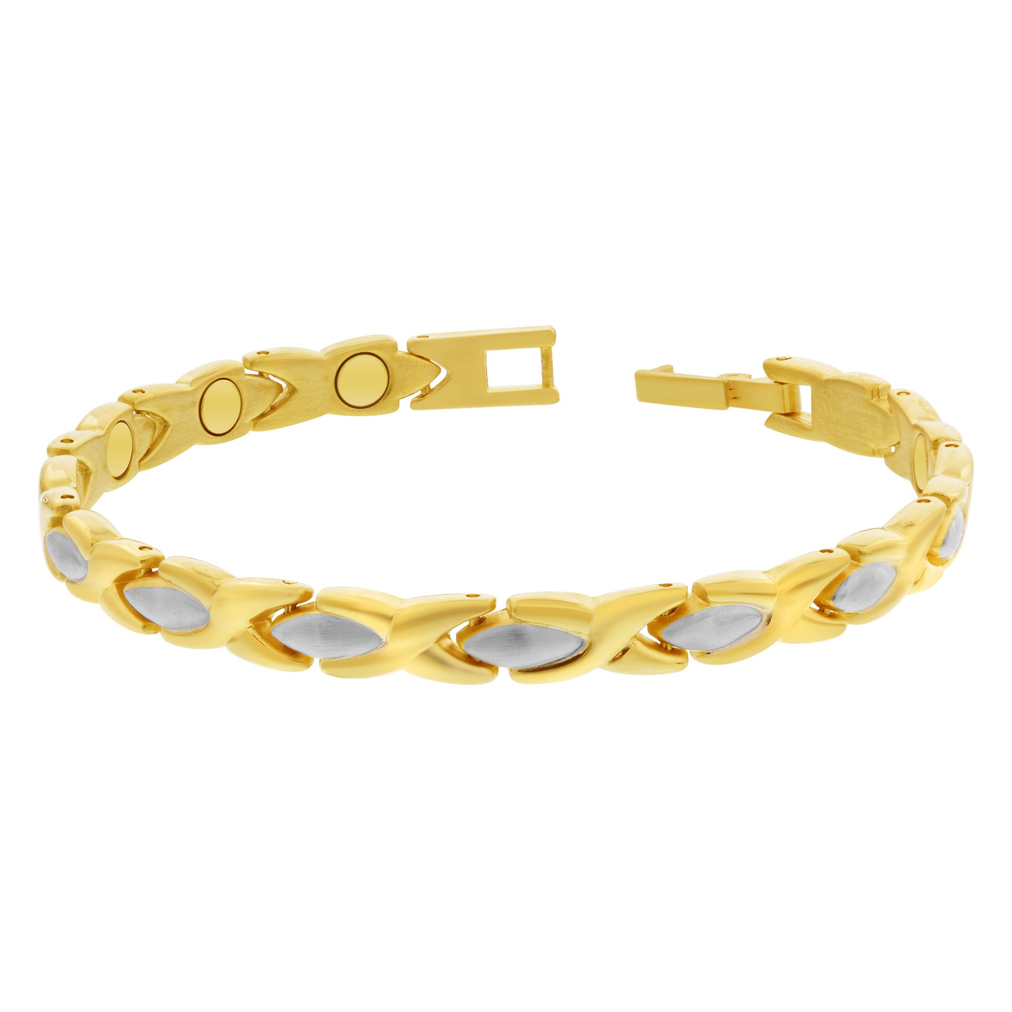 This is one of the latest additions to our magnetic link bracelet collection. It has North pole magnets. Adorable piece and an incredible price. It is selling like crazy.