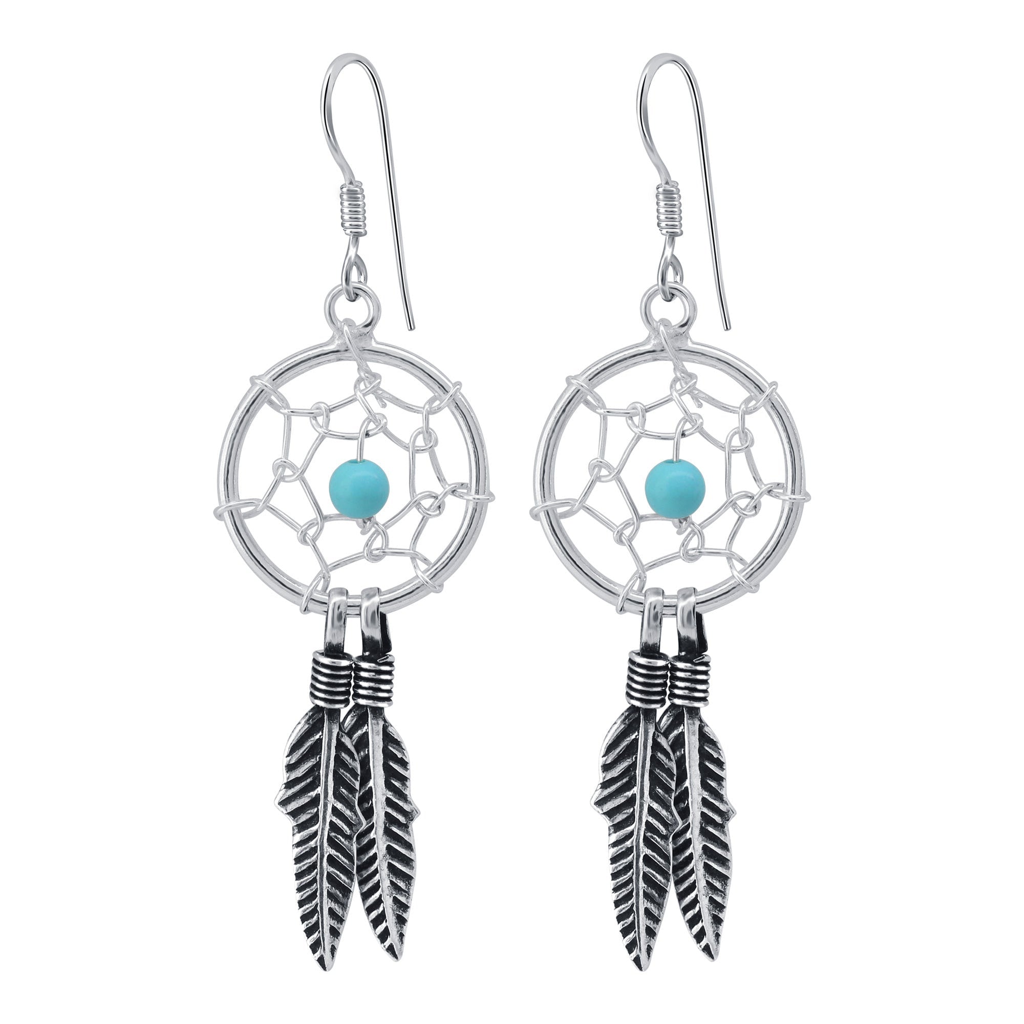 • title_tag : Simulated Turquoise & Web Feather Sterling Silver Hook Earrings - GE878