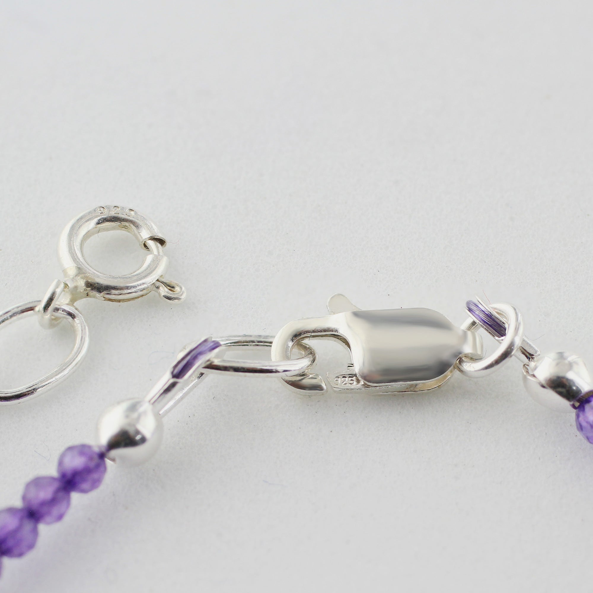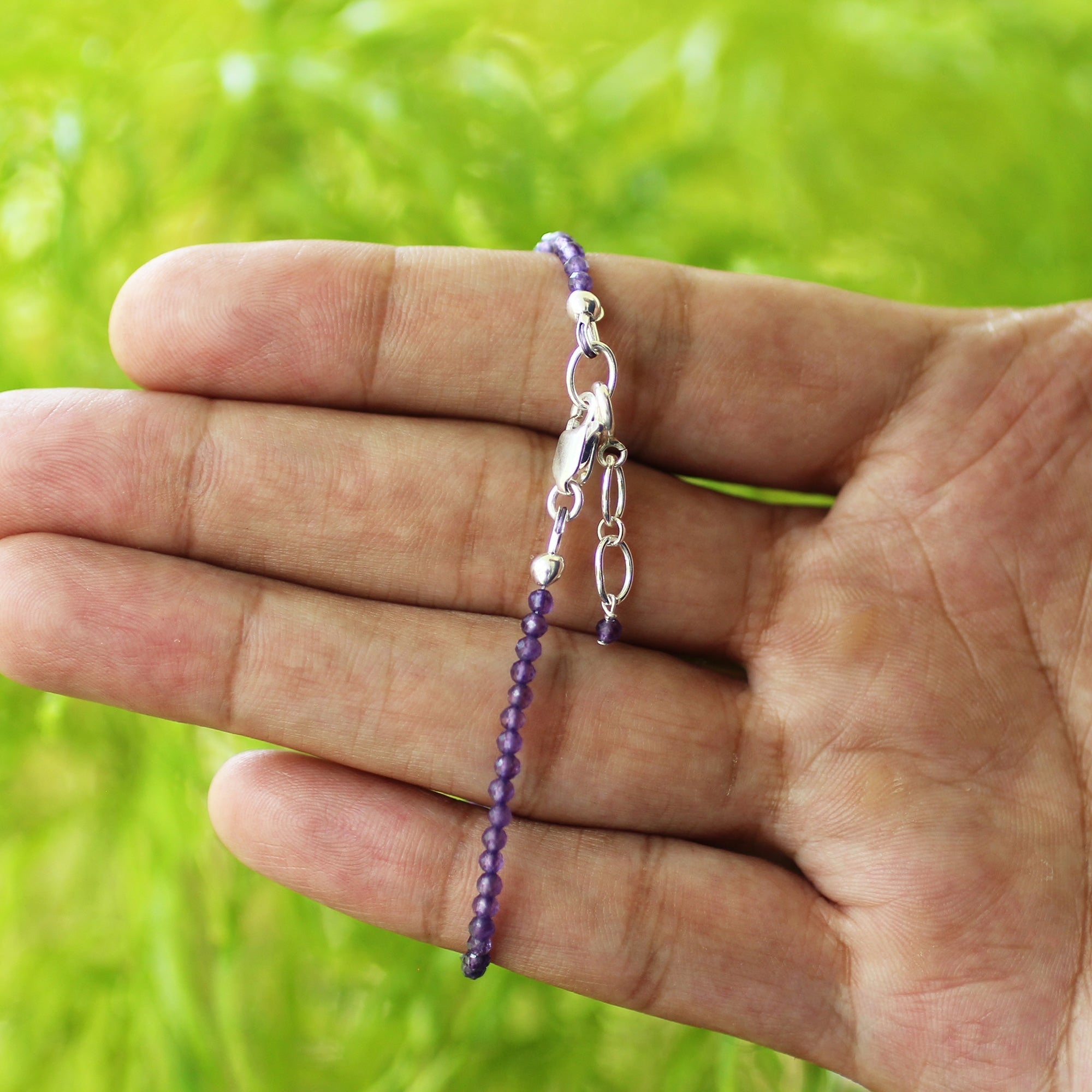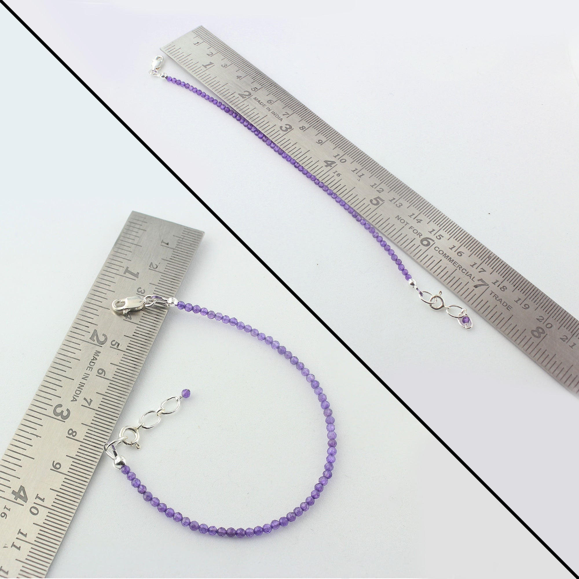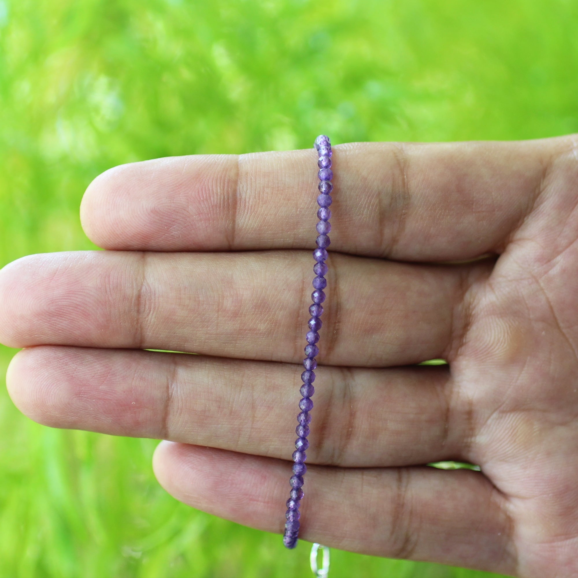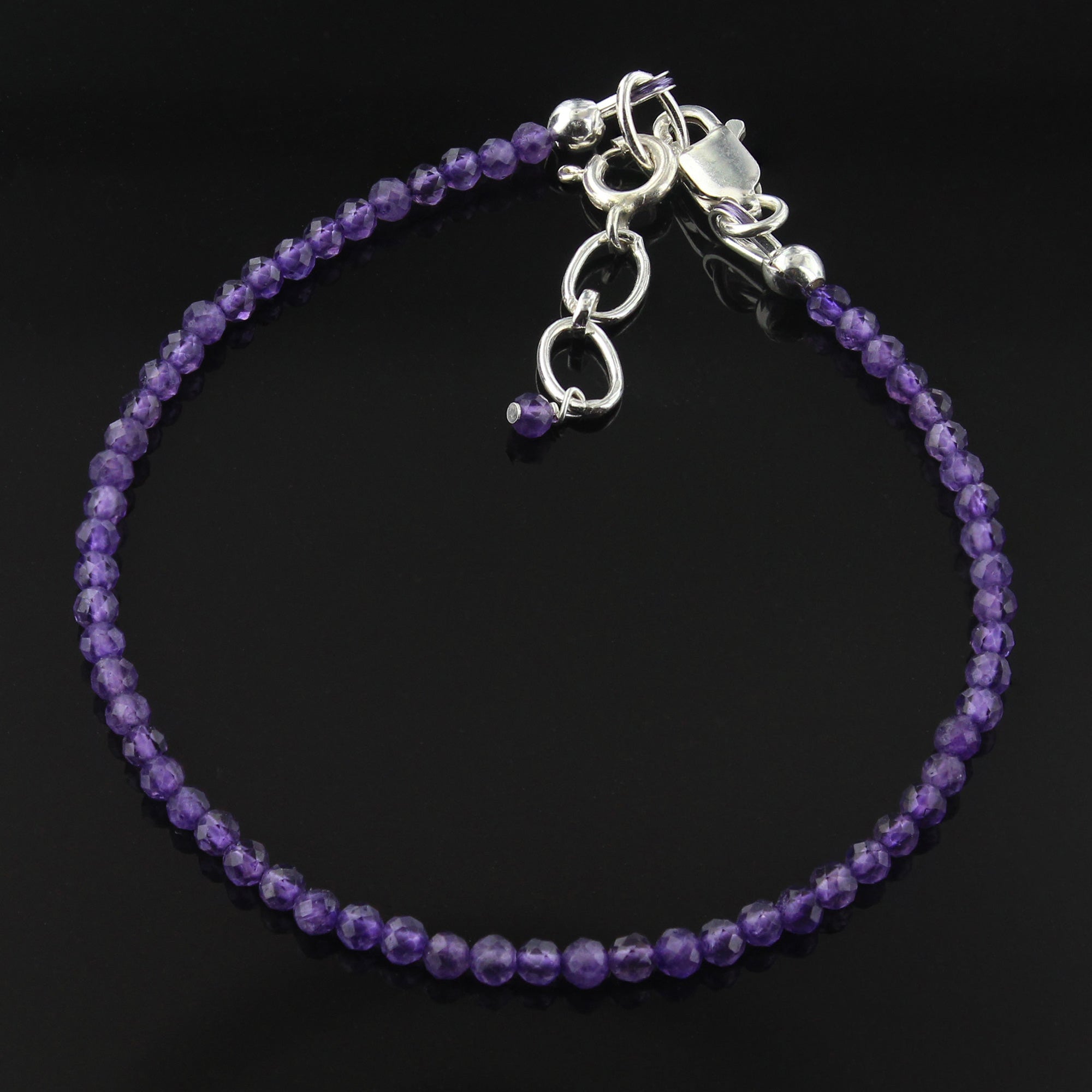 Beautifully crafted in India, add a perfect pop of color and sparkle to any outfit with this gorgeous sterling silver faceted round natural amethyst bracelet! This stunning bracelet contains a vibrant shade of purple along with a secure lobster clasp. The perfect accessory to any outfit, this sterling silver faceted round natural amethyst bracelet is a sure must-have! It measures approximately 7.5 inches in length by 1.5 mm in bead size and weighs 3 grams.