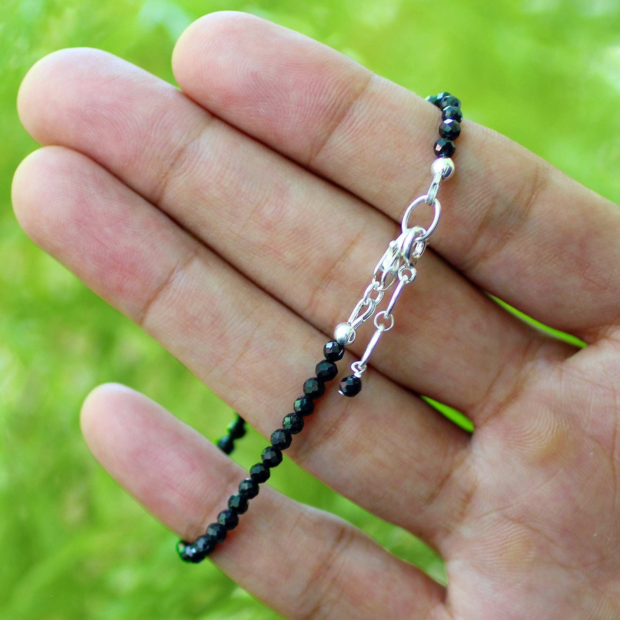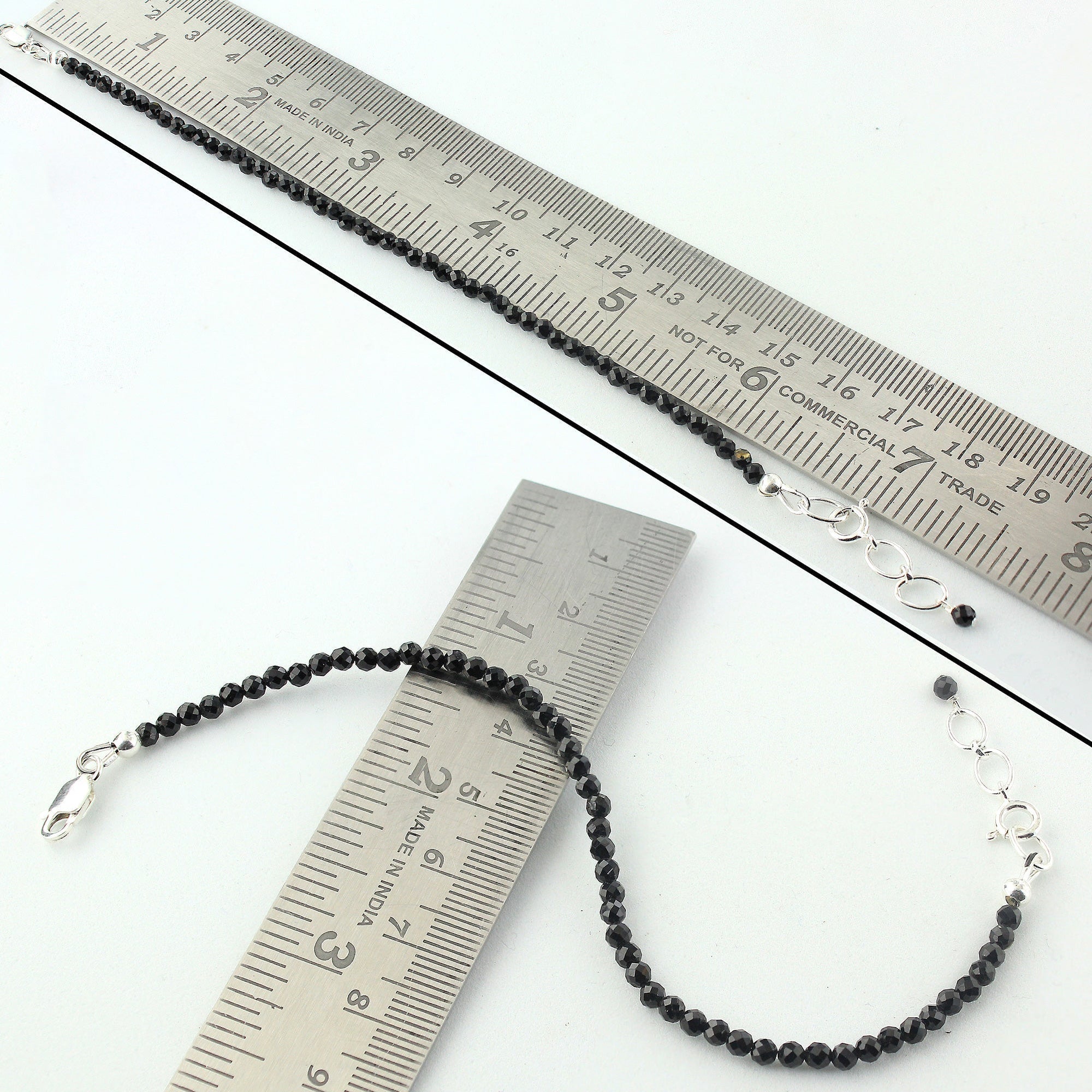 Beautifully crafted in India, add a perfect pop of color and sparkle to any outfit with this gorgeous sterling silver faceted round natural dark blue sapphire bracelet! This stunning bracelet contains a rich shade of blue along with a secure lobster clasp. The perfect accessory to any outfit, this sterling silver faceted round natural dark blue sapphire bracelet is a sure must-have! It measures approximately 7.5 inches in length by 2 mm in bead size and weighs 3 grams.