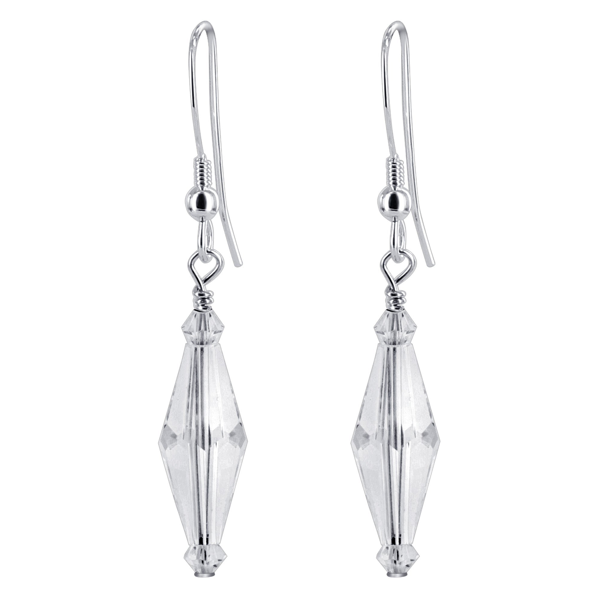 Sterling Silver Eye Catchy Dangle Earrings Made with Austrian Crystal. Comes with a secure French Hook Ear Wire findings in Sterling Silver. Length of this Earrings is 1.75 Inch Long.