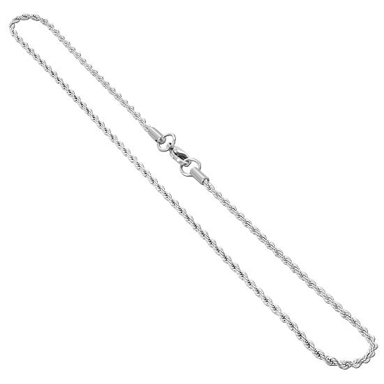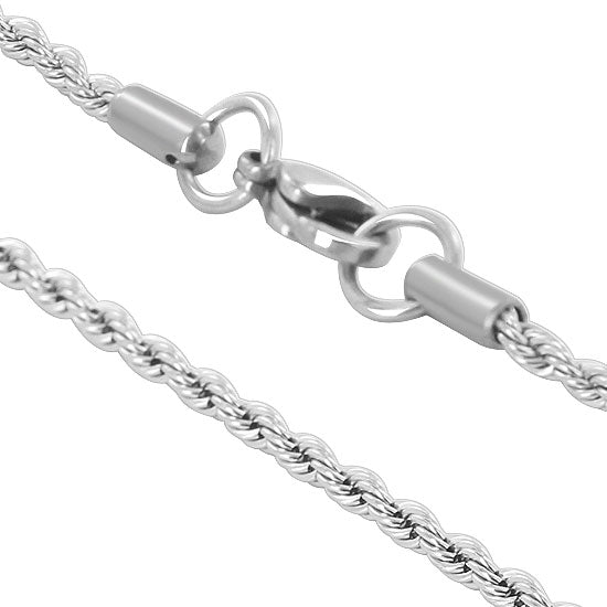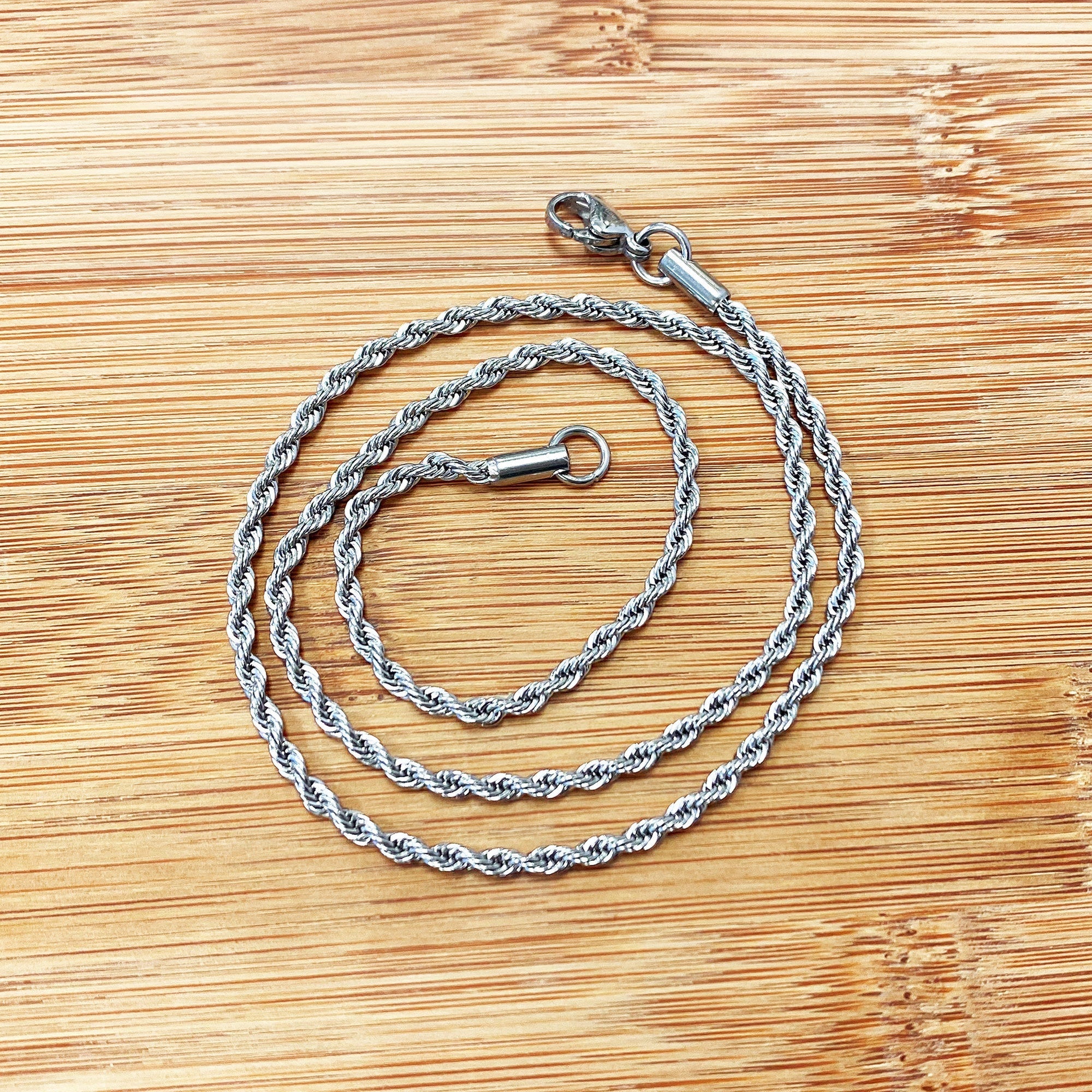 These gorgeous stainless steel chain necklaces are a must-have with any outfit for a nice subtle chic touch! We offer these rope chain necklaces in a variety of length sizes in order for you to get the fit you desire. We have sizes 16in, 18in, 20in, 22in, and 30in as well. The necklace contains a 2.3 mm along with a lobster claw clasp to ensure a secure and comfortable fit. Wear it alone or add a pop of color with one of our dazzling pendants from our extensive collection! Here at Gem Avenue, we are positive you will not be left dissatisfied!