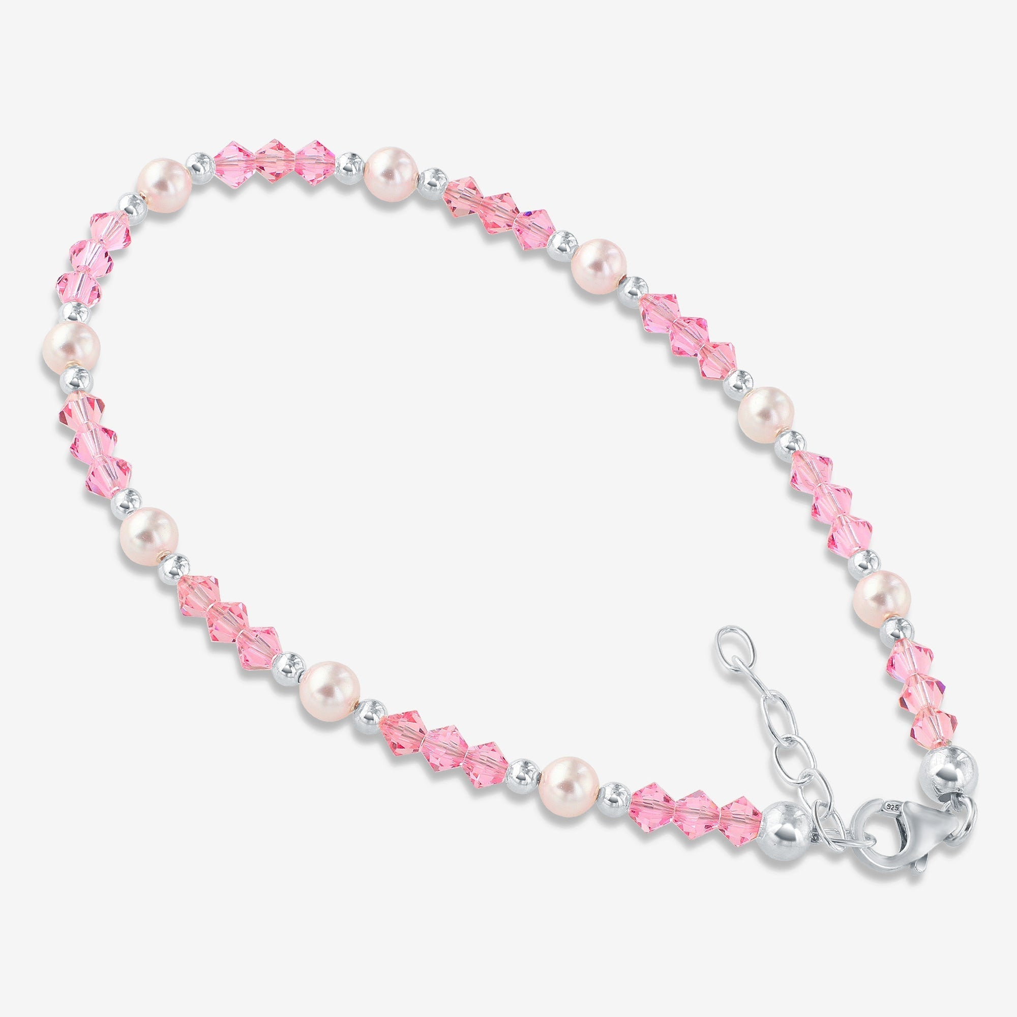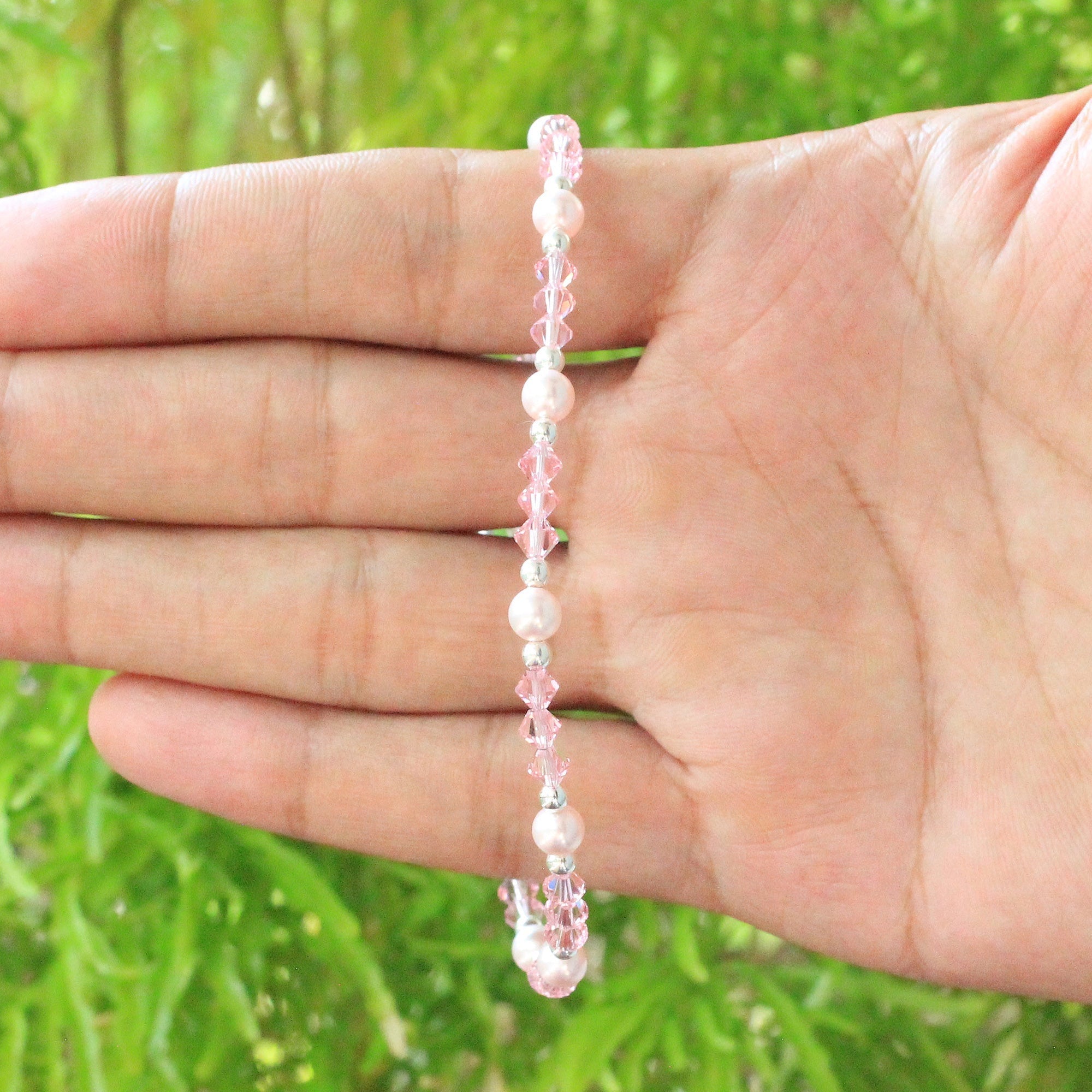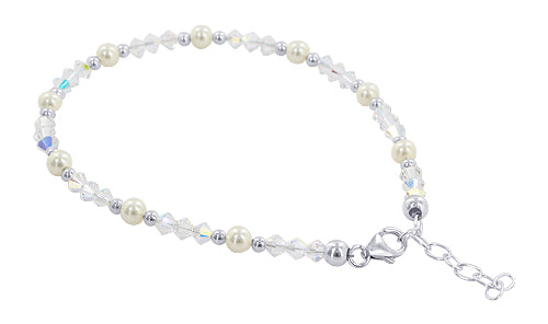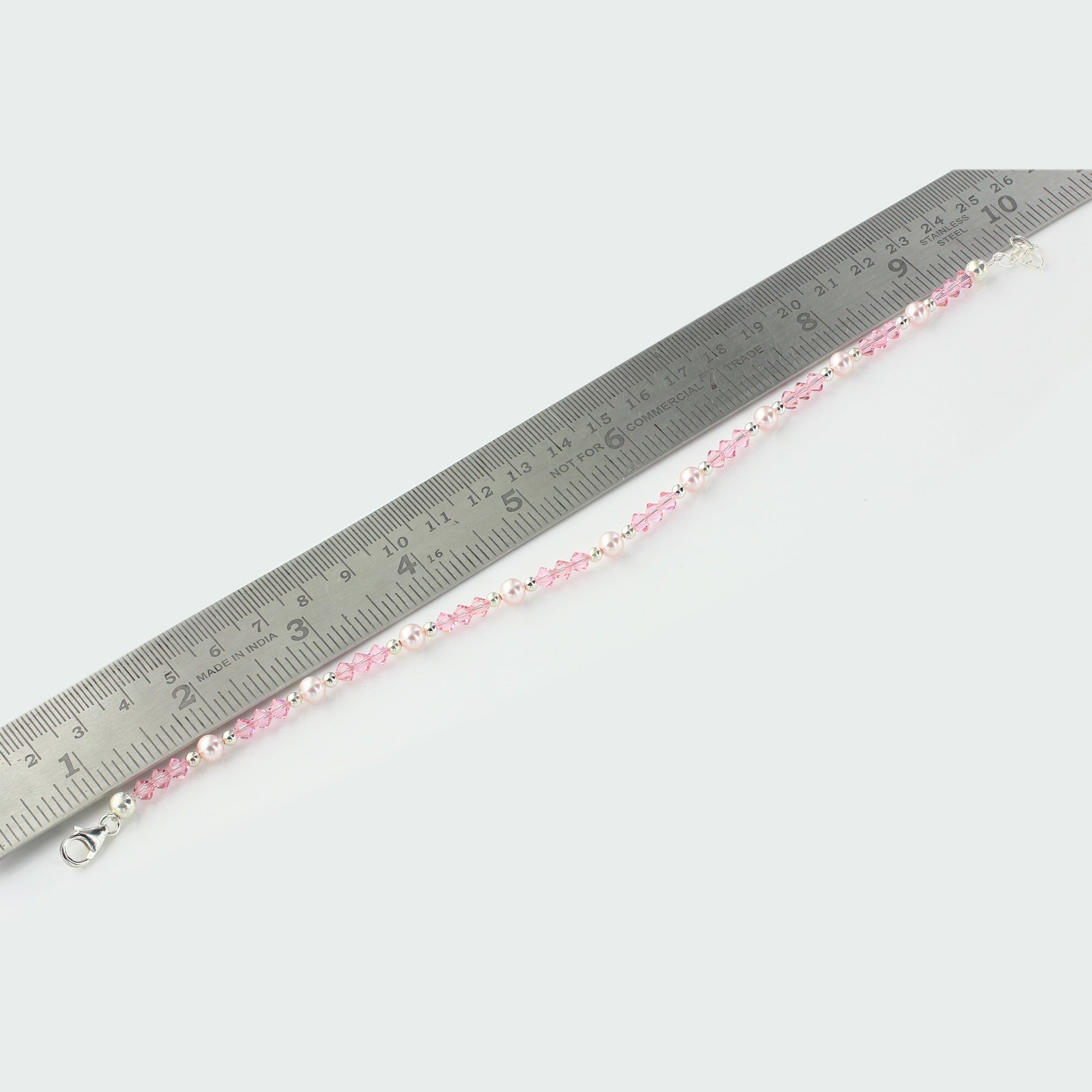 Gorgeous anklet is made up of imitation pearls along with Austrian Crystals on a silver string. These dazzling anklets are truly eye catching and mesmerizing!