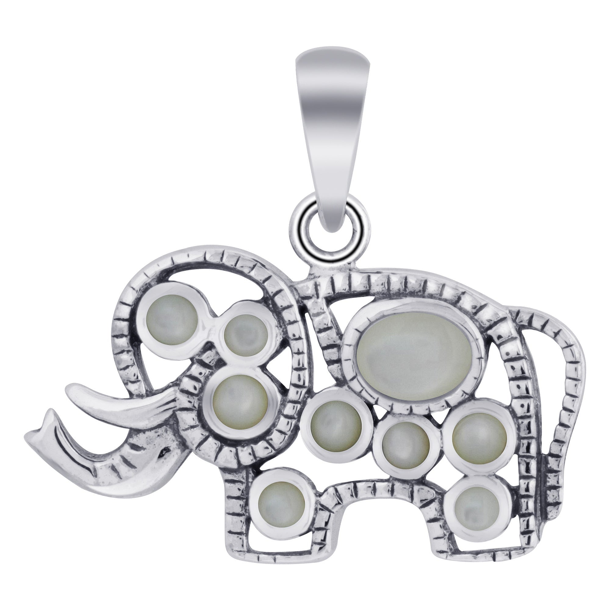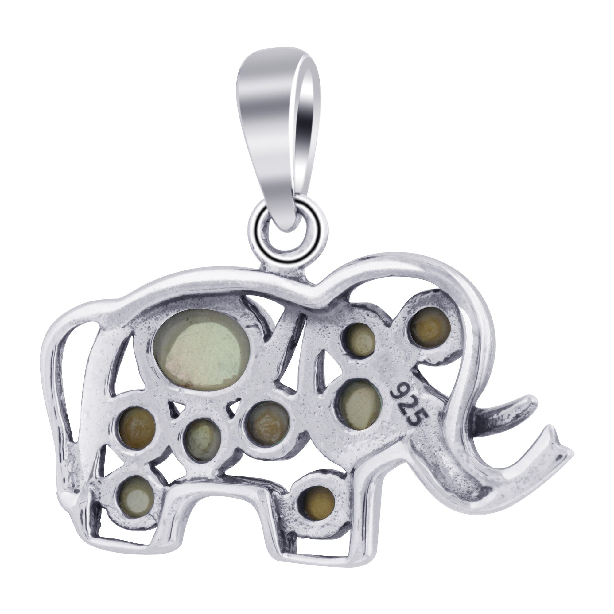 Rhodium plated 925 sterling silver small elephant bali design pendant.
