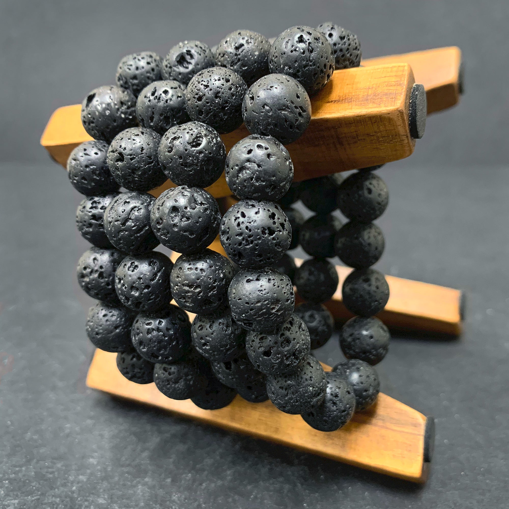 Each individual bracelet is composed of 12mm Lava Stone beads that have a rich shade of black. Lava Stone is a molten rock that has solidified and cooled after it was thrown out of a volcano during its eruption. Since originally the lava stones contain a rough and bumpy texture, they are smoothed down for a comfortable wear.