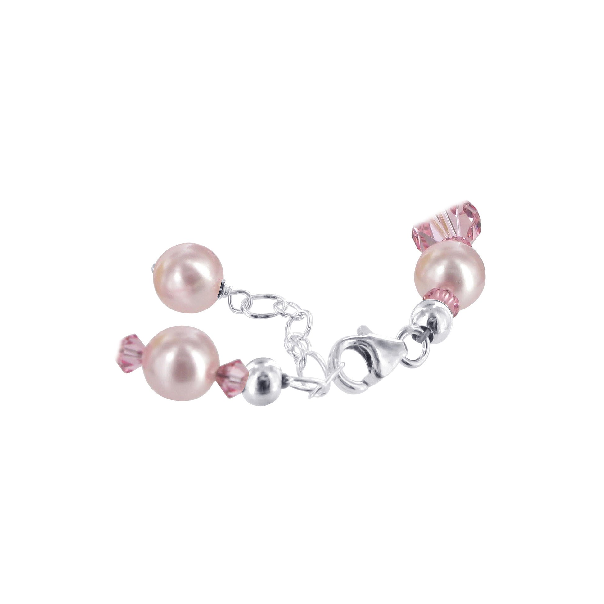 - title_tag : Pink Faux Pearl Sterling Silver Bracelet Austrian Crystals SCBR163
