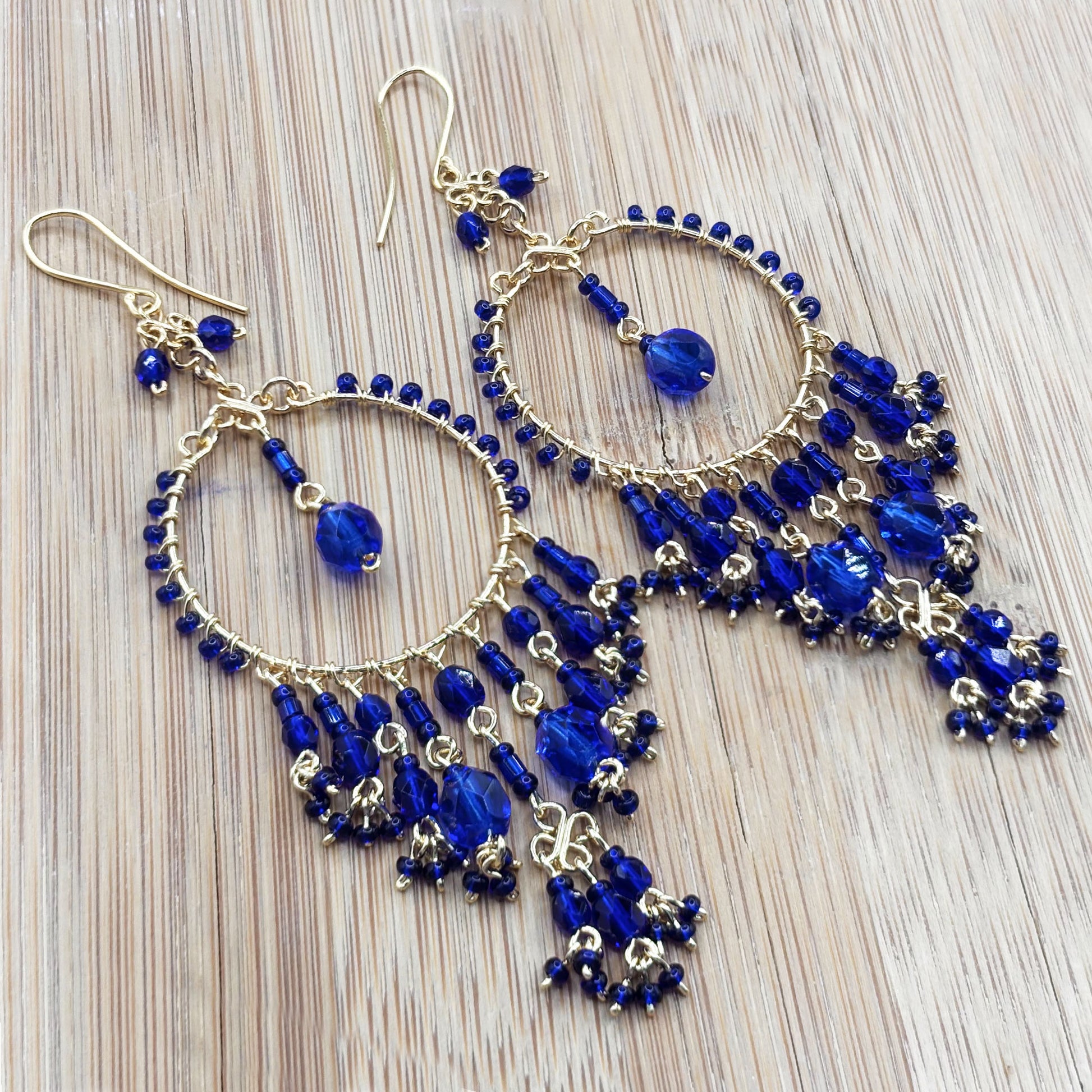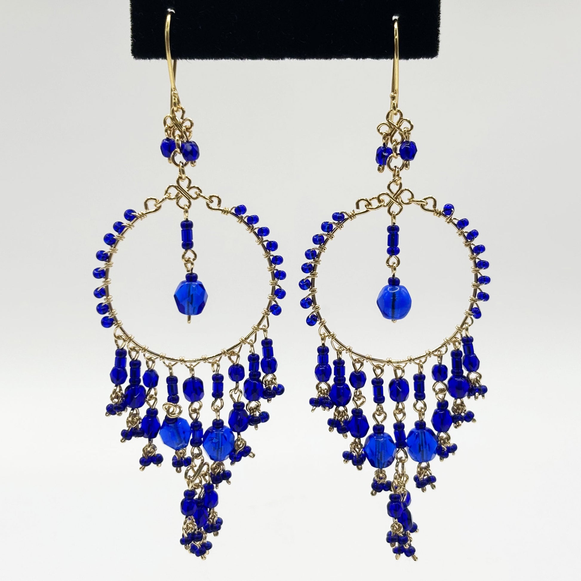 - title_tag : Bohemian Cobalt Fire Beaded Chandelier Earrings Steel MPER155