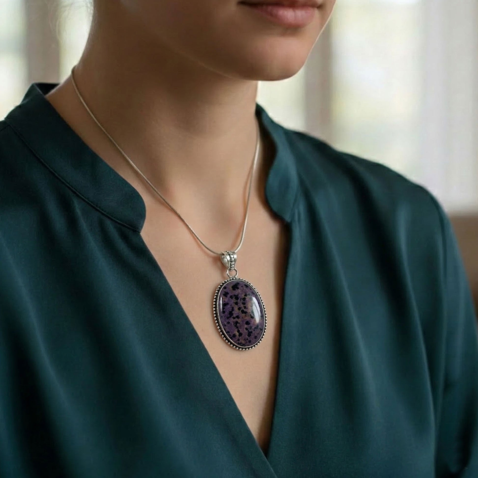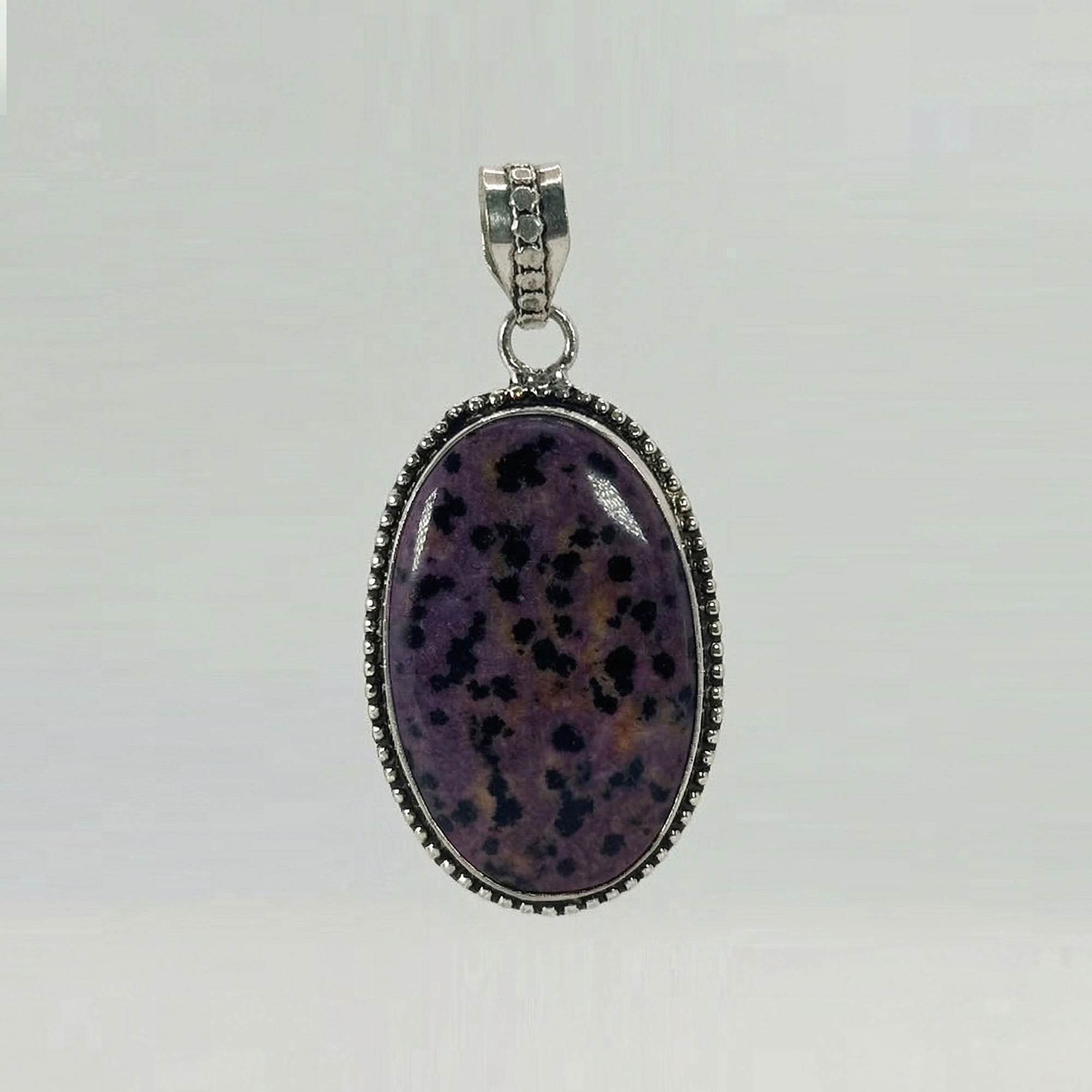 - description_tag : Elegant purple dalmatian jasper pendant in 925 silver, 11.06 grams, perfect for daily wear and special moments. Gem Avenue in Charlotte.
