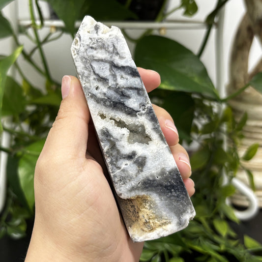 In crystal form, obelisk towers carry this symbolism forward. They are seen as tools for focus, energy amplification, and spiritual elevation. The geometry of the obelisk, with its broad base and narrow tip, mirrors the process of grounding energy while channeling higher vibrations.