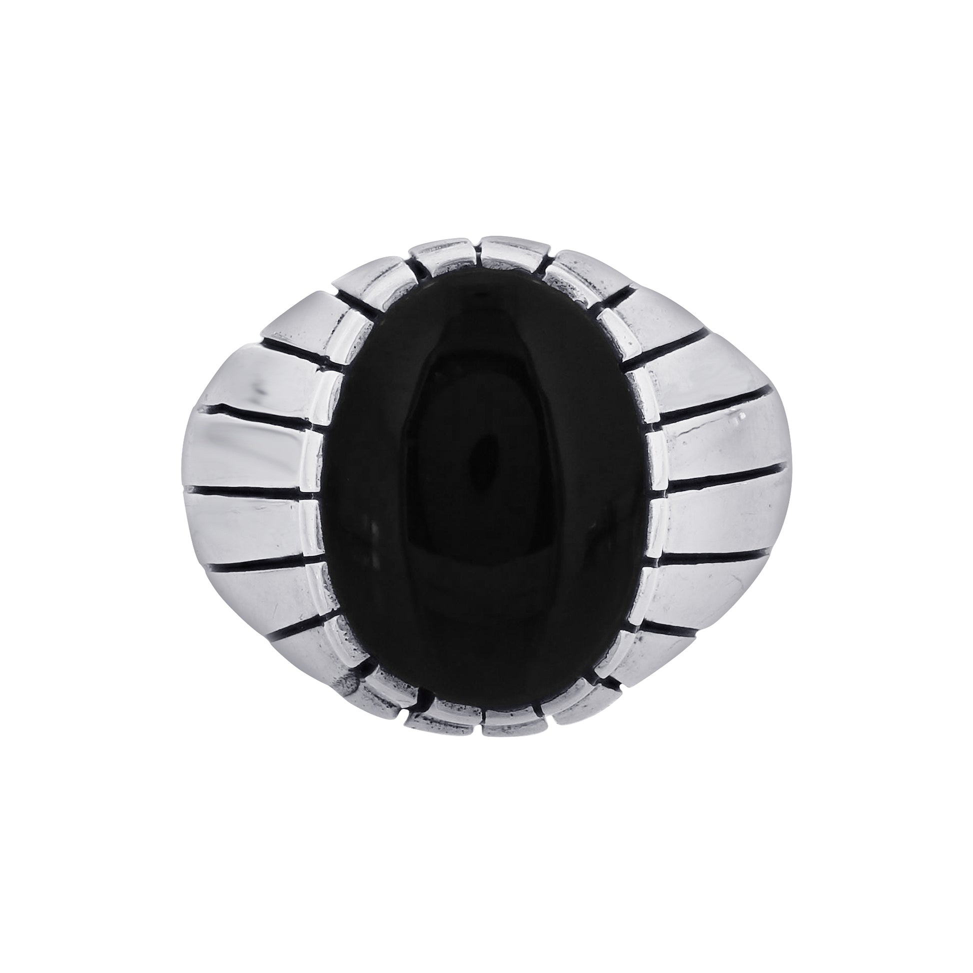 At the heart of this piece lies a striking Black Onyx oval stone, known for its deep, lustrous color and captivating allure. This ring is not just an accessory; it's a statement piece that exudes confidence and sophistication. It's perfect for everyday wear or special occasions, making it a versatile addition to any jewelry collection.