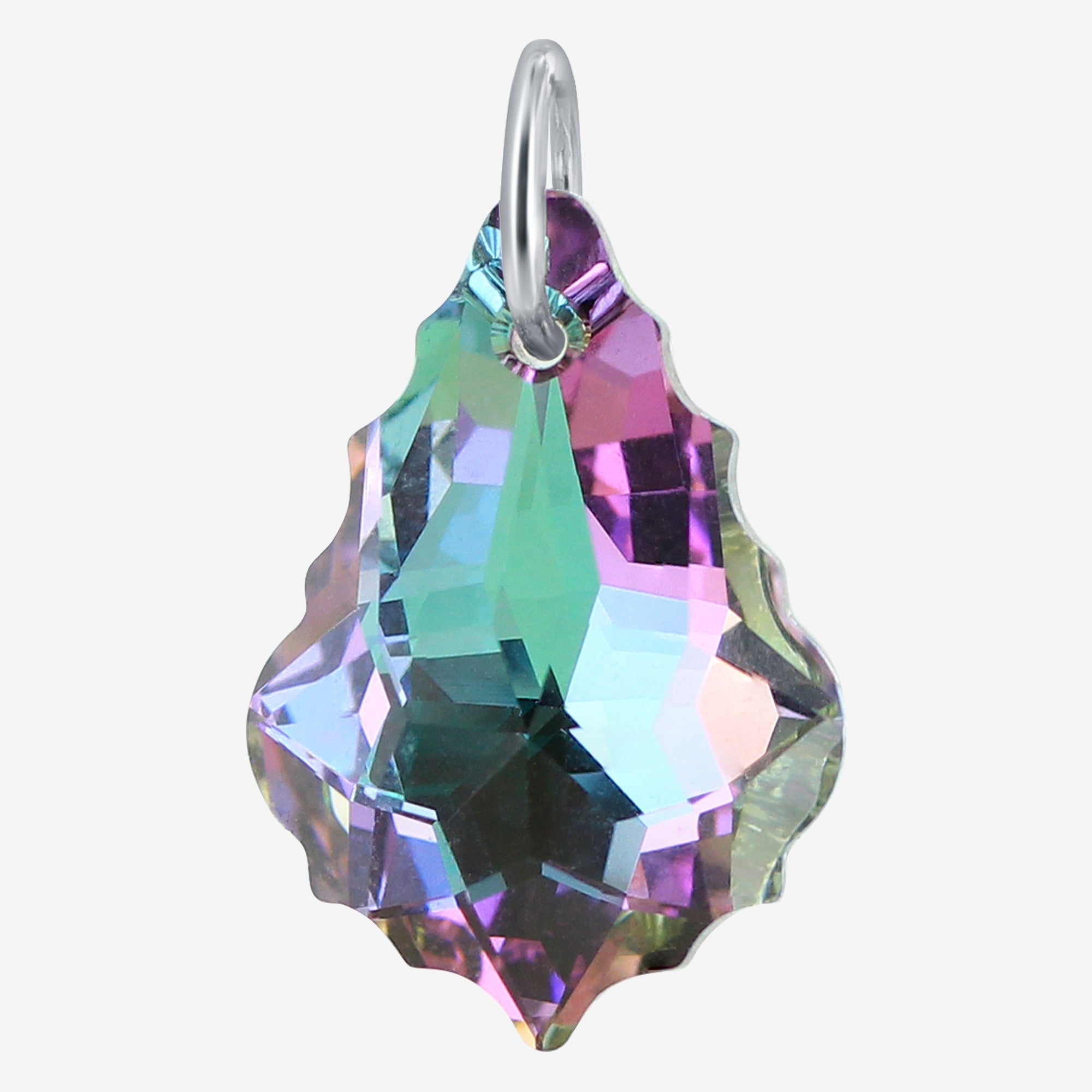 Multifaceted and gorgeous, this baroque-shaped pendant is the perfect final touch. Composed of Austrian crystals and a 925 sterling silver jump ring, this pendant will add sparkle and glamour to any chain.