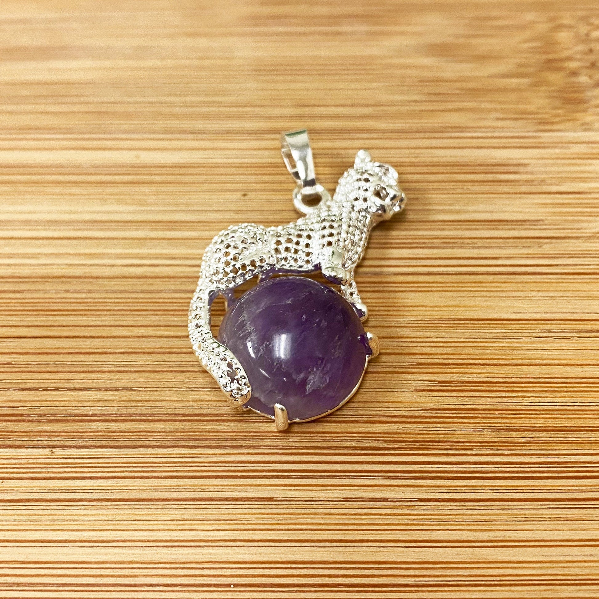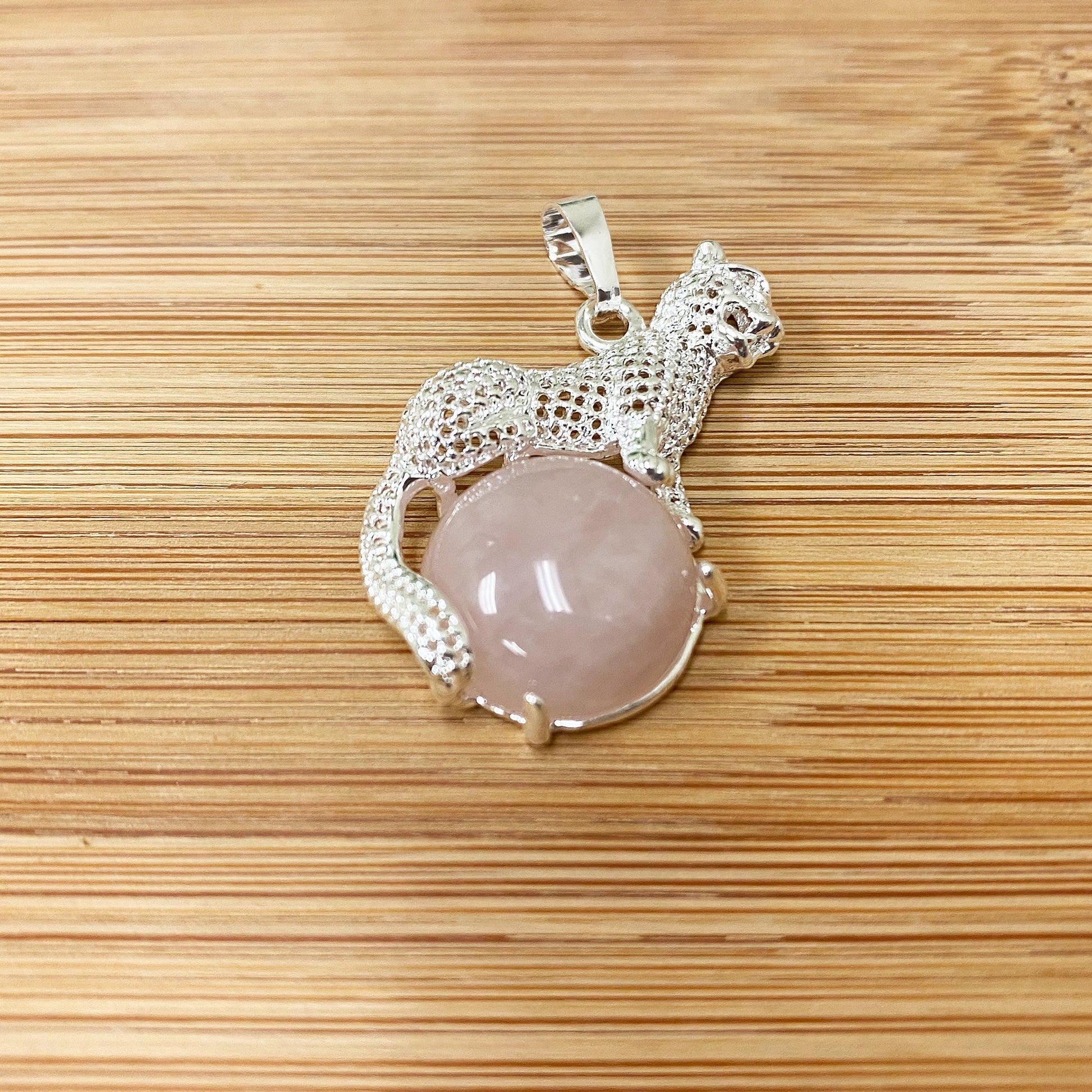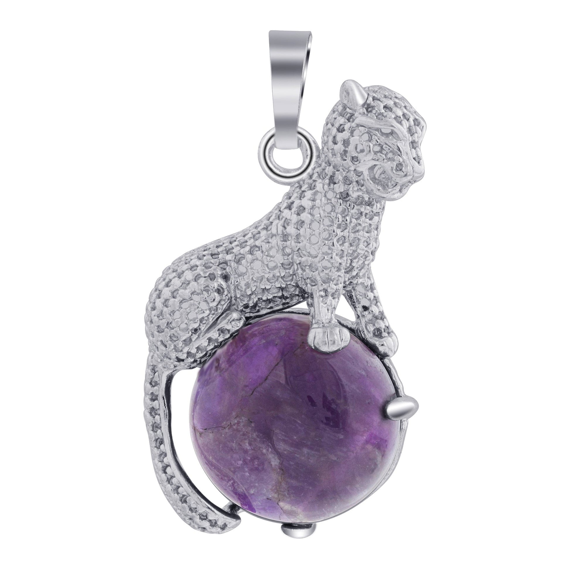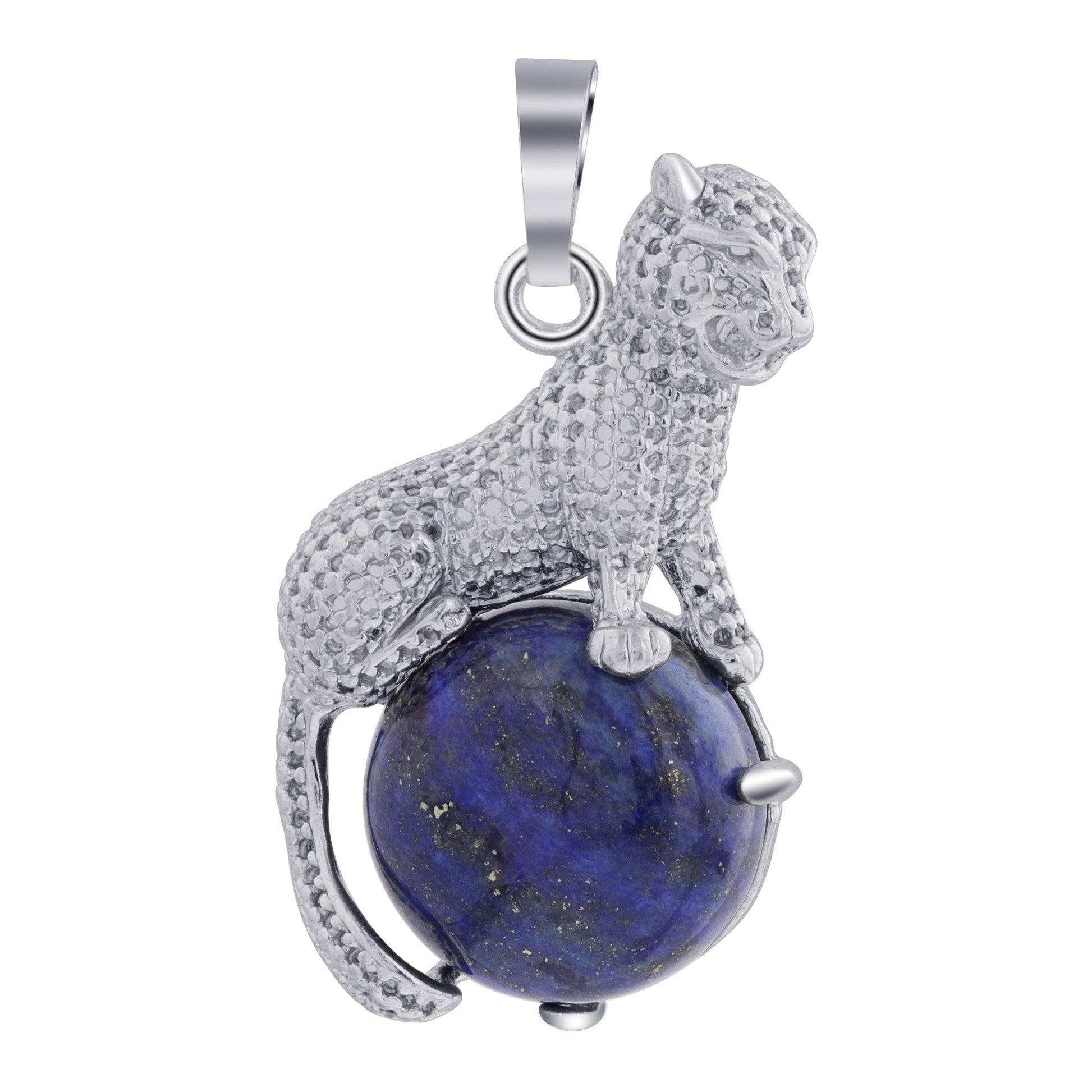 Genuine Gemstone Cheetah Pendant Stainless Steel Animal Jewelry for Men & Women Unique Wildlife Necklace